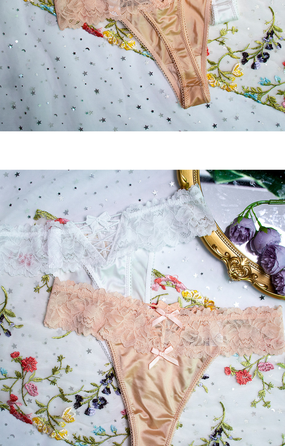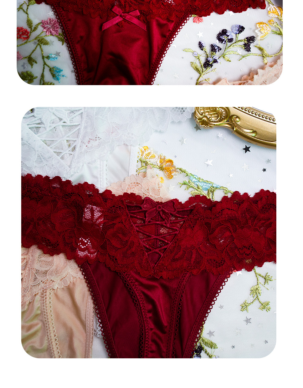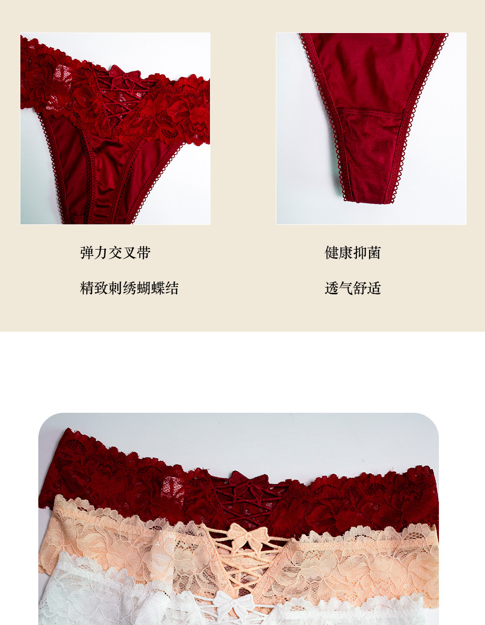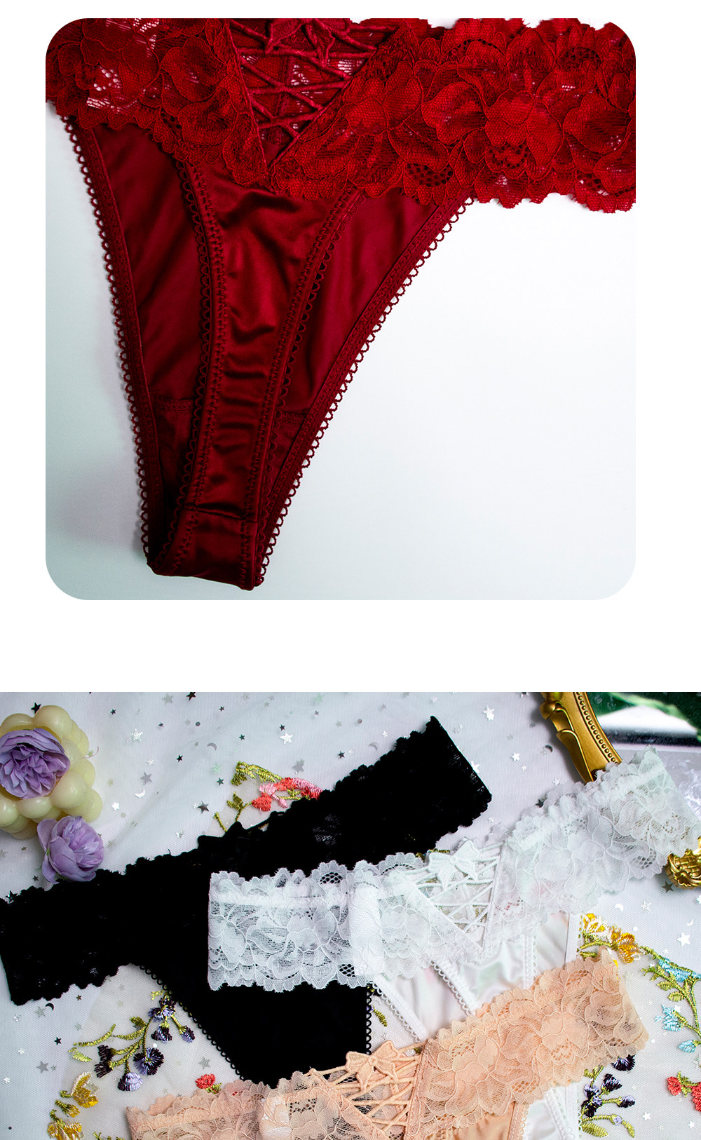 4 Pieces - European and American Plus-Size Sexy Lace Thong Panties for Women, Lace-Up Low-Waist Hollow Peach Butt Invisible T-Pants