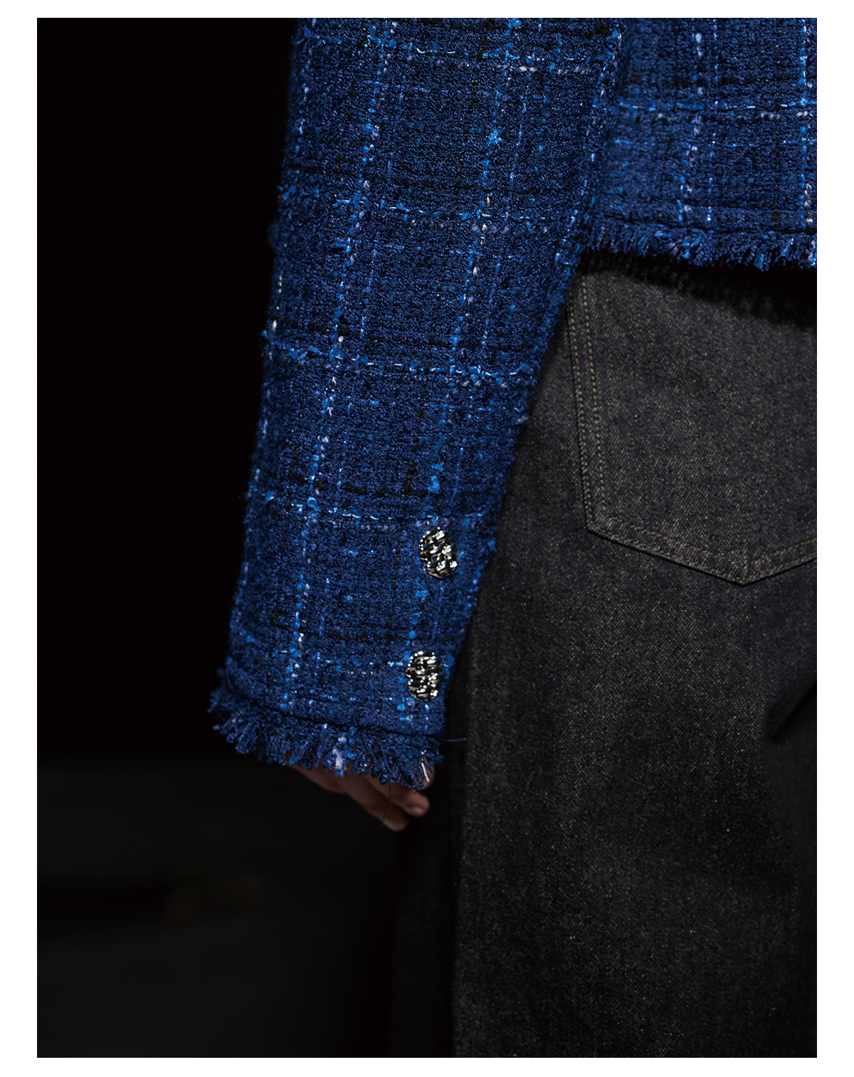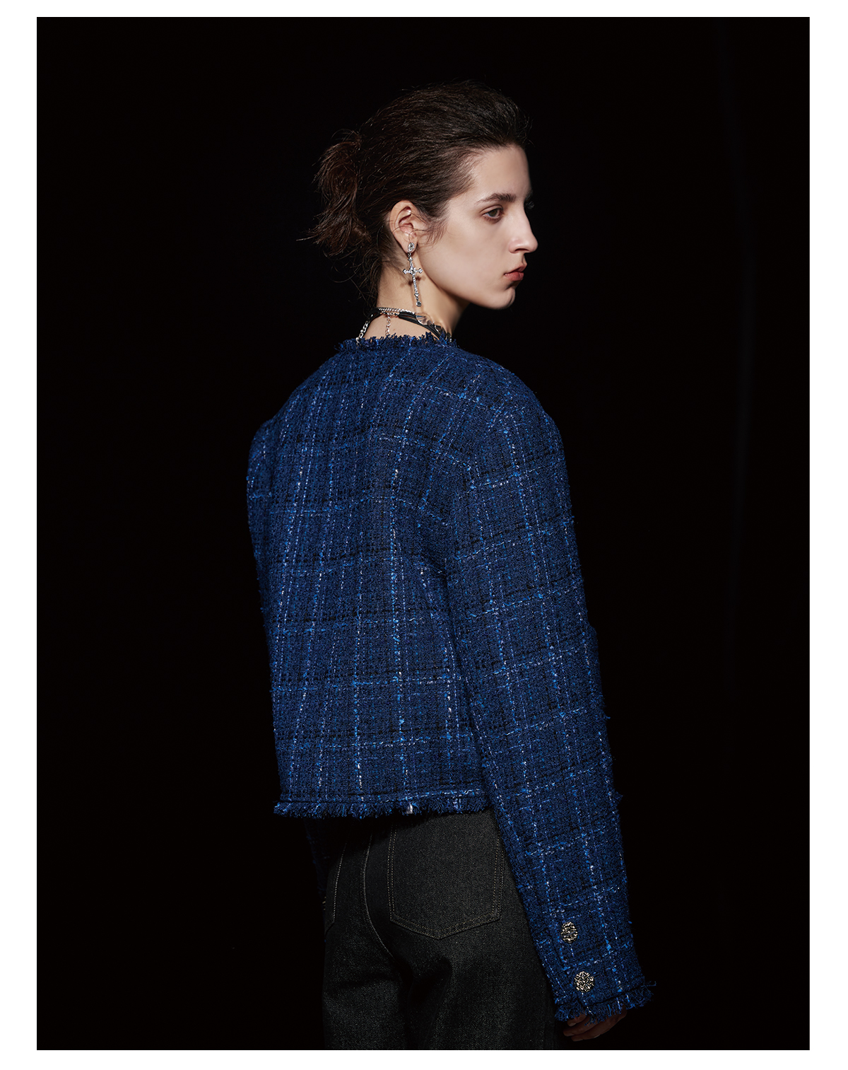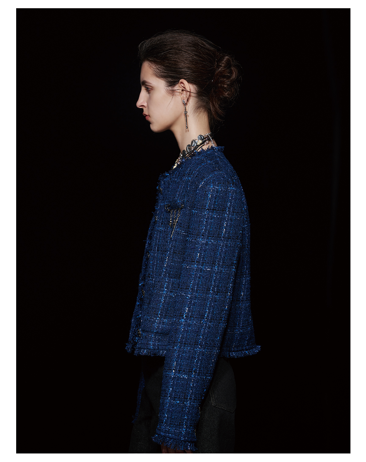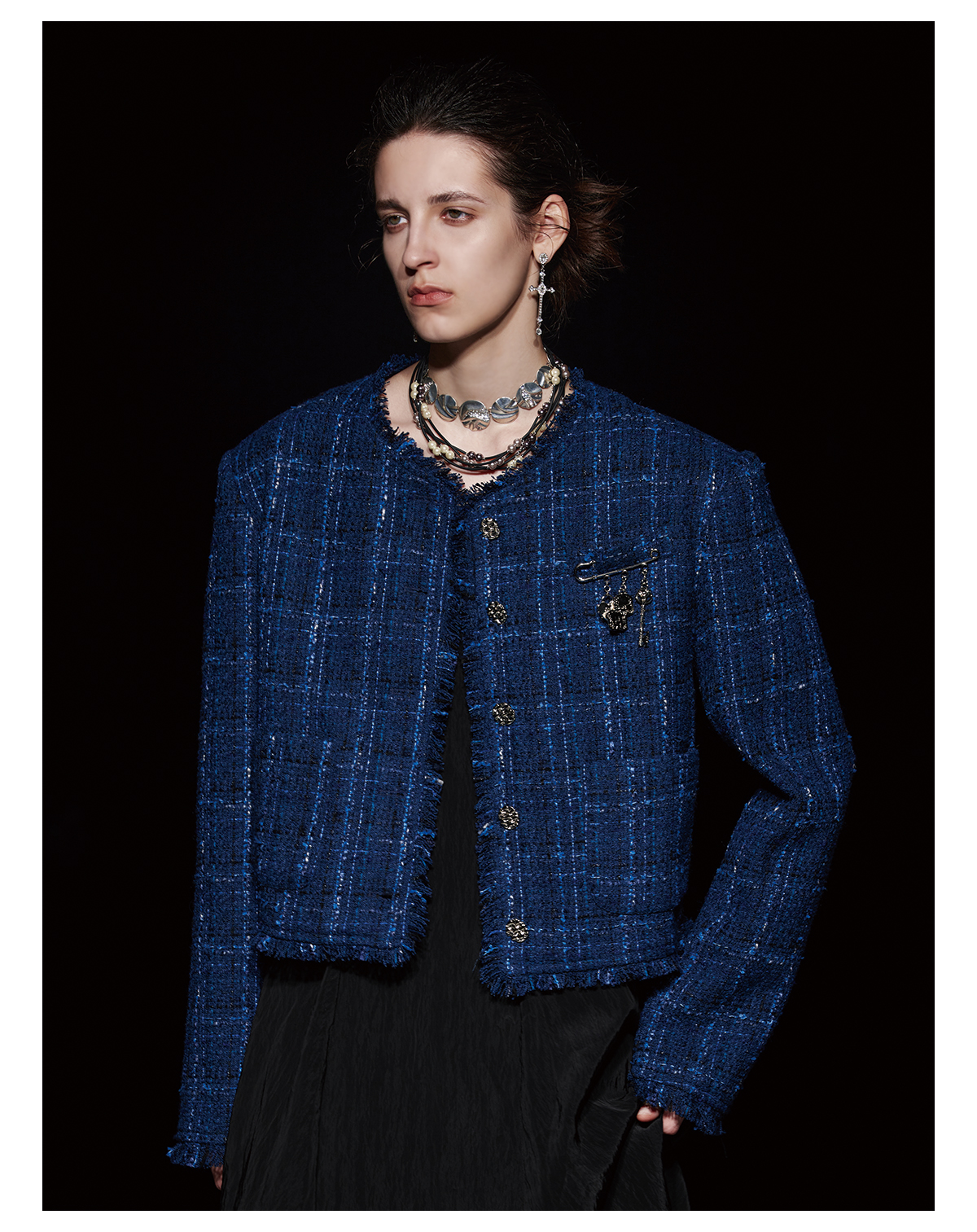 Immune System Mysterious Blue Neutral Shoulder-Padded Casual Silhouette Chanel-Style Women's Jacket