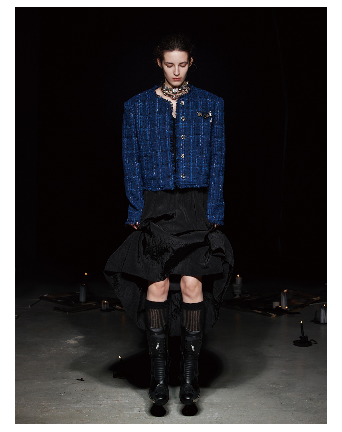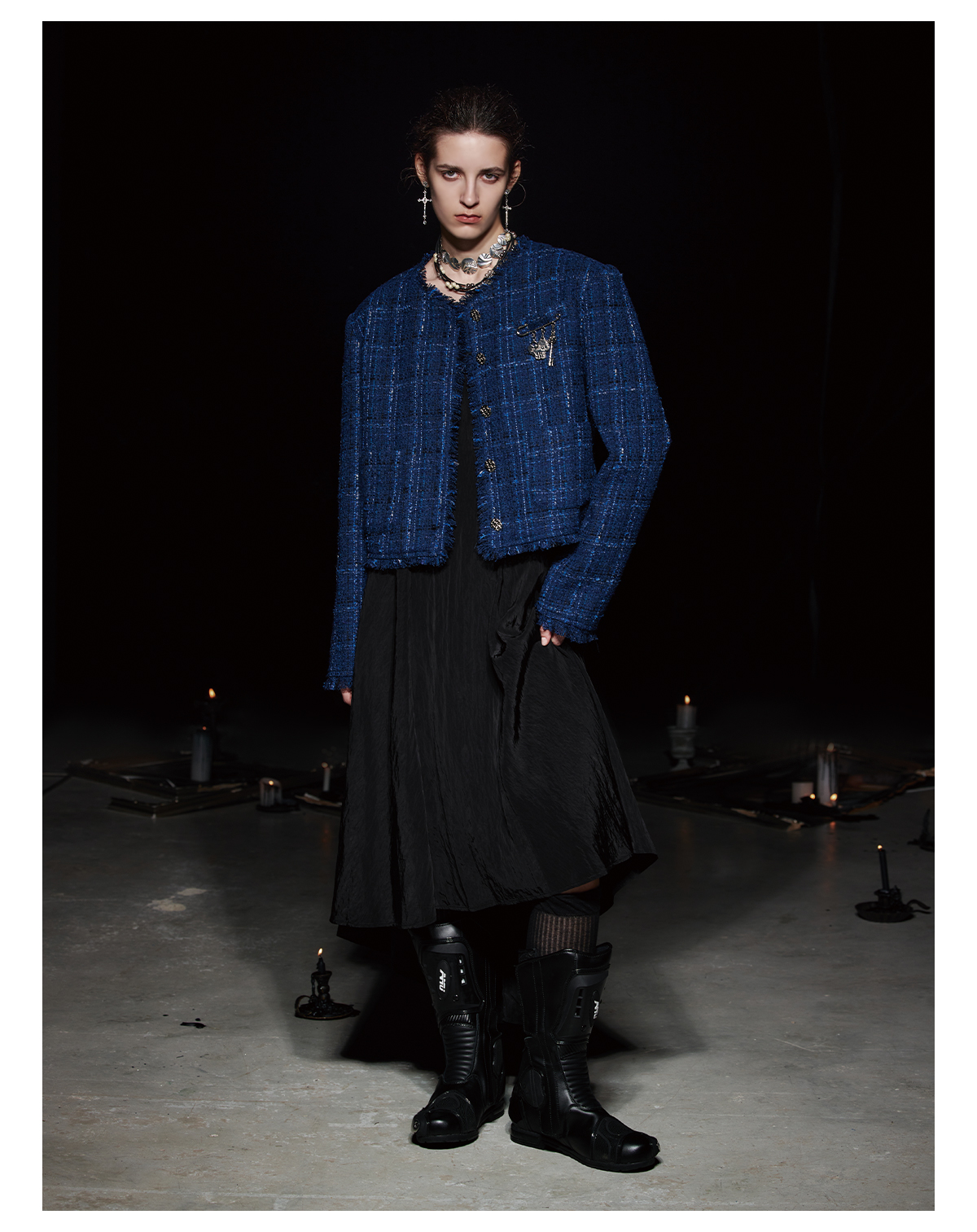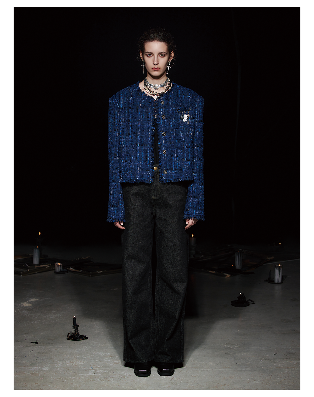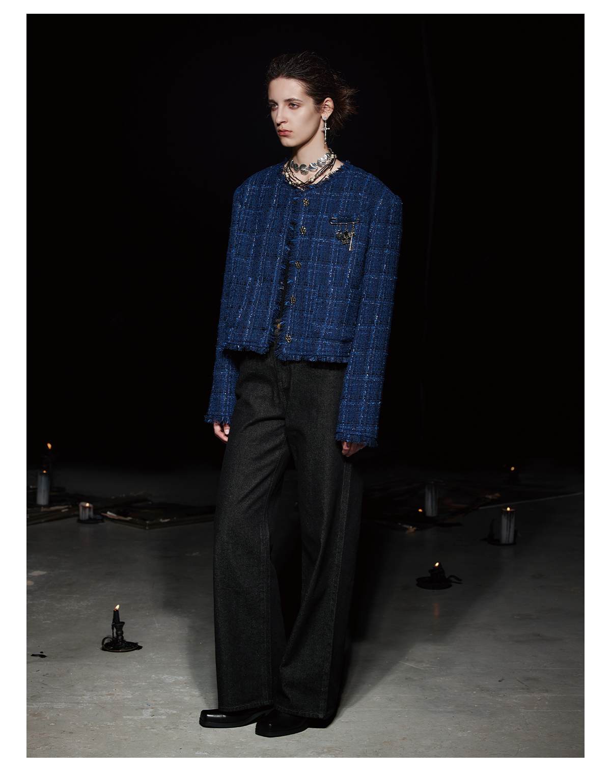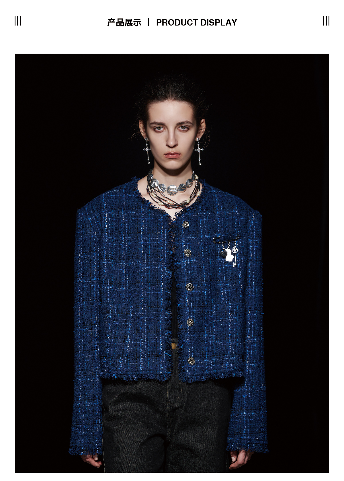 Immune System Mysterious Blue Neutral Shoulder-Padded Casual Silhouette Chanel-Style Women's Jacket