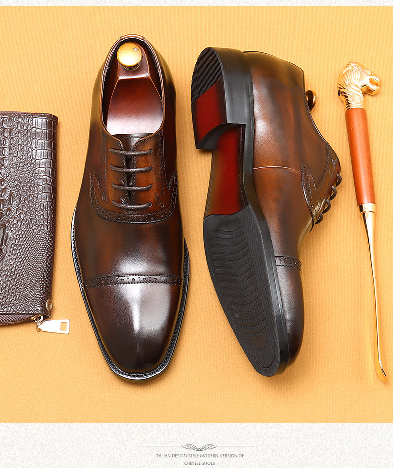 Men's Leather Shoes 2025 New Style Genuine Leather Formal Business Three-Strap Oxford Shoes High-End Authentic British Wedding Men's Shoes