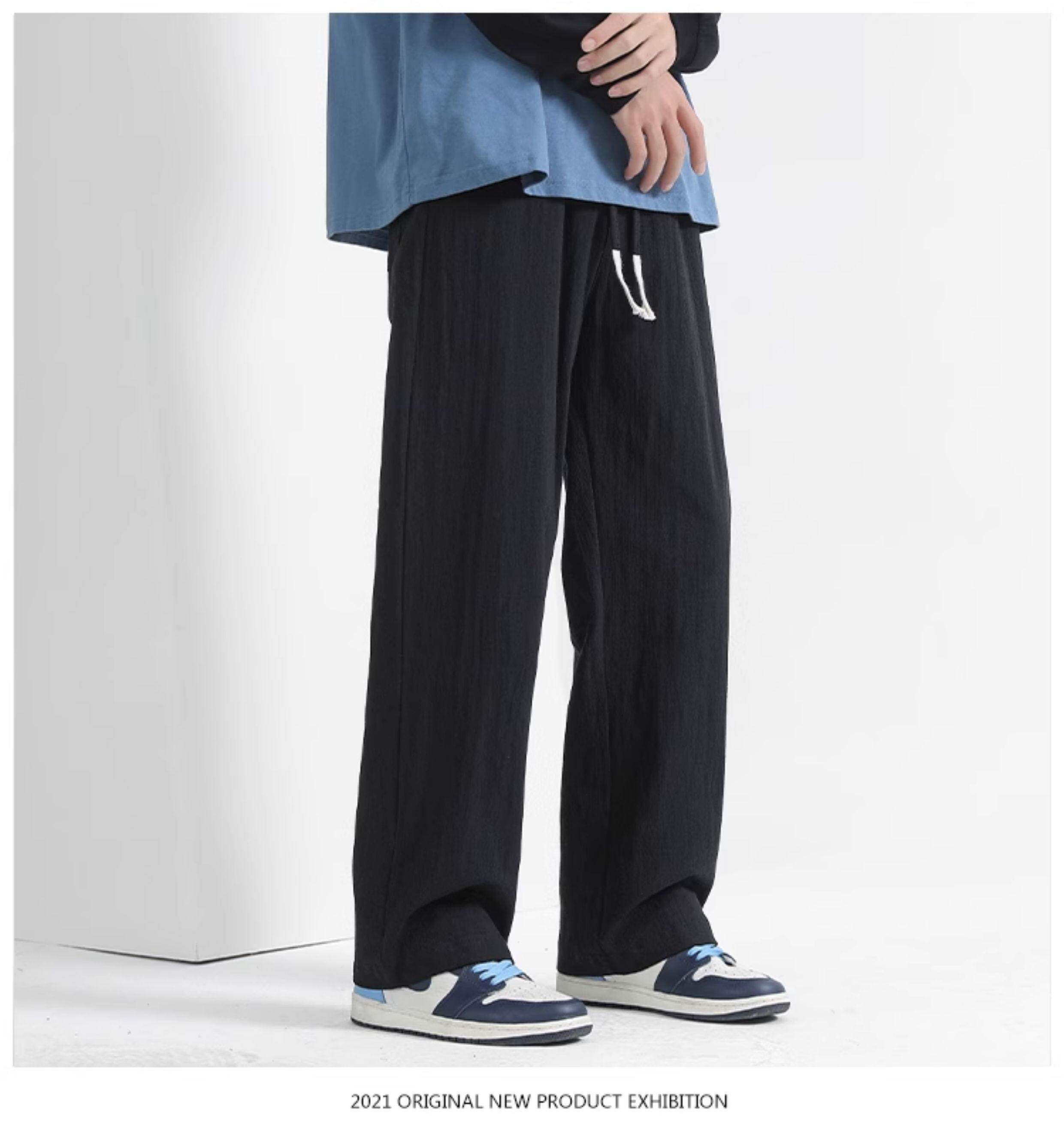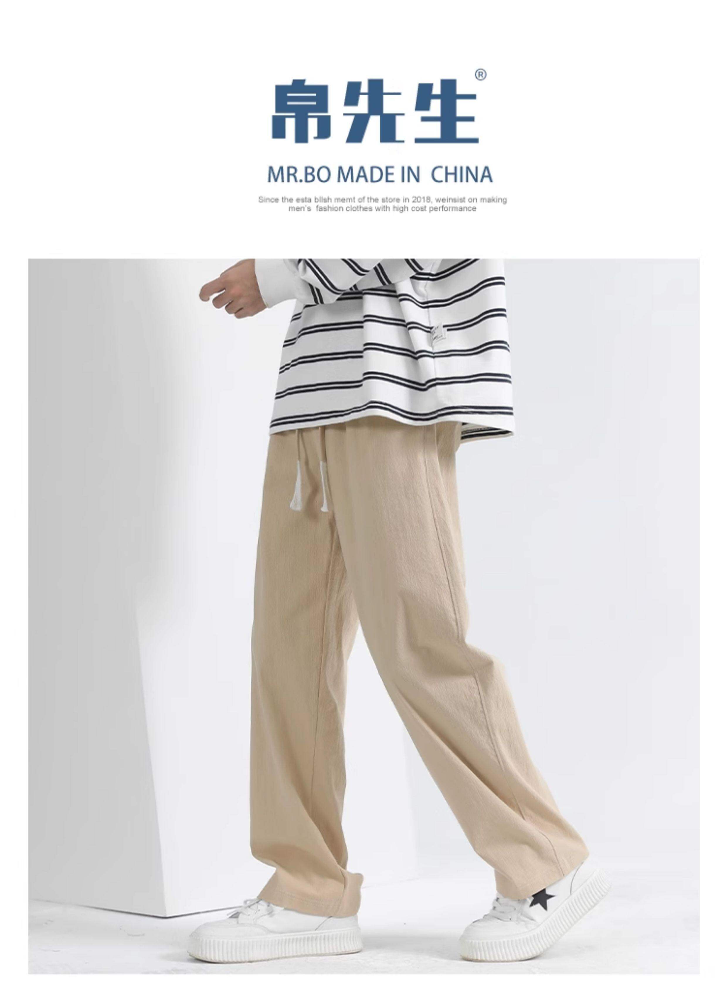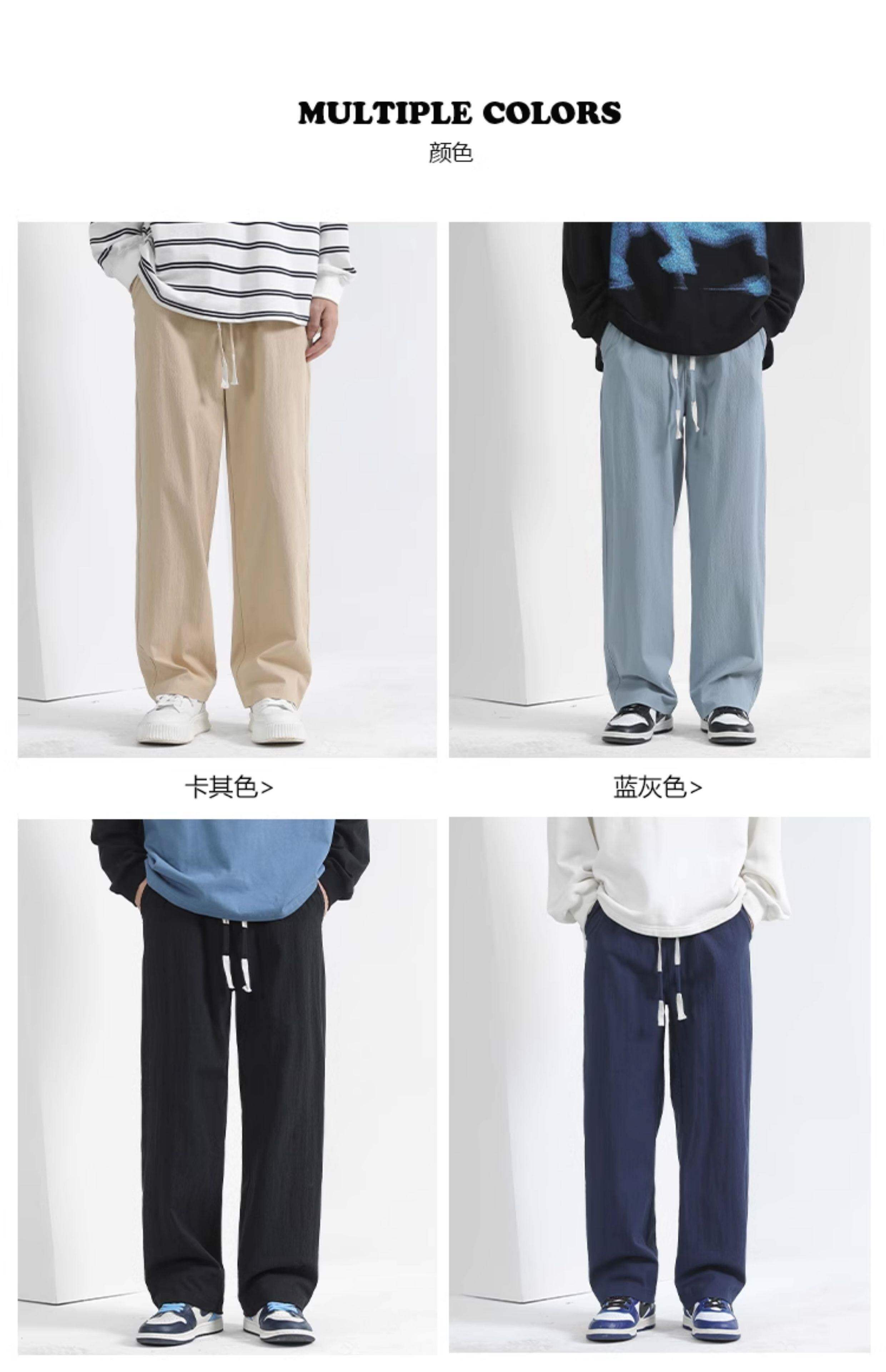 Men's Pants Spring and Autumn Men's Linen Straight Pants Loose Pure Cotton Casual Pants Summer Long Pants Men's Cotton and Linen Sweatpants