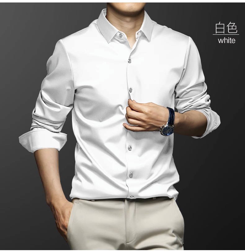 High-End Mulberry Silk Shirt for Men, Long-Sleeved, Non-Iron, Business Casual, Silk Drape, Plus Size Shirt, Suit with a High-End Feel