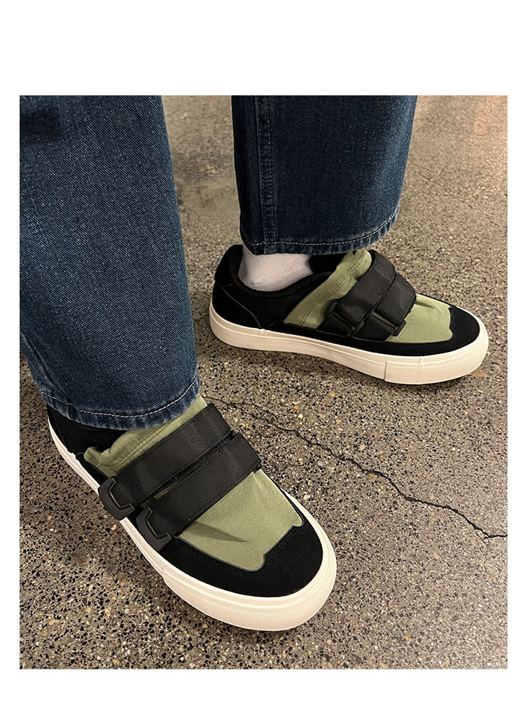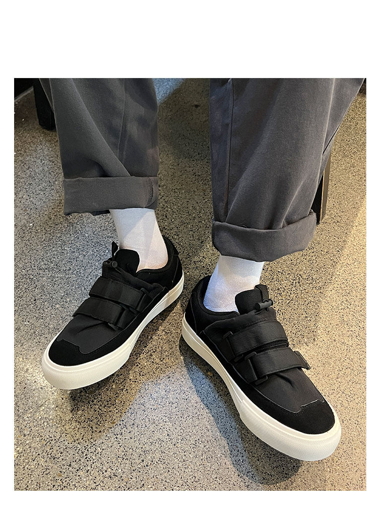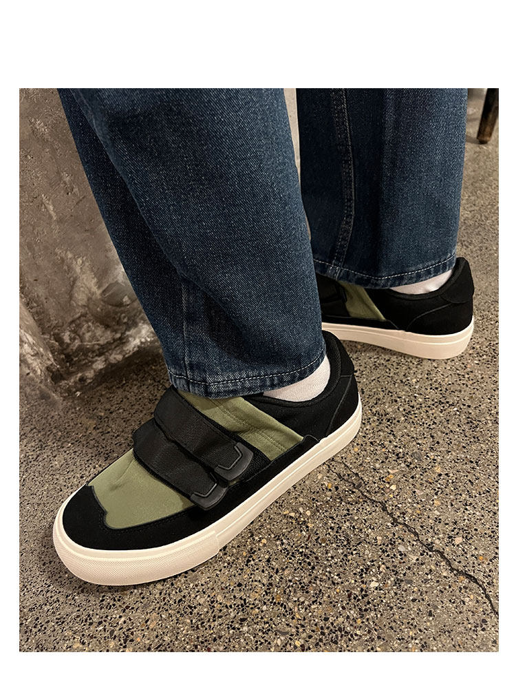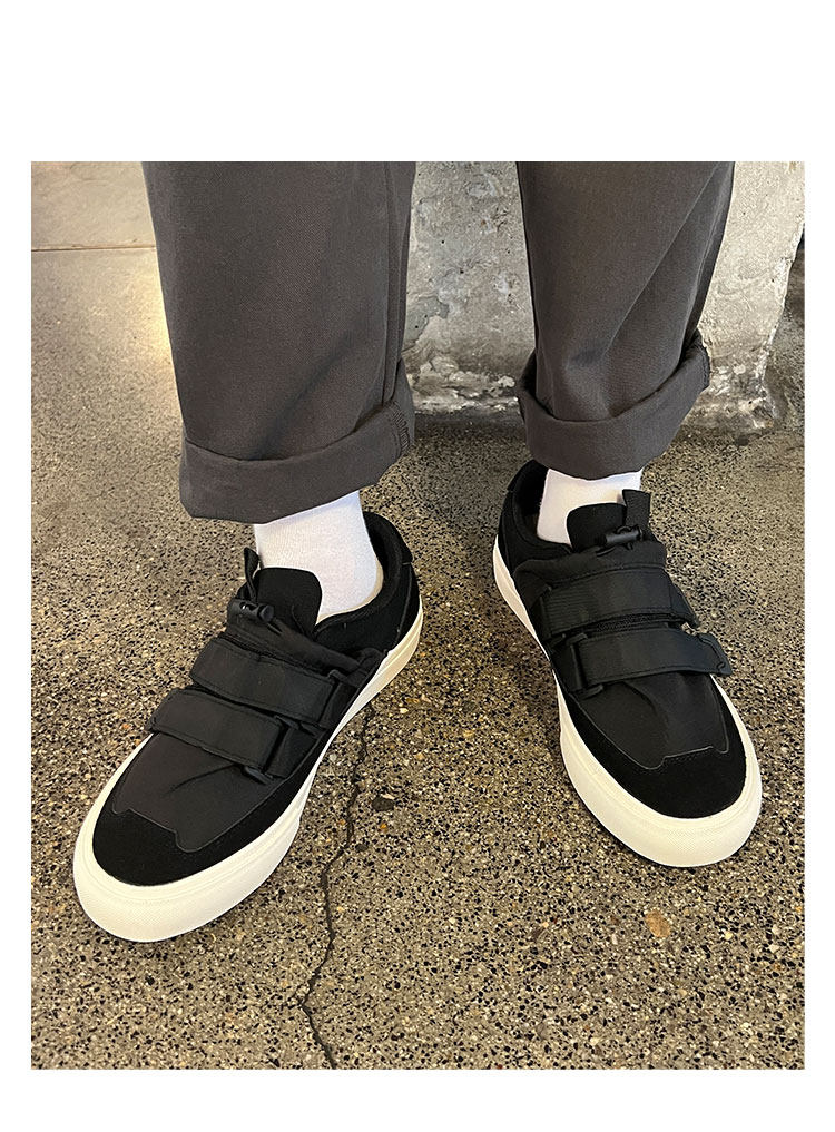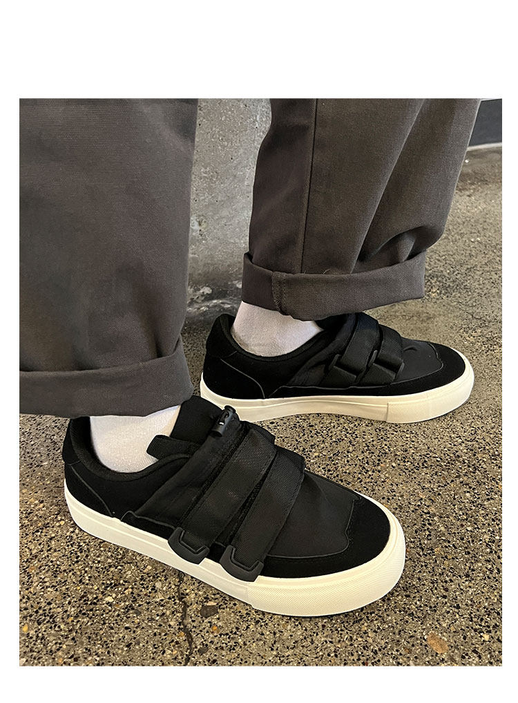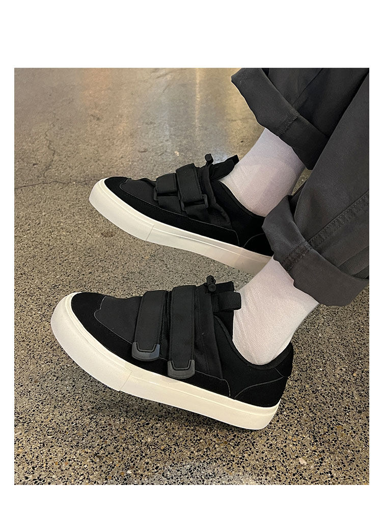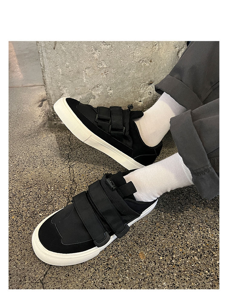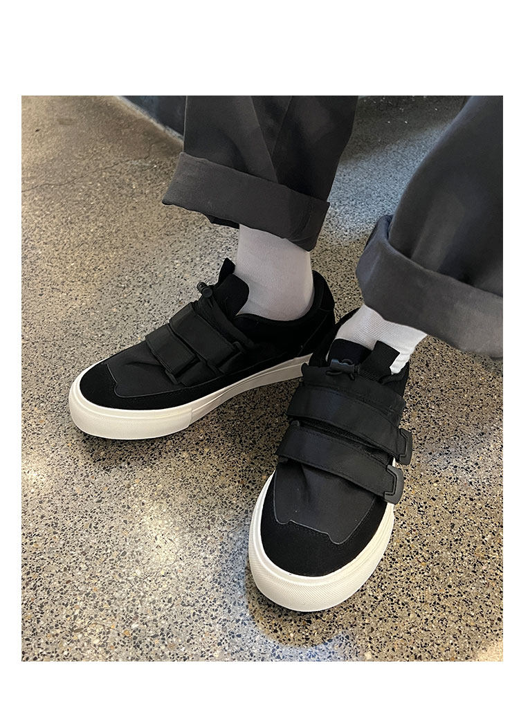 Men's Versatile Trendy Shoes, Black Canvas Shoes, Men's Korean Style Trendy Velcro Slip-On Shoes, Slip-On Canvas Shoes for Men