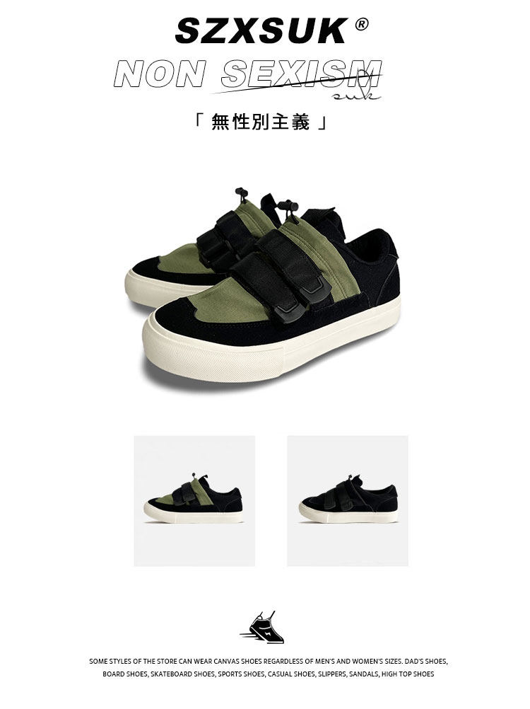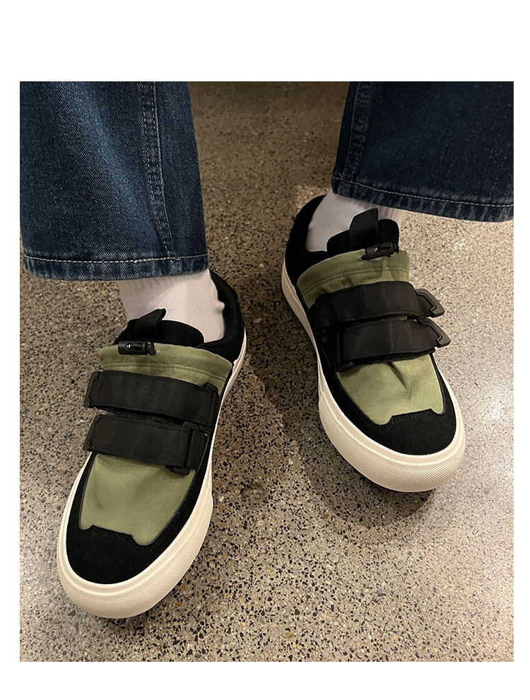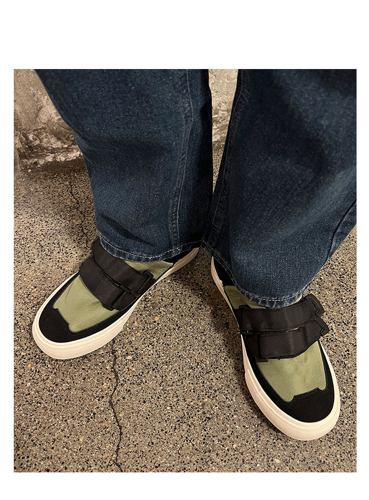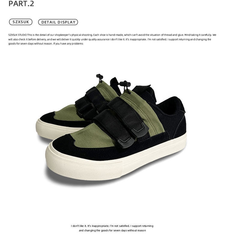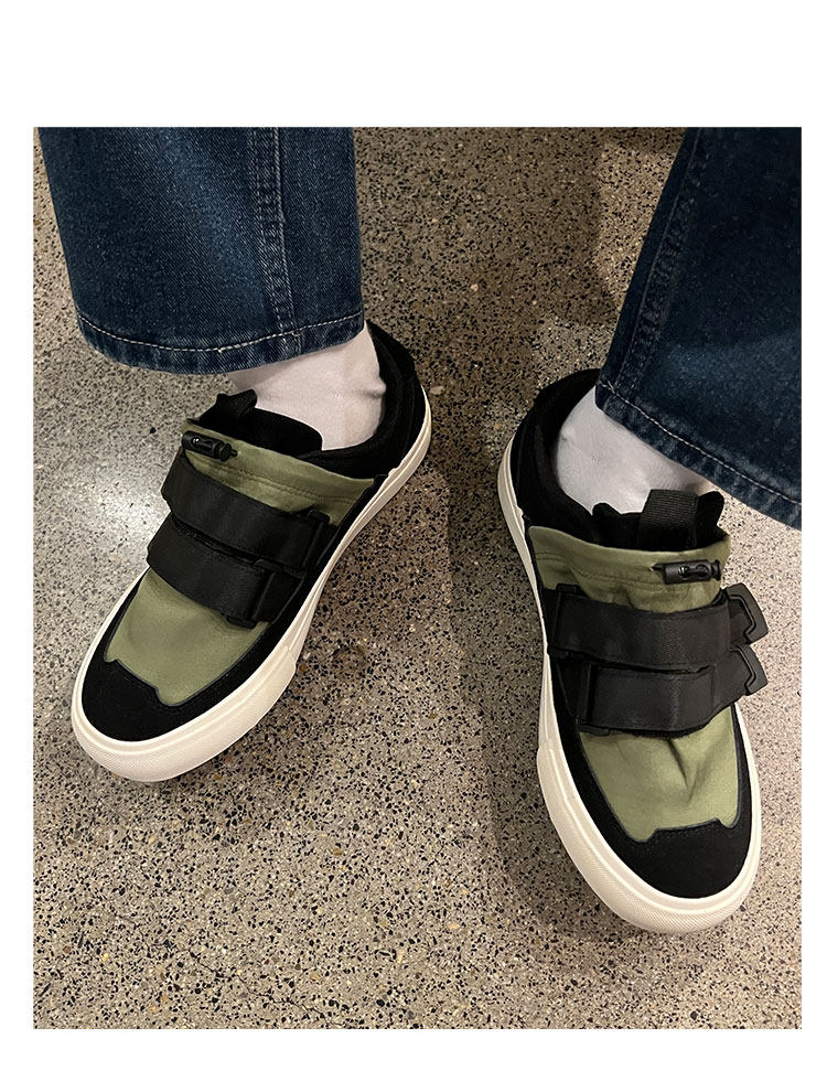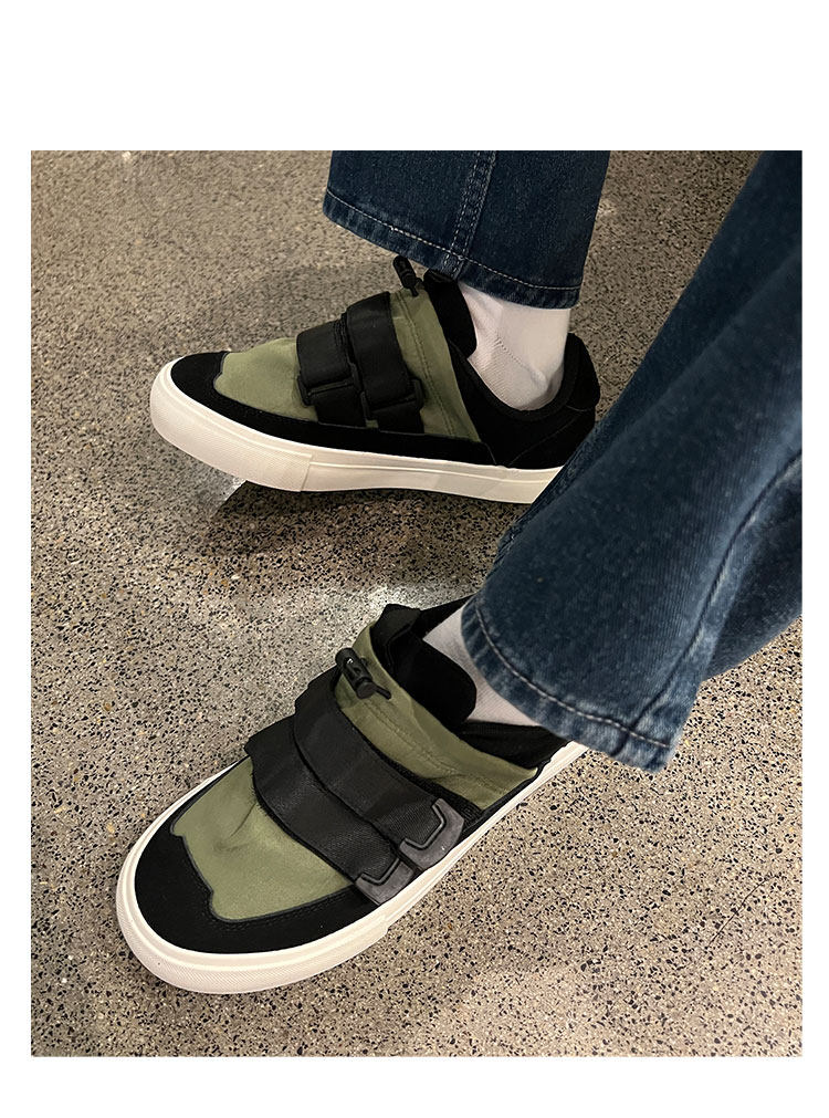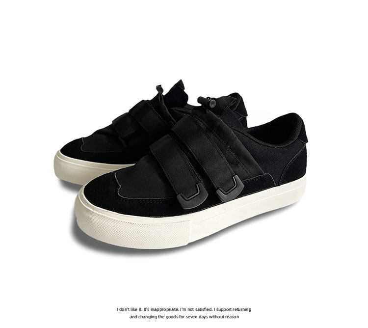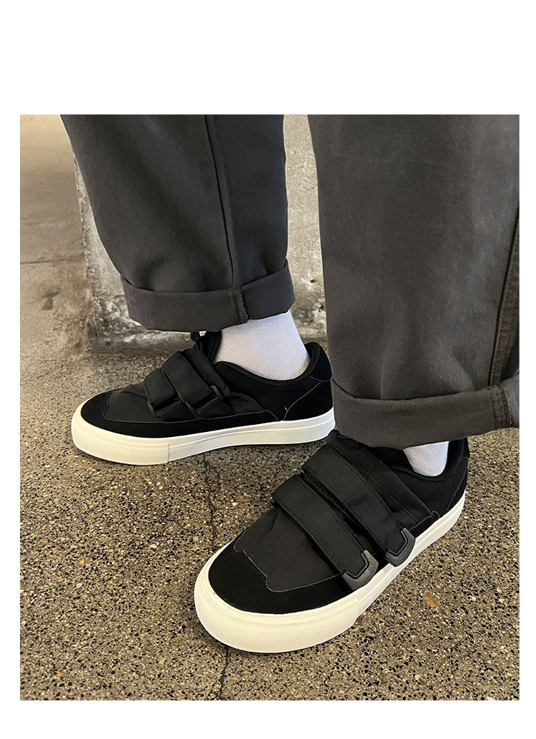 Men's Versatile Trendy Shoes, Black Canvas Shoes, Men's Korean Style Trendy Velcro Slip-On Shoes, Slip-On Canvas Shoes for Men