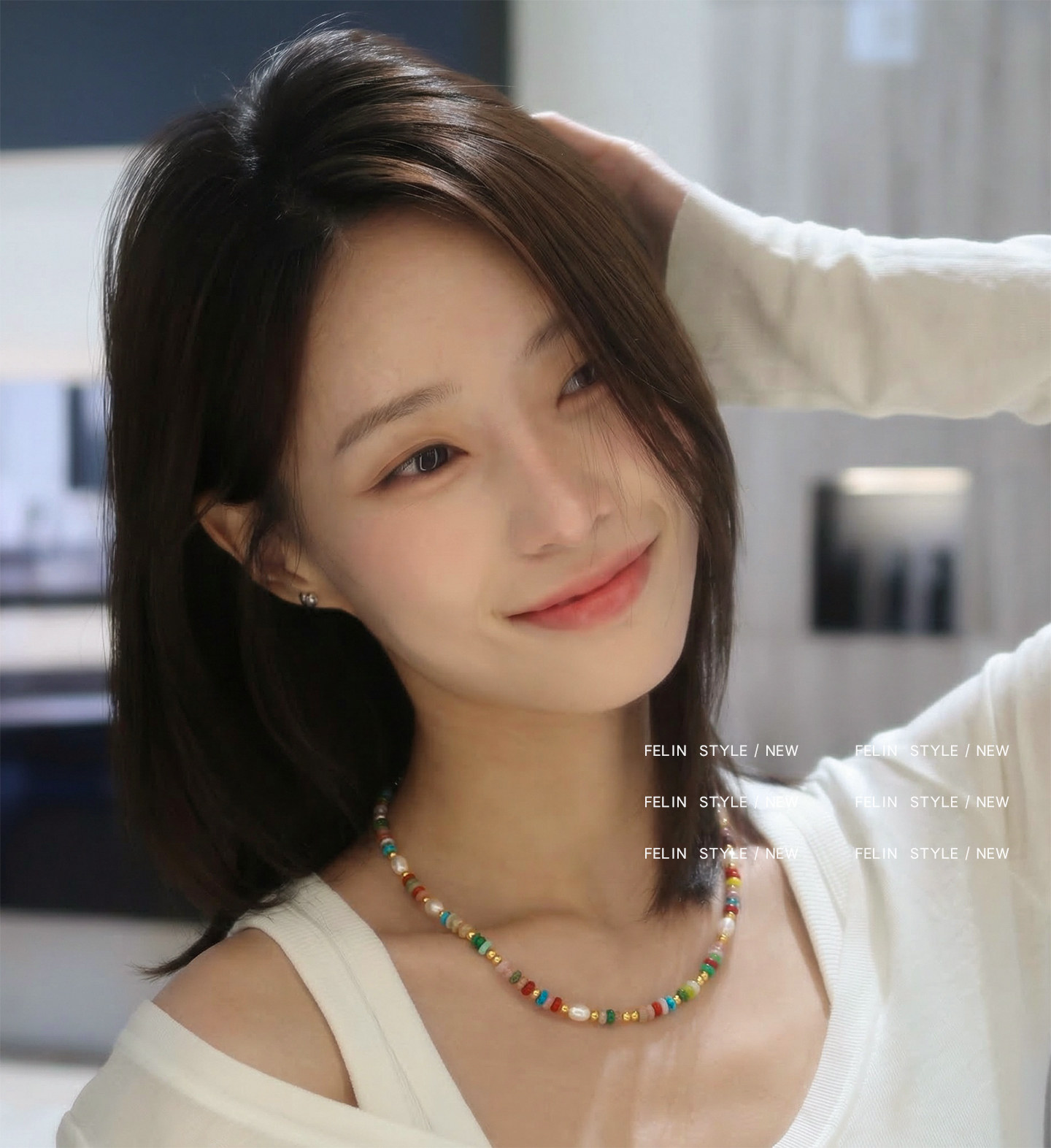 Natural Pearl Rainbow-Colored Stone Dopamine Beaded Necklace Women's Accessories Layered Exquisite 2026 New Style Choker