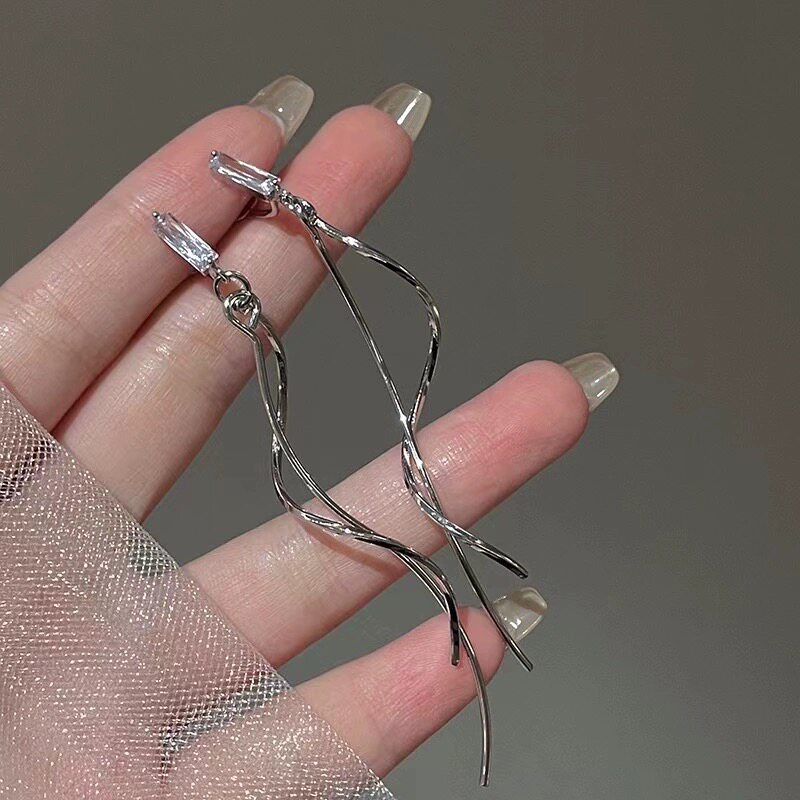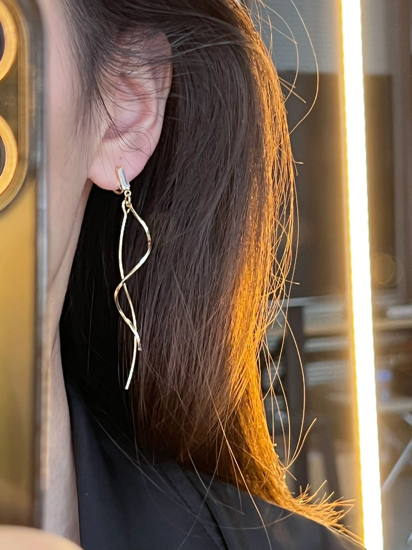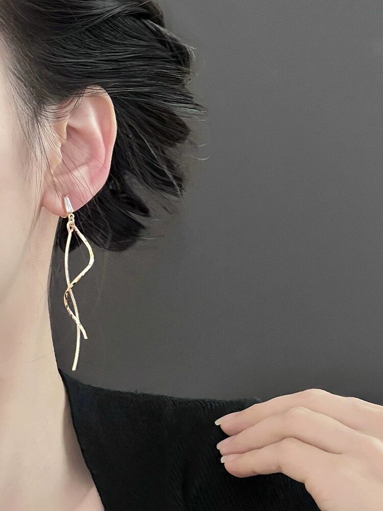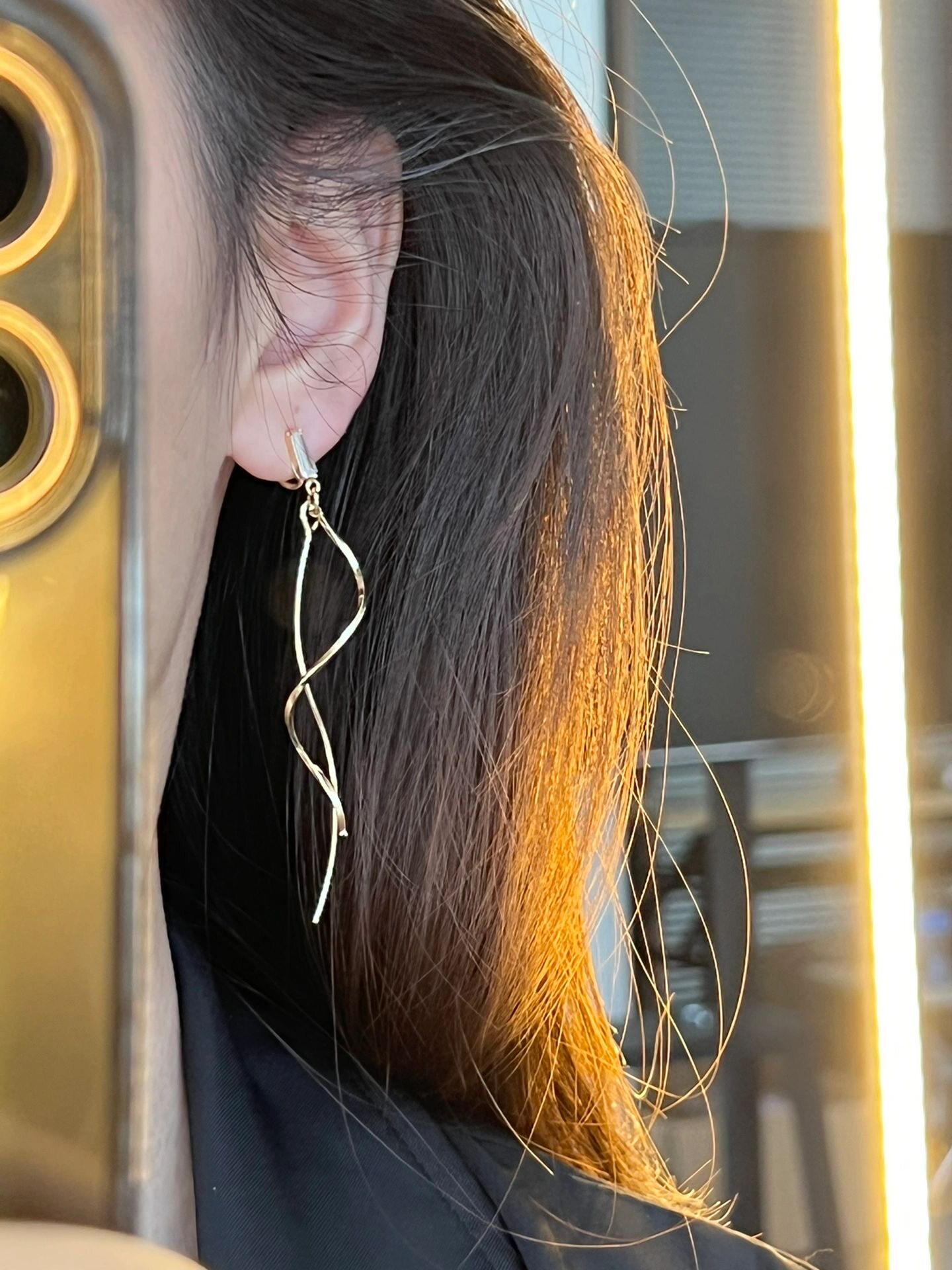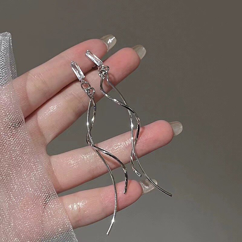 Earrings That Make the Face Look Smaller, 925 Silver Long Earrings, Simple and Elegant, Non-Pierced Coil Ear Clips for Women