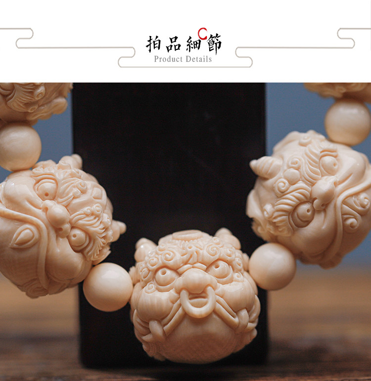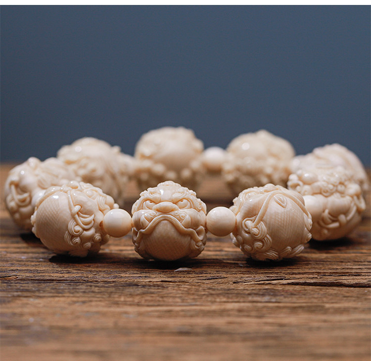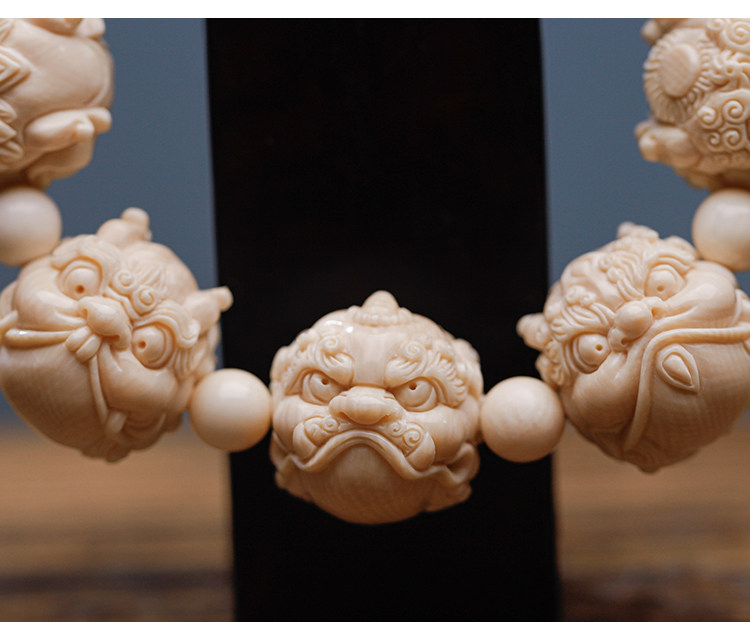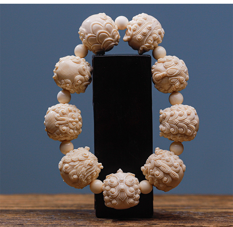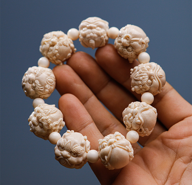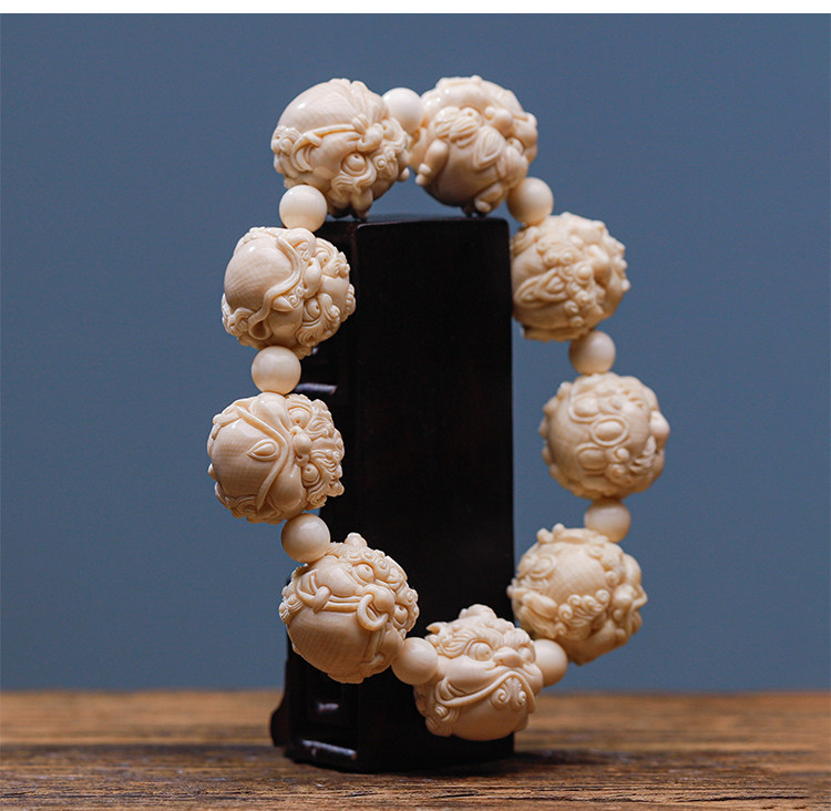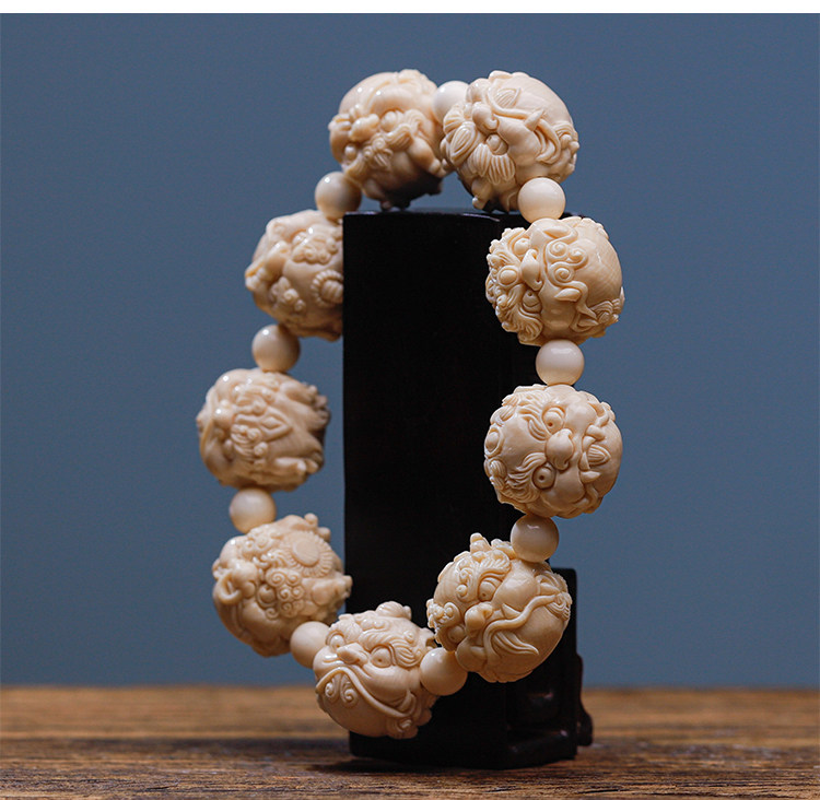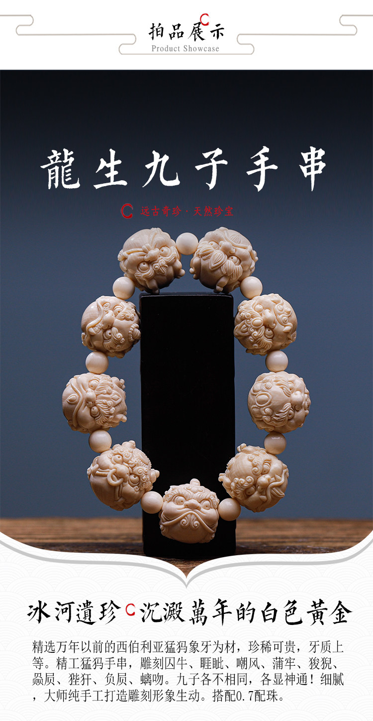Wuyangtang Natural Mammoth Tooth Carved Bracelet, Dragon's Nine Sons, Hand-Carved, Fortune-Bringing Ornament, Collectible, Gift