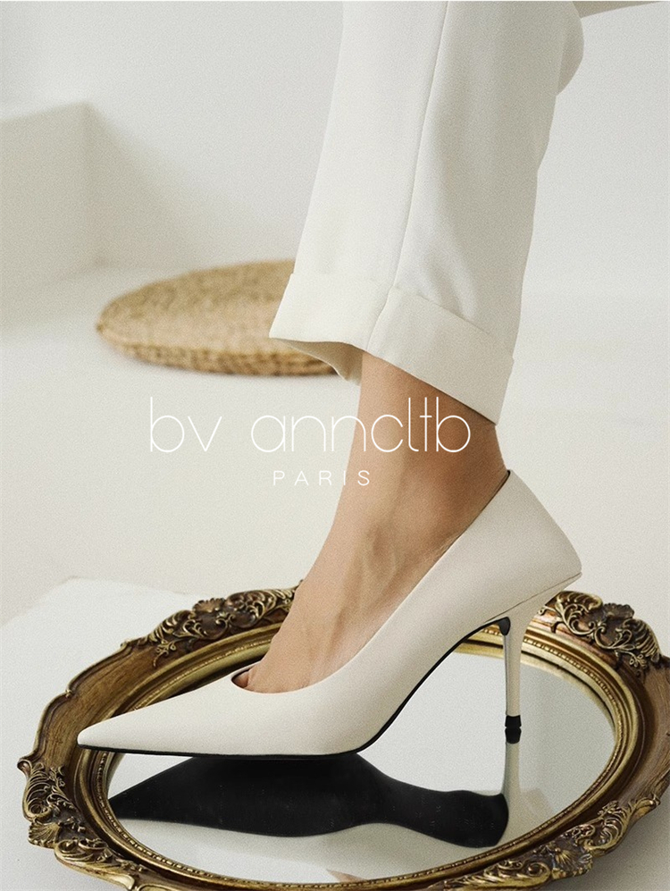 Bv Anncltb New Genuine Leather Pointed-Toe Designer Niche High Heels Shallow Mouth Elegant Fashion Stiletto Shoes for Women