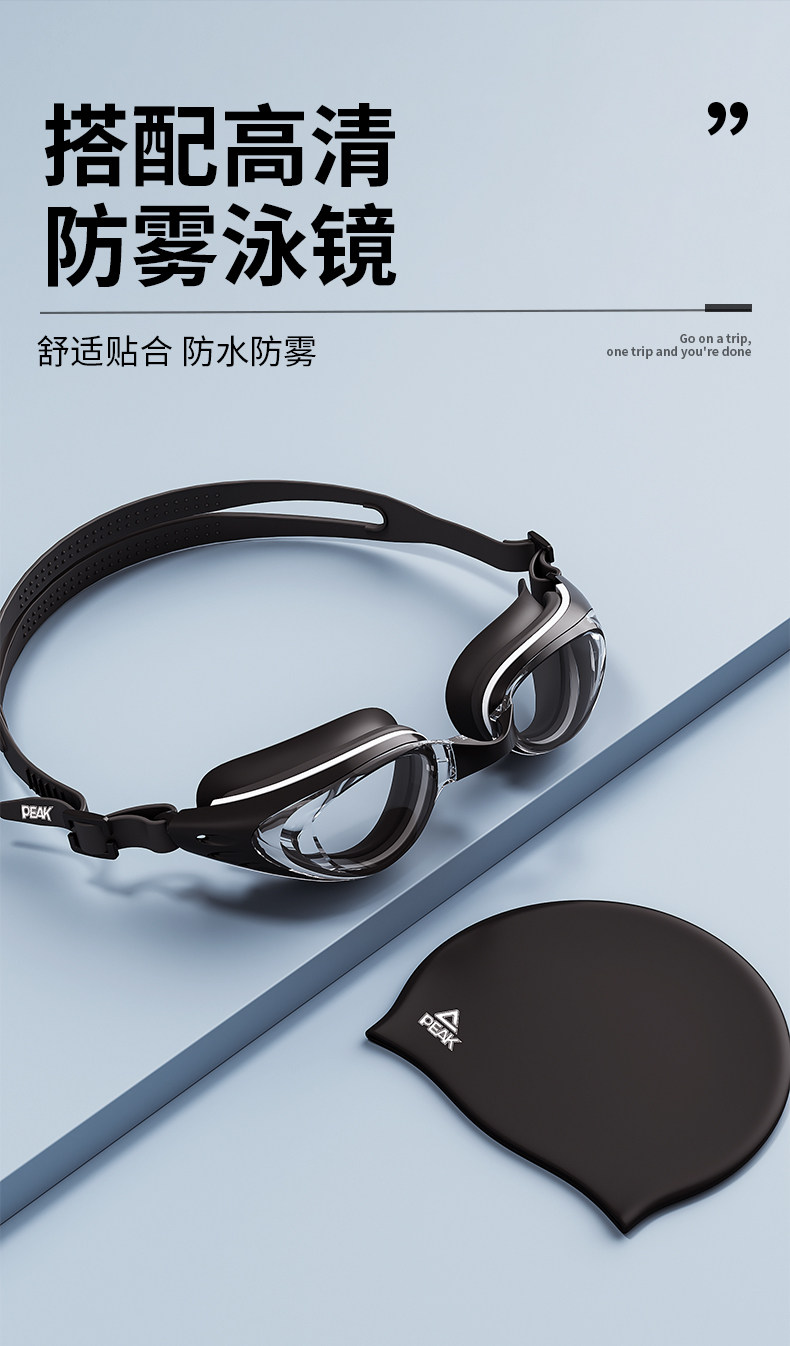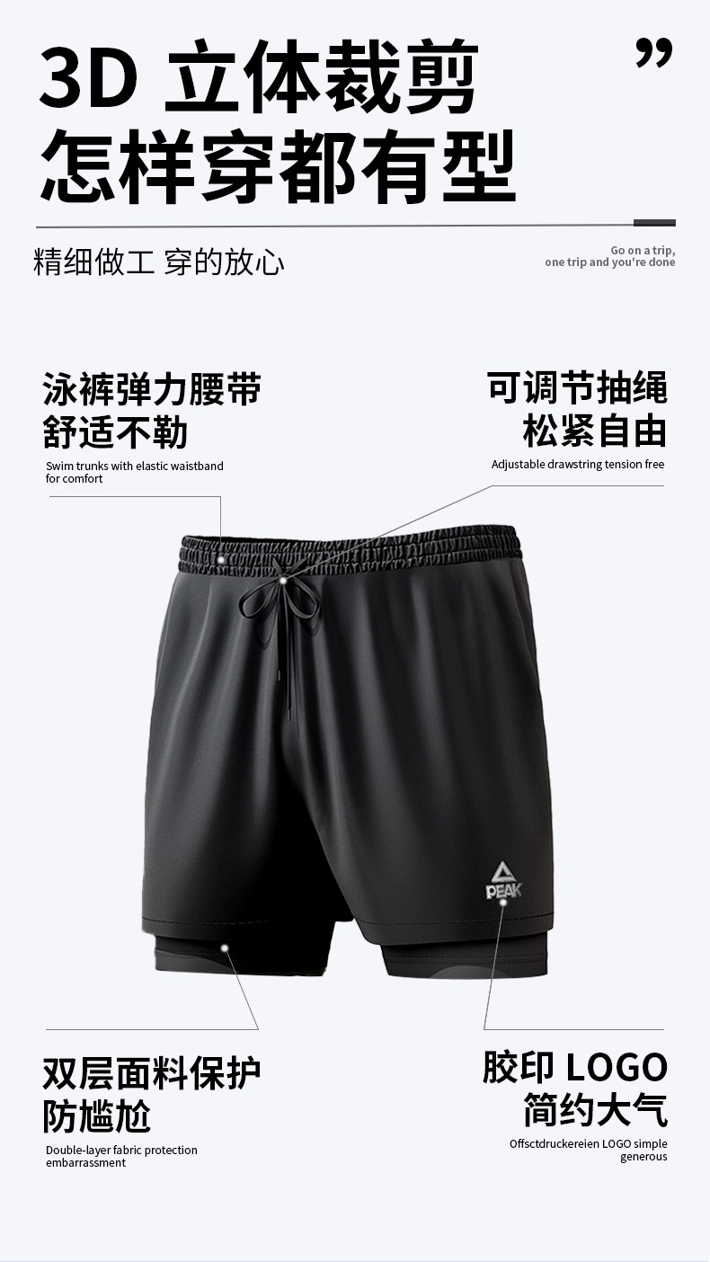 Peak Swimming Trunks Men's Swimming Cap and Goggles Three-Piece Set Hot Spring Anti-Embarrassment Beach Shorts Men's Adult Swimming Equipment
