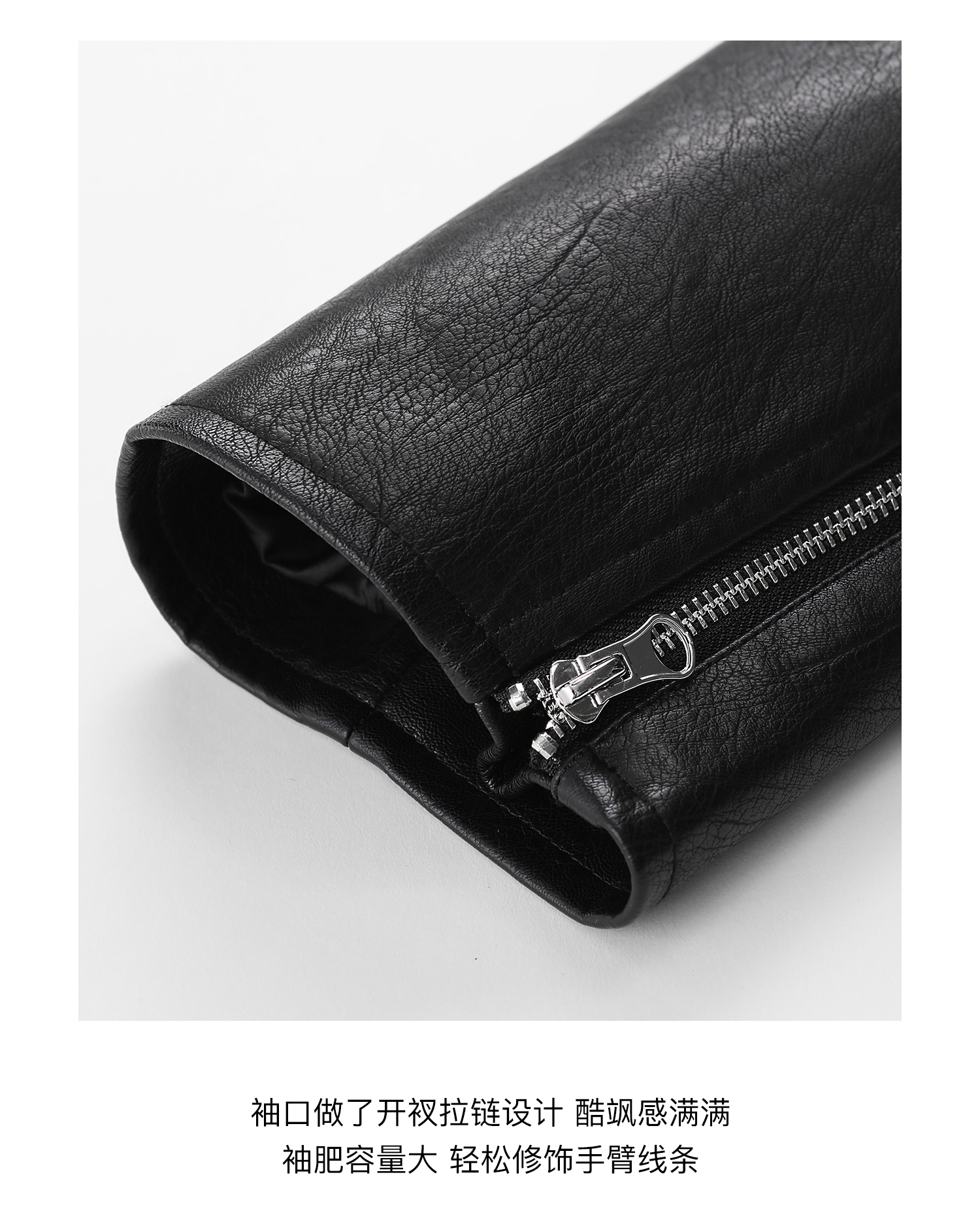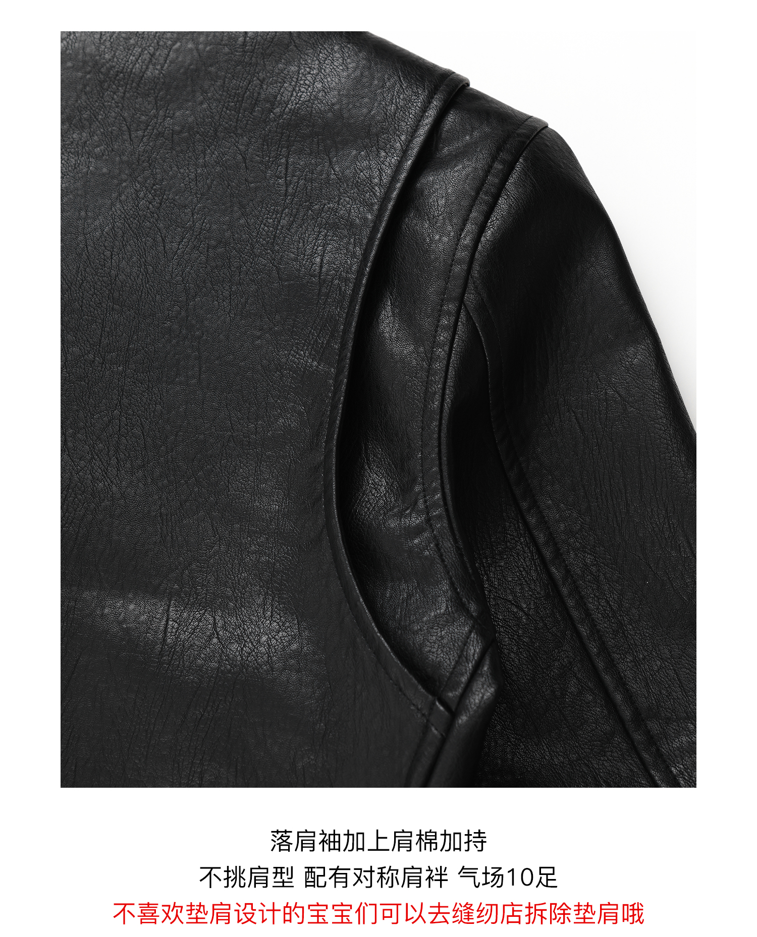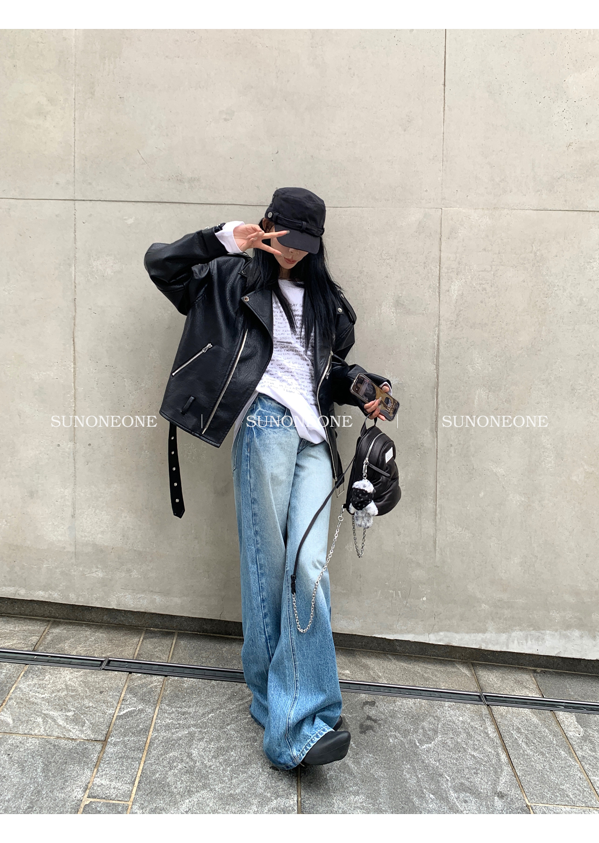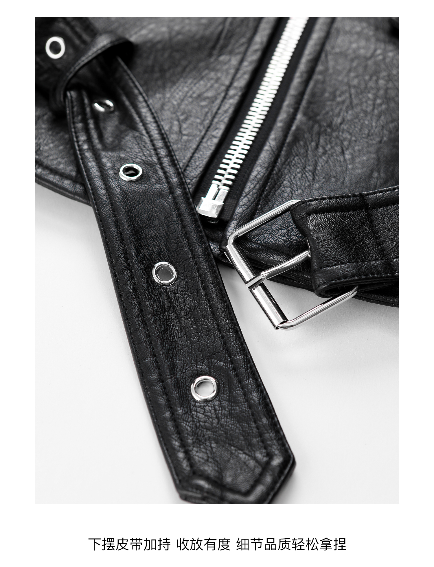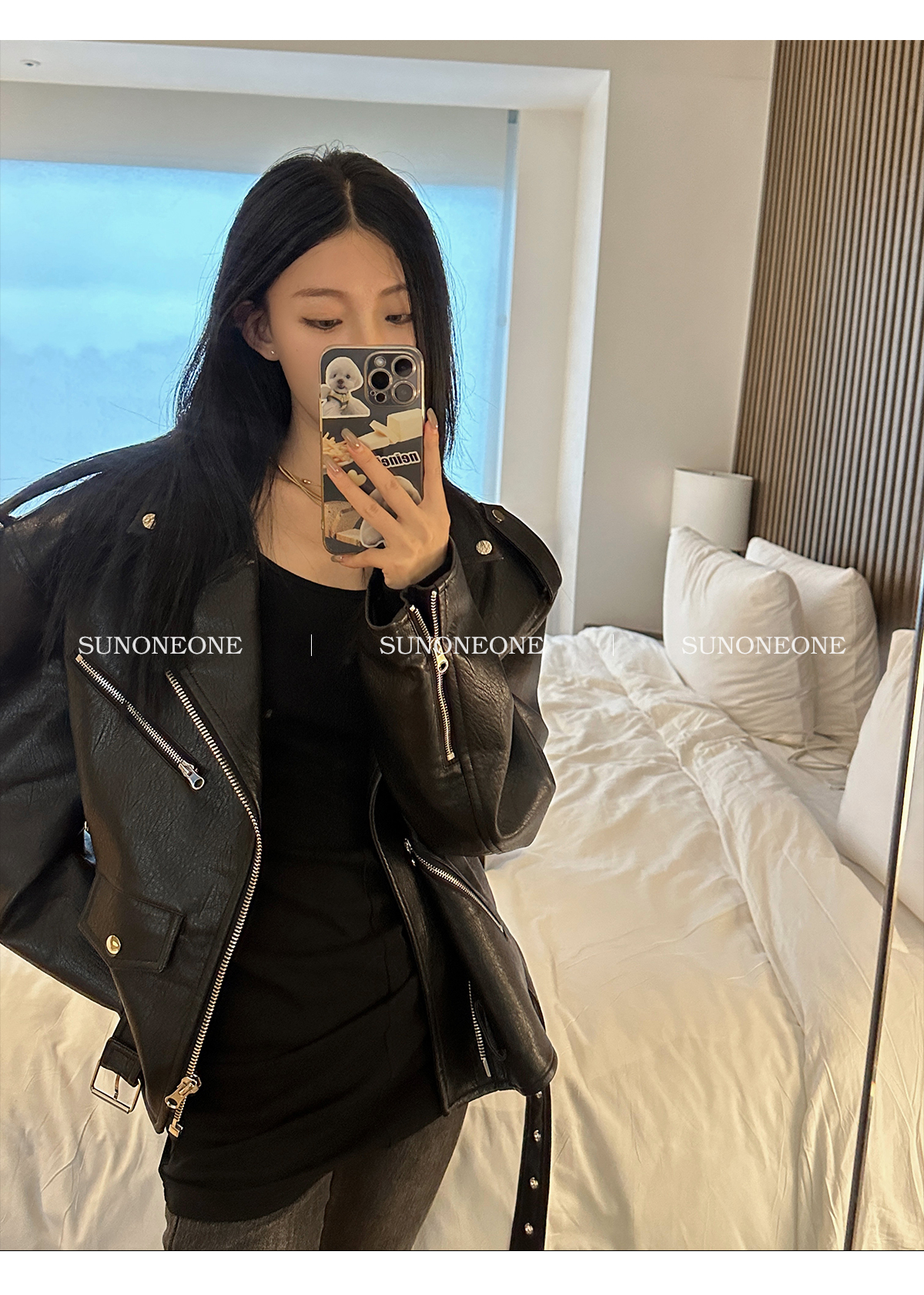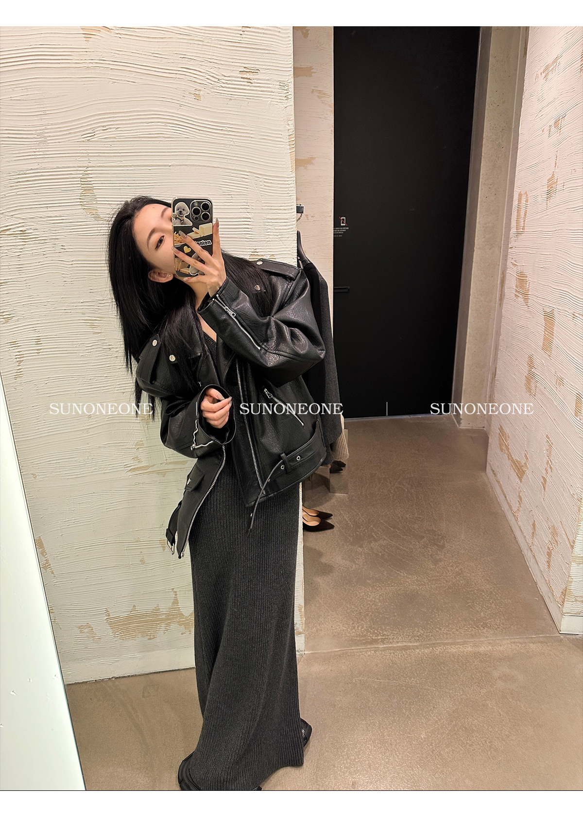 Sunoneone Heavy-Duty Pu Leather Motorcycle Jacket for Women, Autumn and Winter Vintage Black Leather Coat, Loose Long-Sleeve Slimming Top