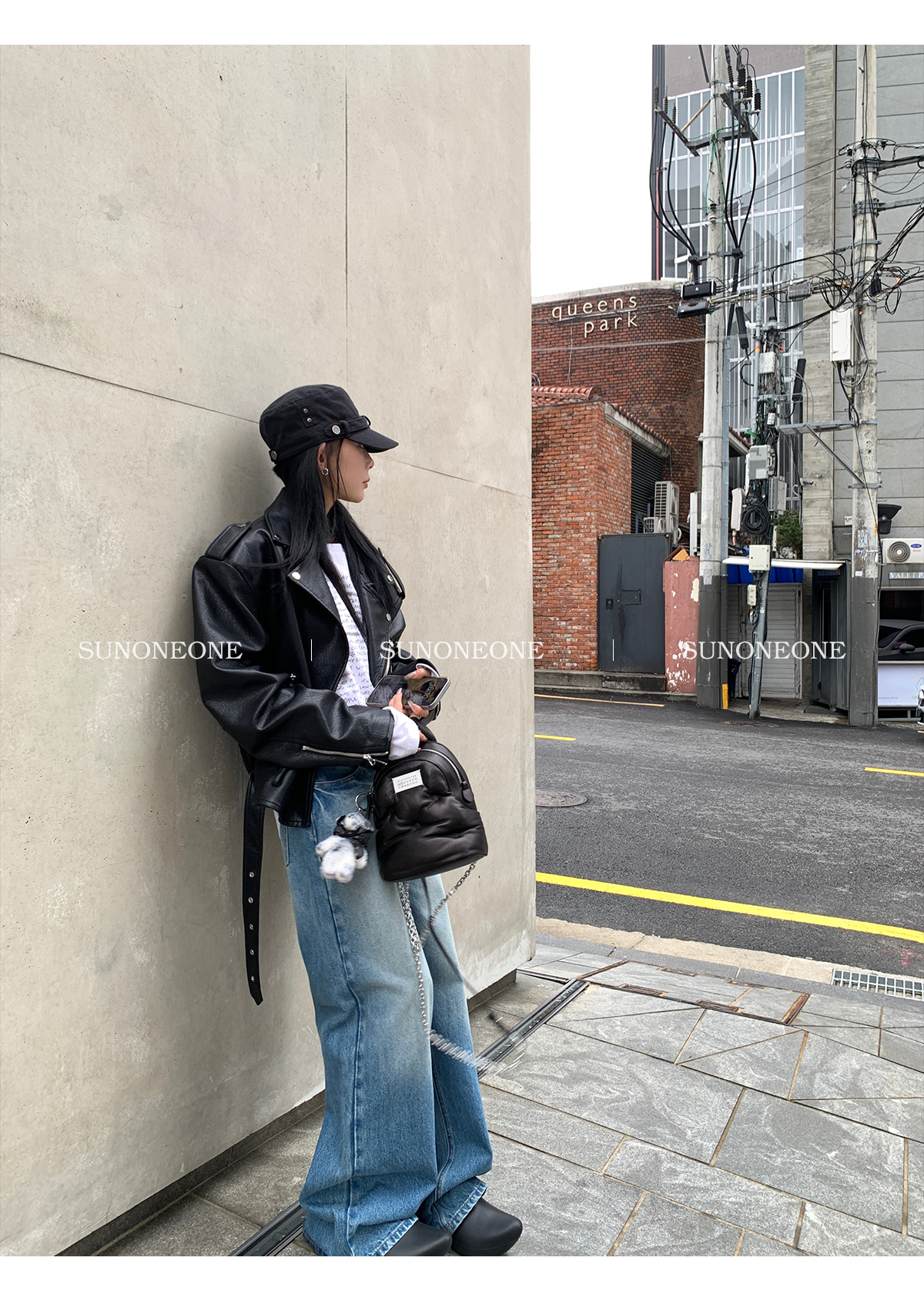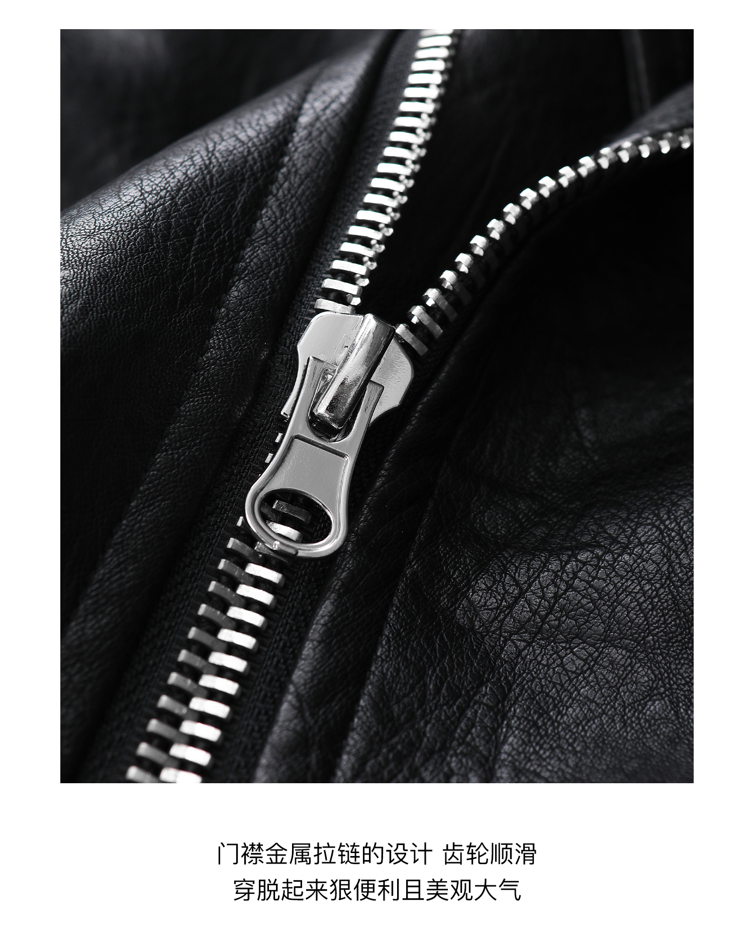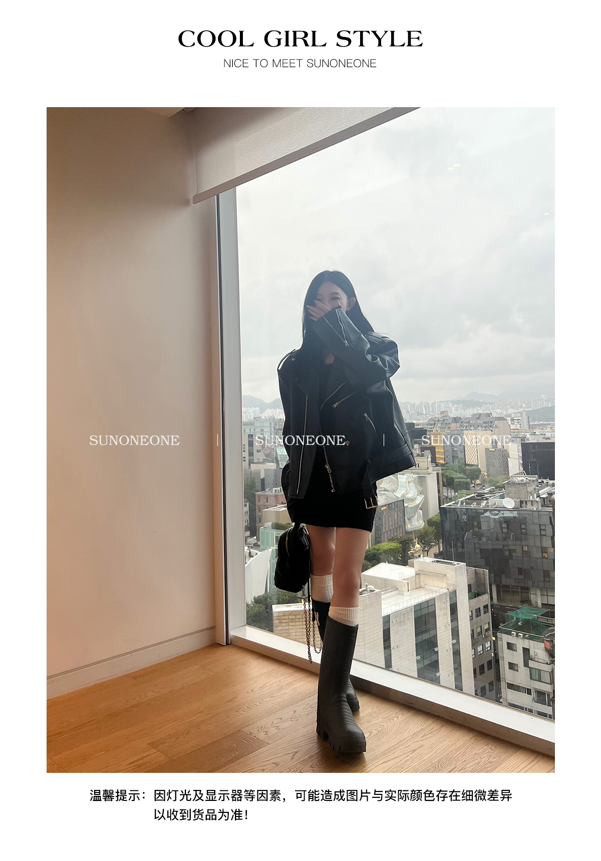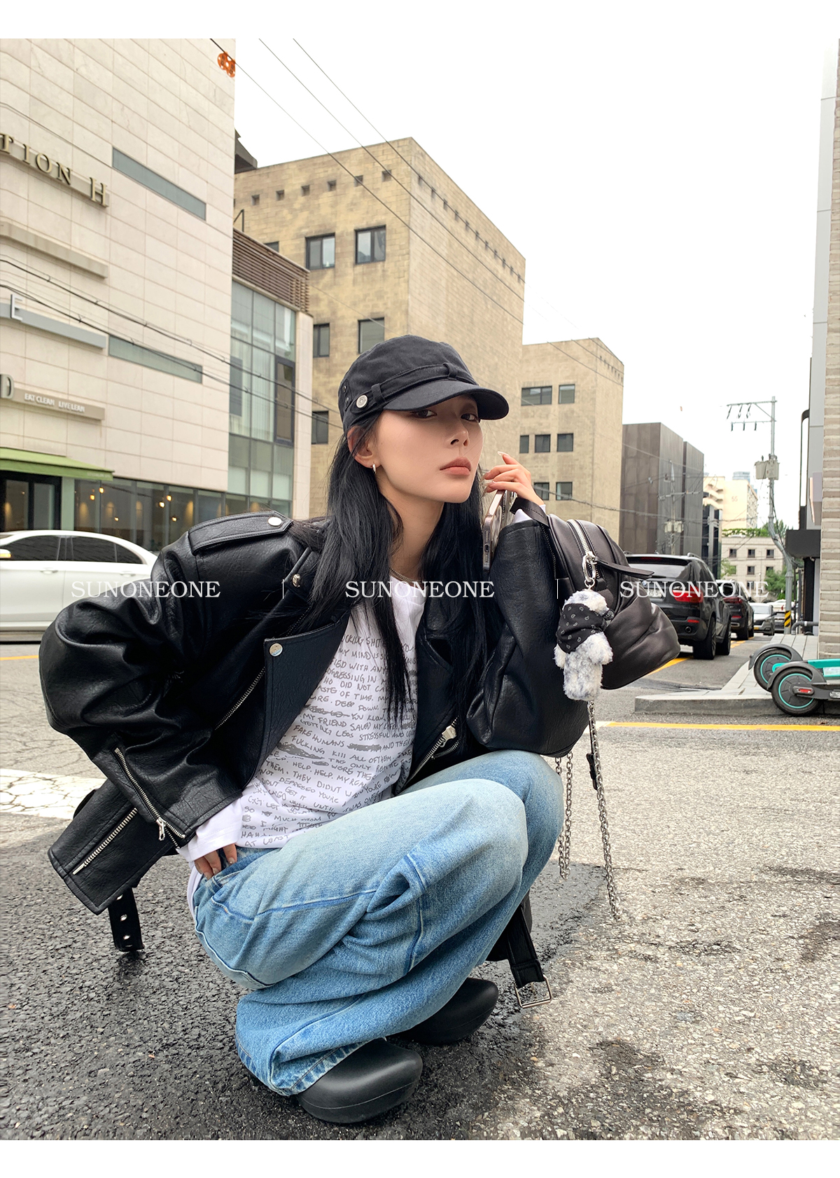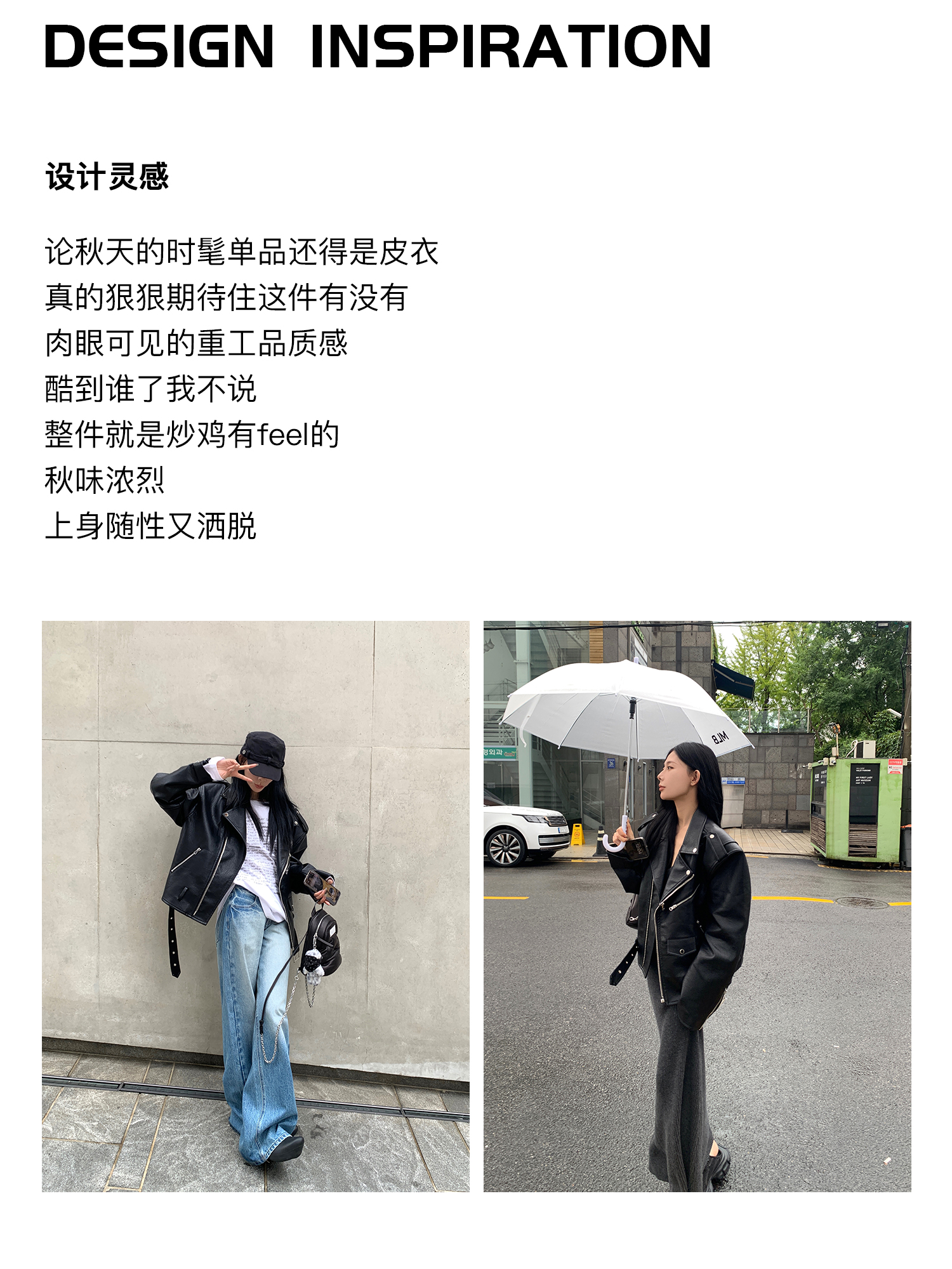 Sunoneone Heavy-Duty Pu Leather Motorcycle Jacket for Women, Autumn and Winter Vintage Black Leather Coat, Loose Long-Sleeve Slimming Top