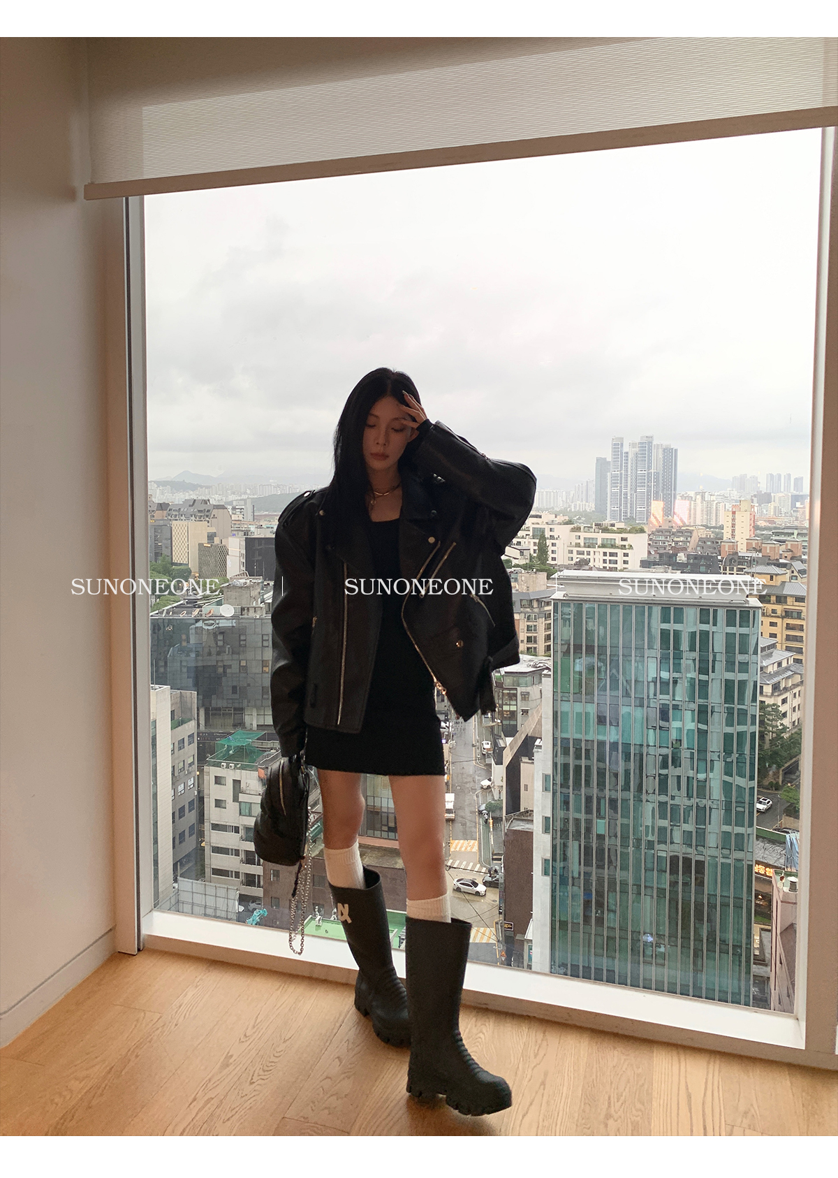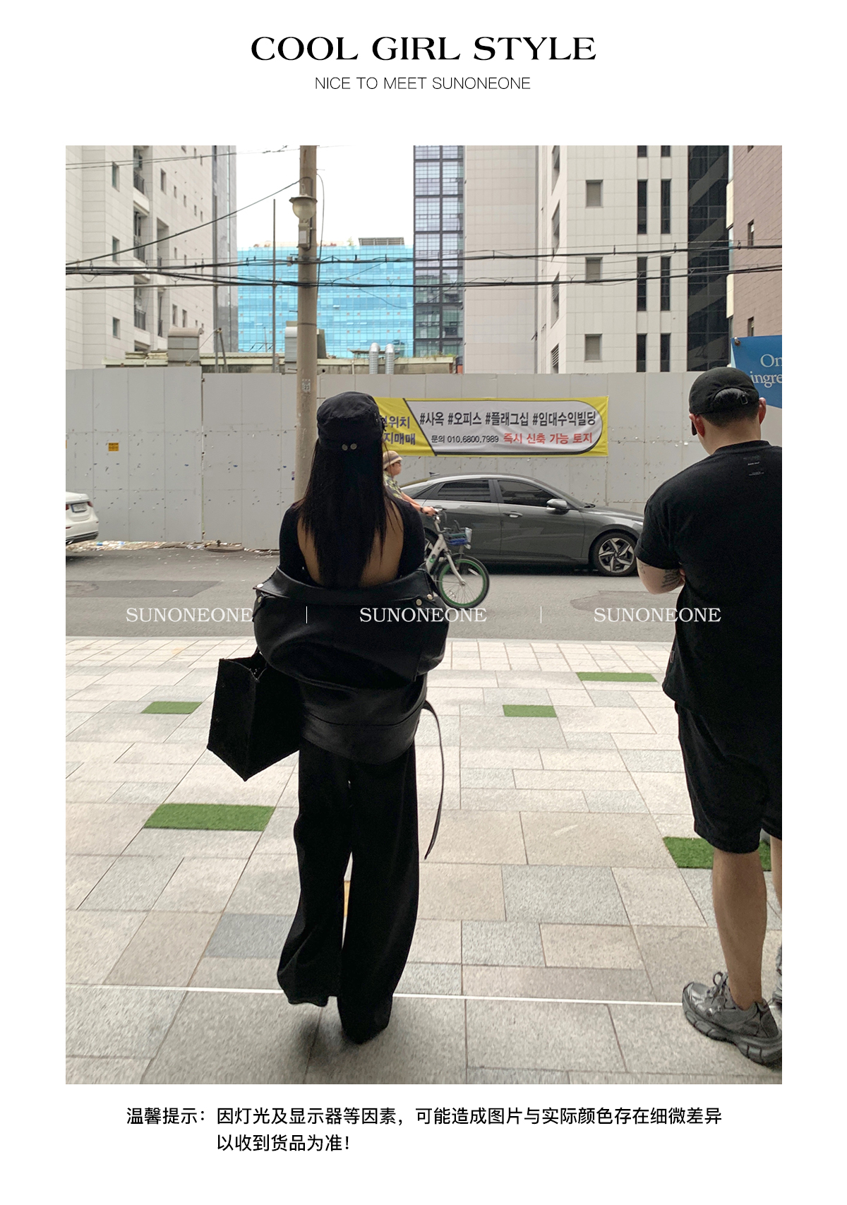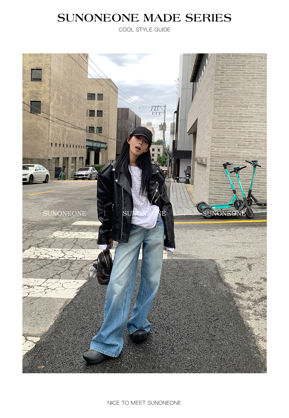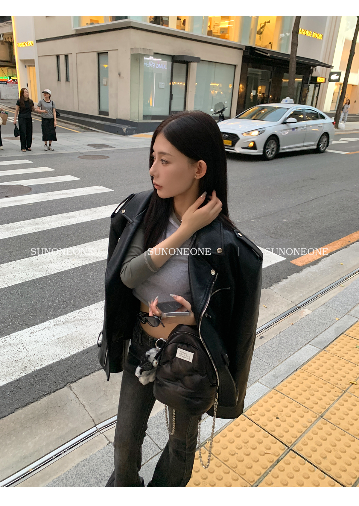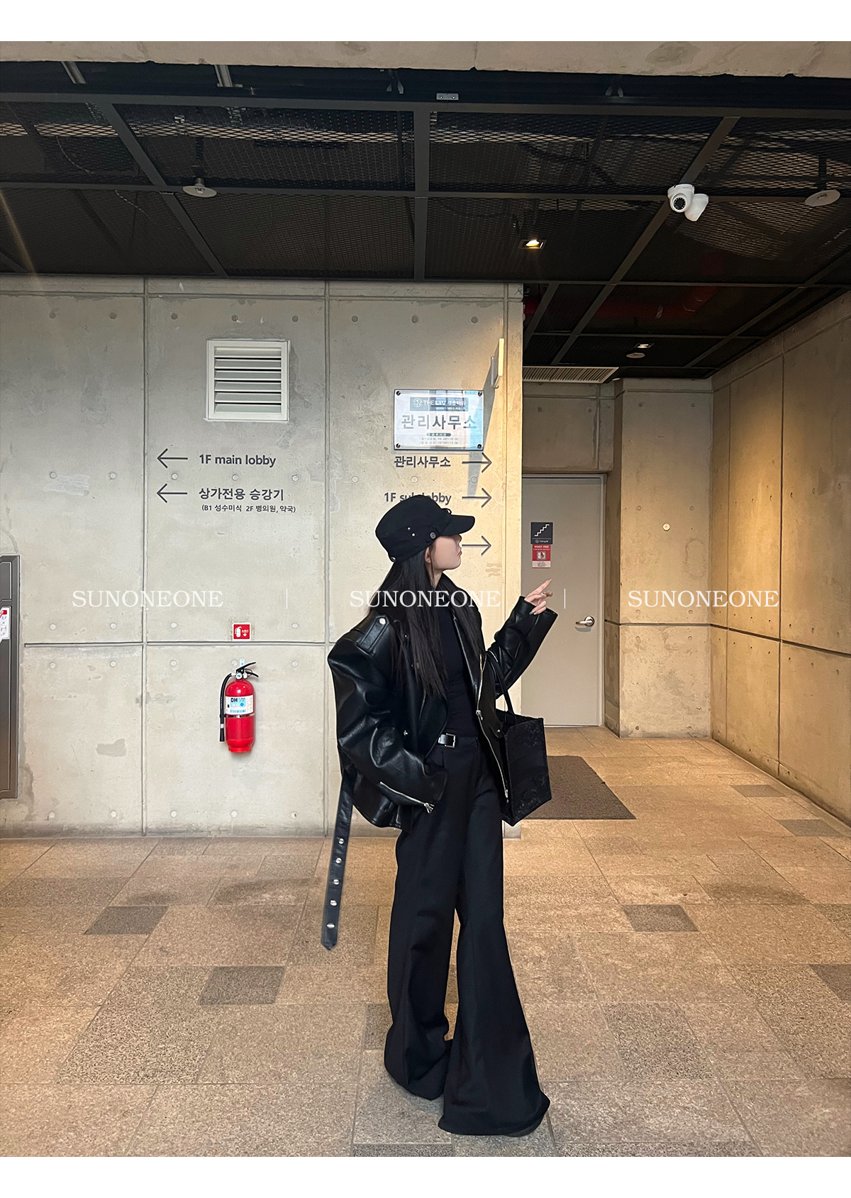 Sunoneone Heavy-Duty Pu Leather Motorcycle Jacket for Women, Autumn and Winter Vintage Black Leather Coat, Loose Long-Sleeve Slimming Top