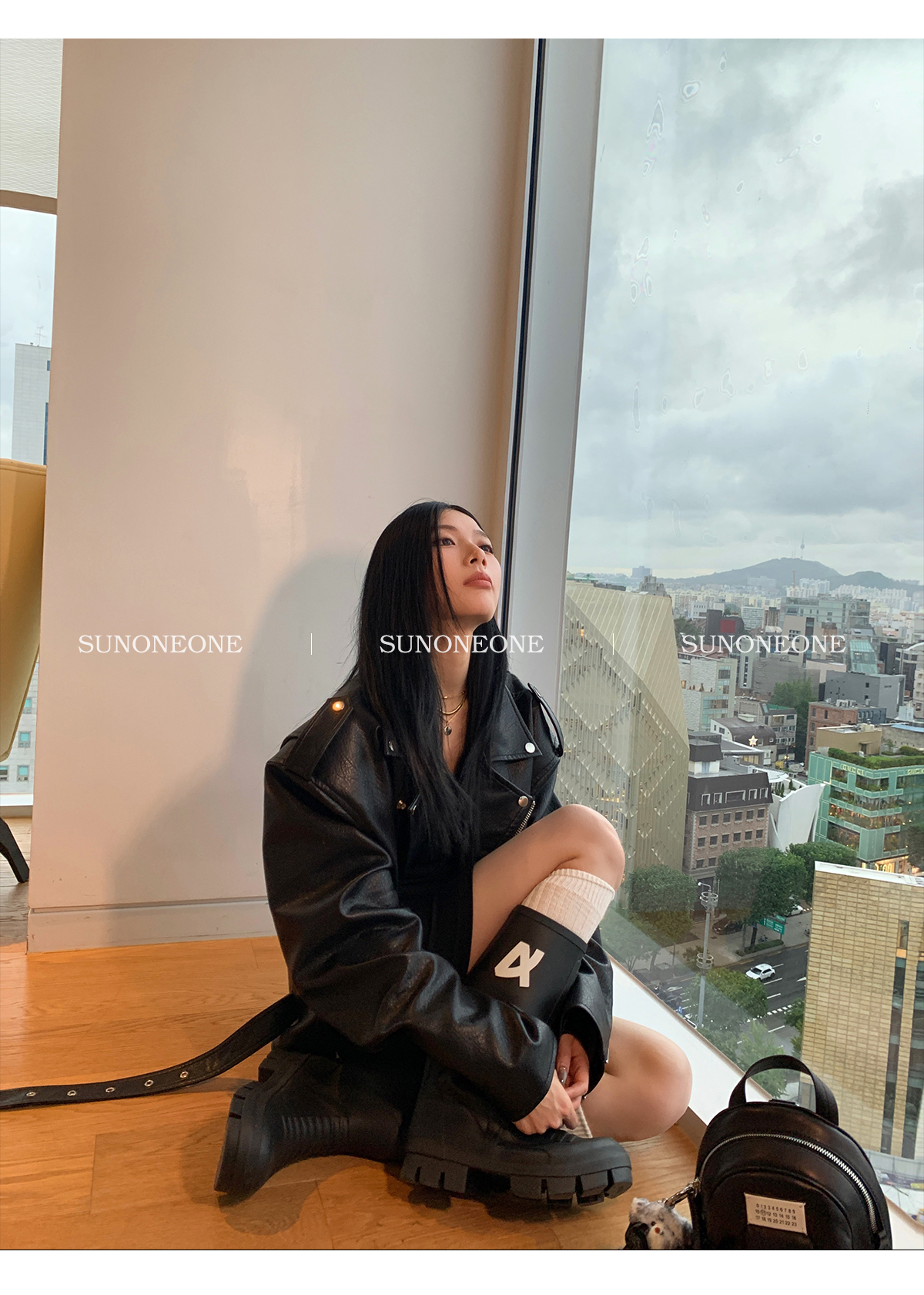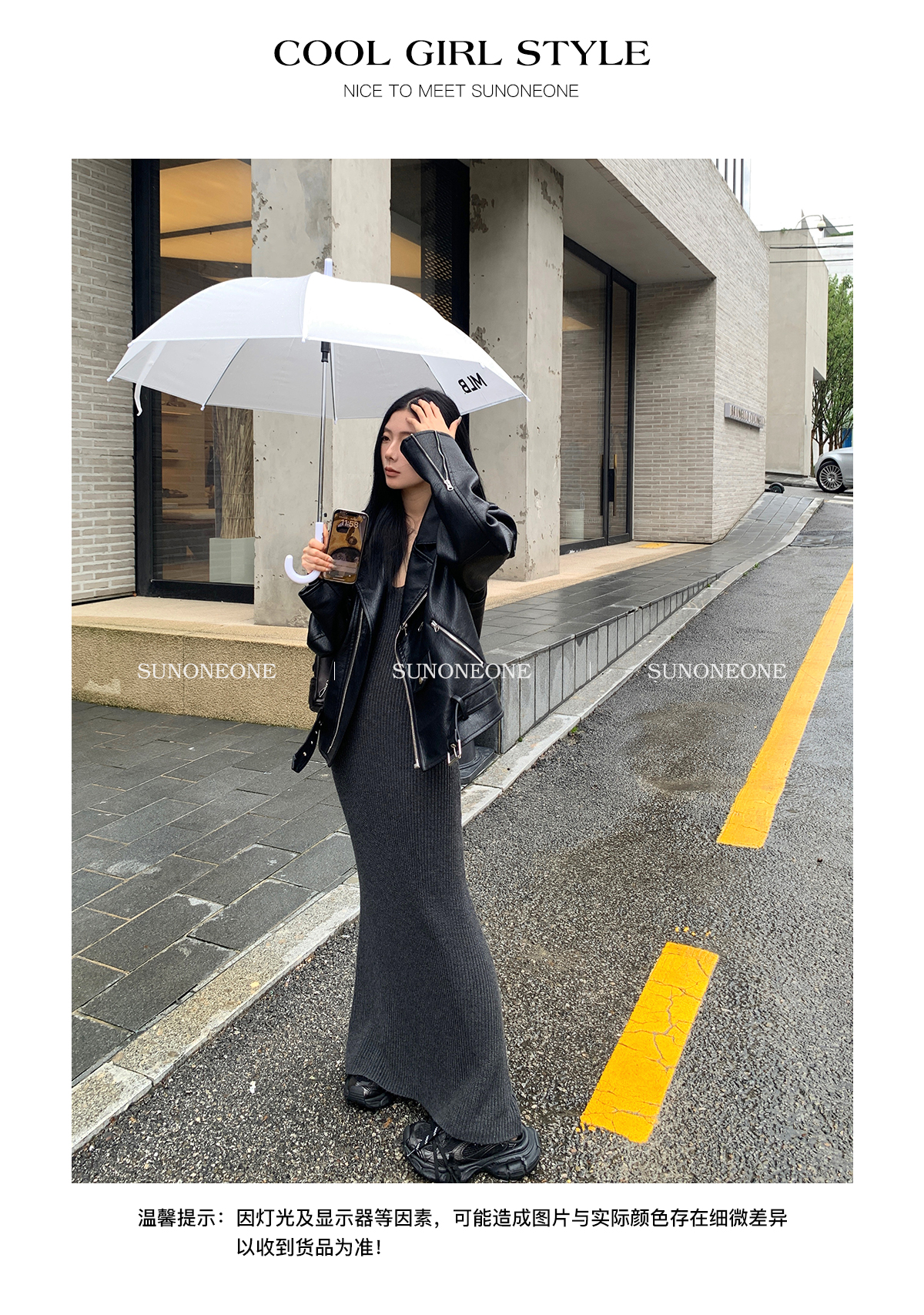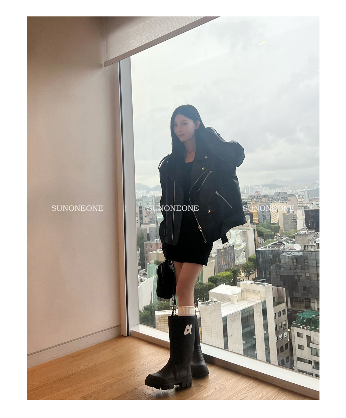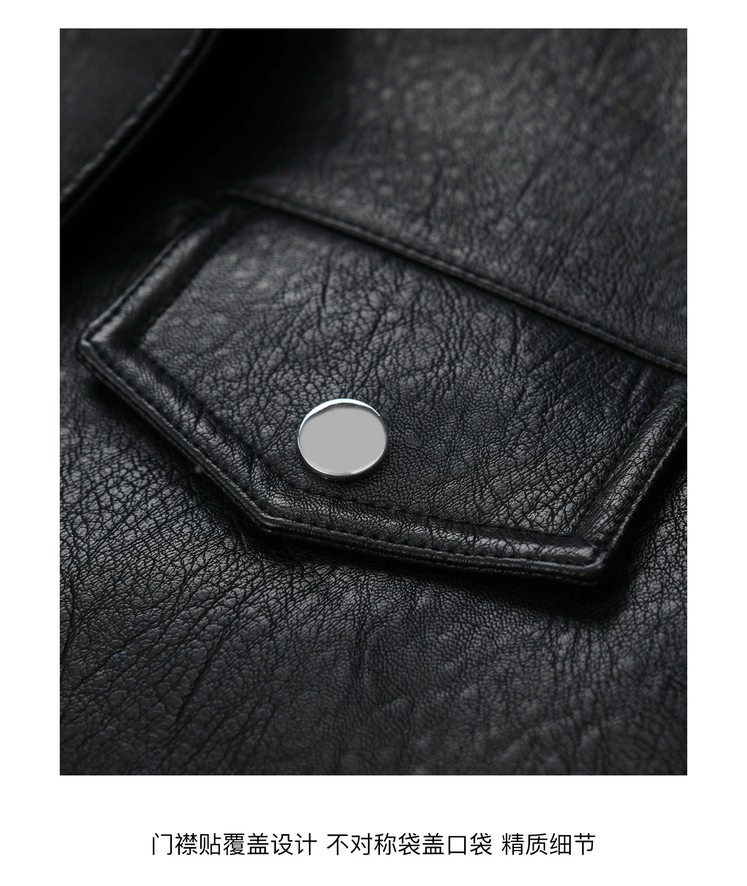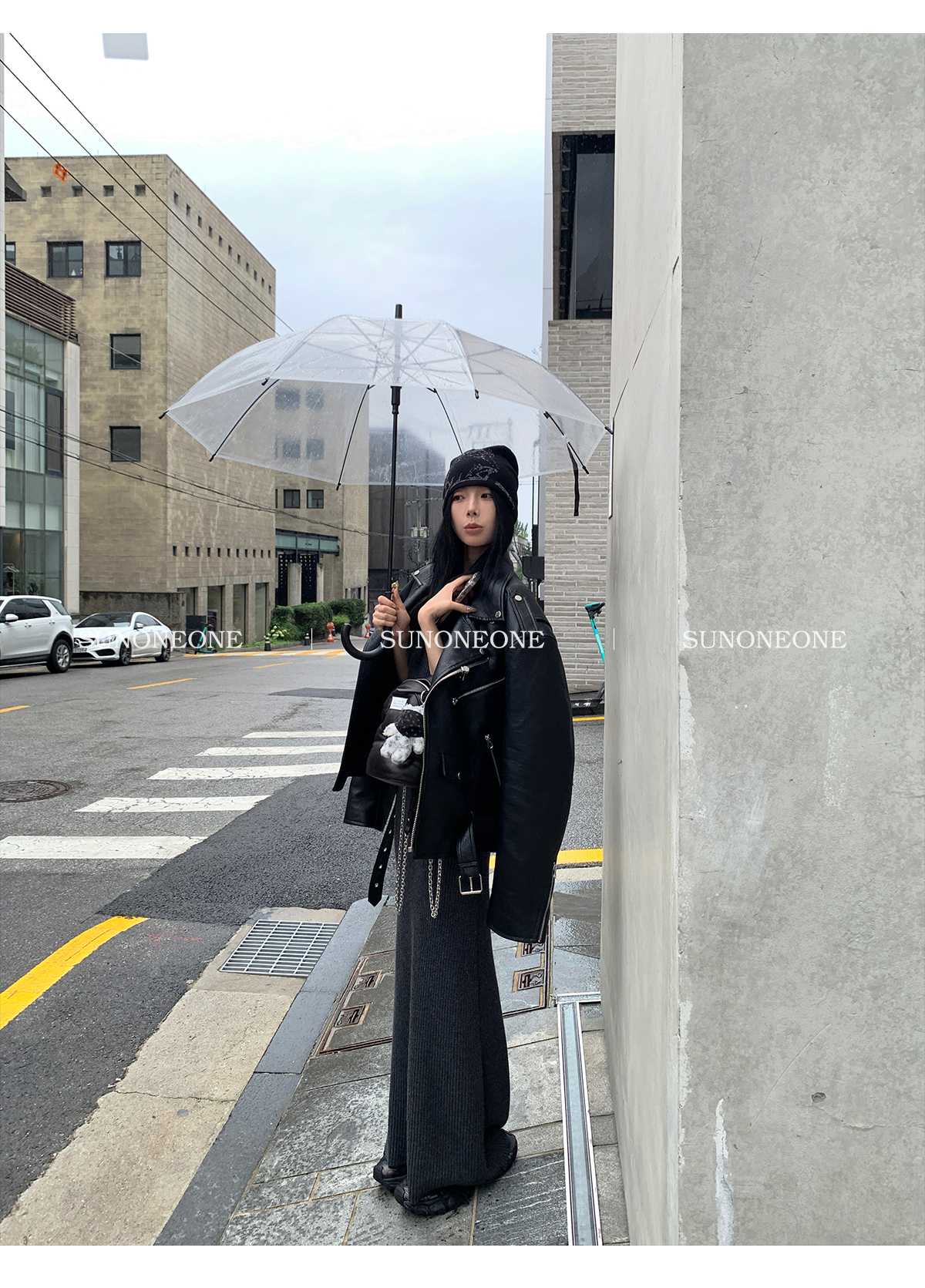 Sunoneone Heavy-Duty Pu Leather Motorcycle Jacket for Women, Autumn and Winter Vintage Black Leather Coat, Loose Long-Sleeve Slimming Top