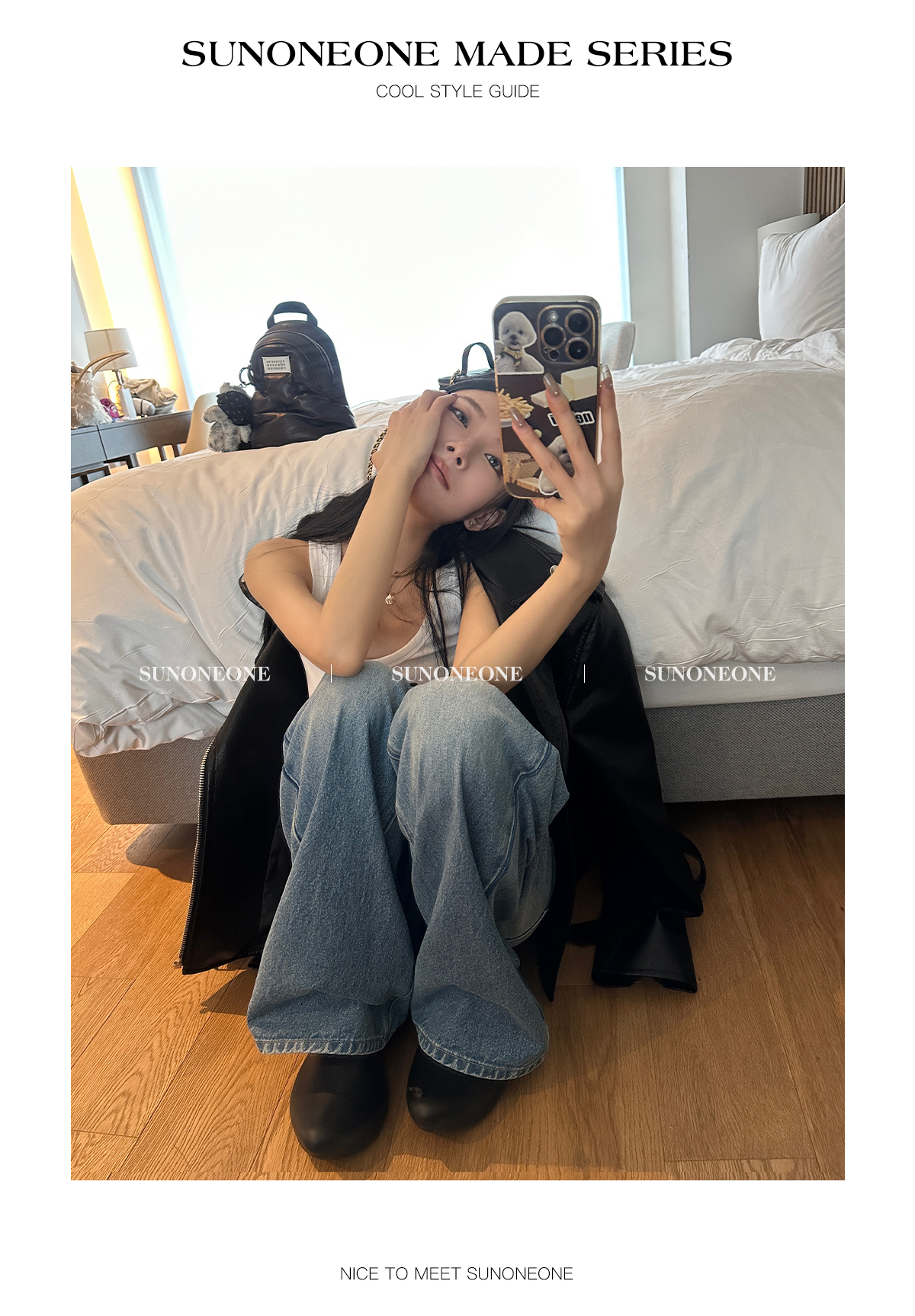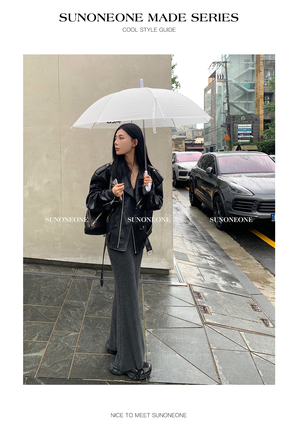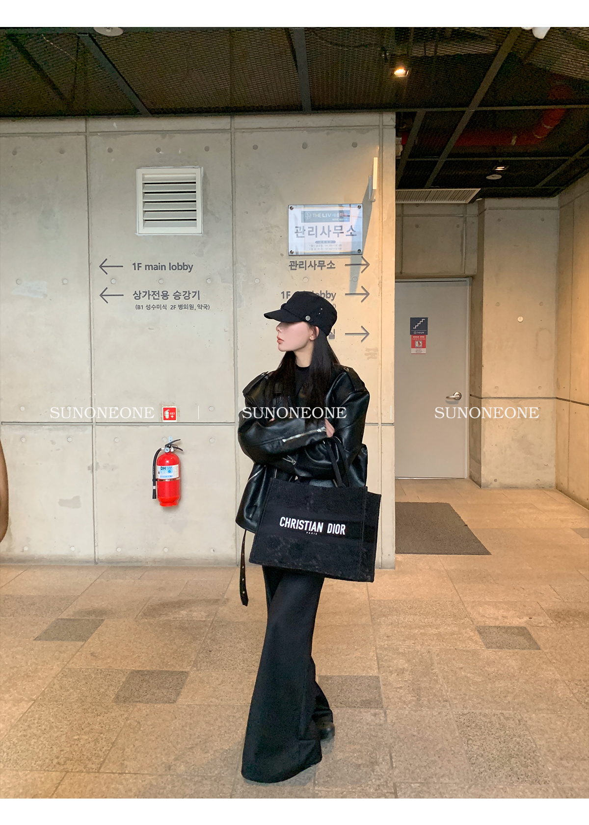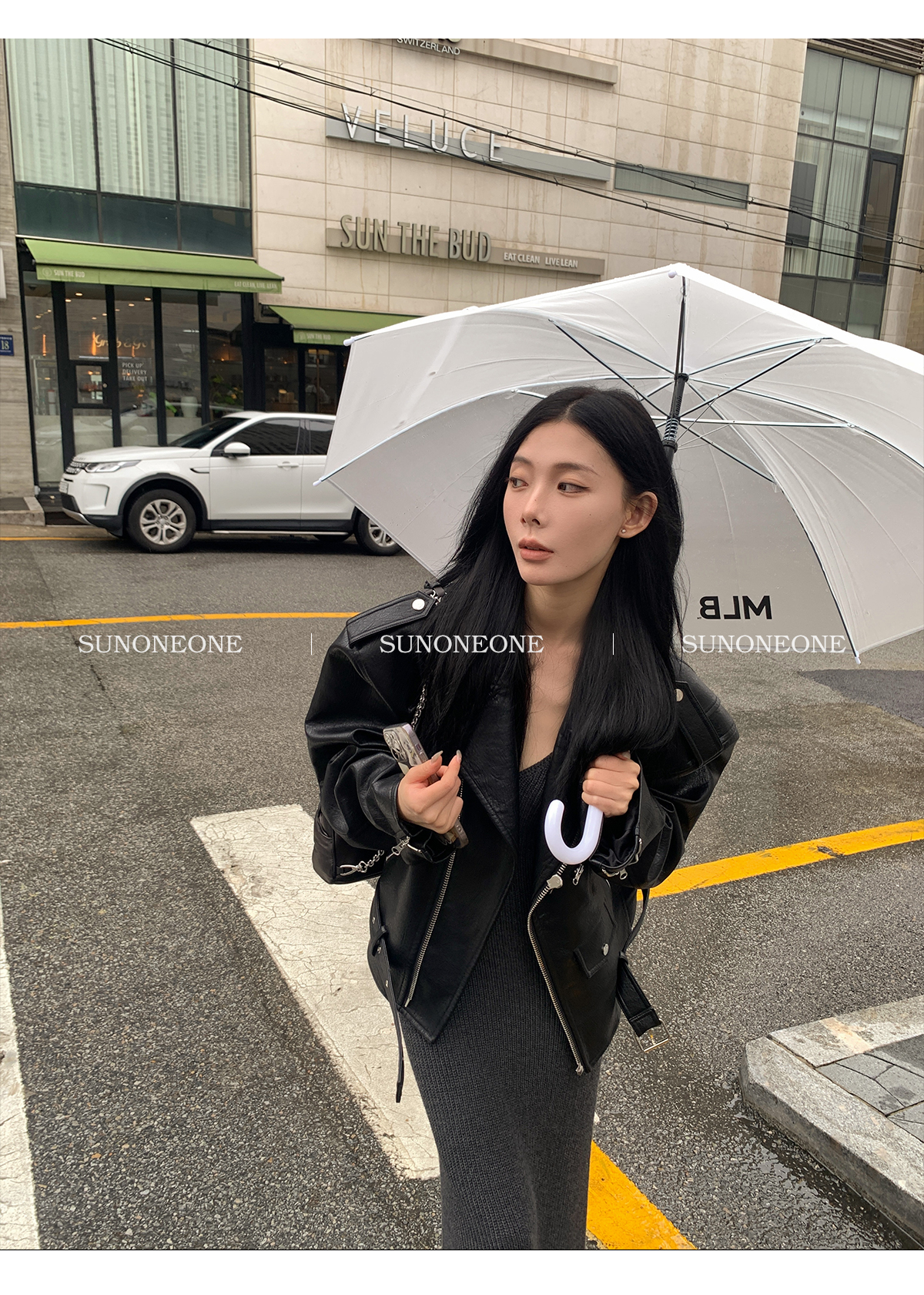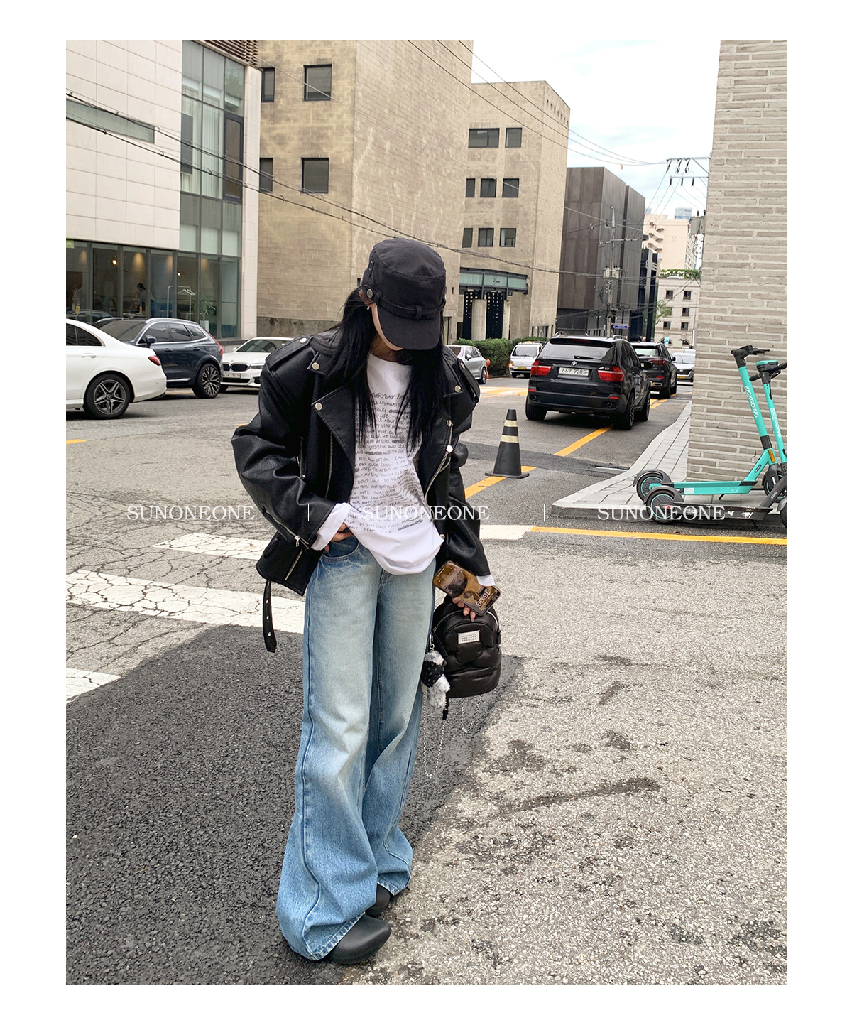 Sunoneone Heavy-Duty Pu Leather Motorcycle Jacket for Women, Autumn and Winter Vintage Black Leather Coat, Loose Long-Sleeve Slimming Top