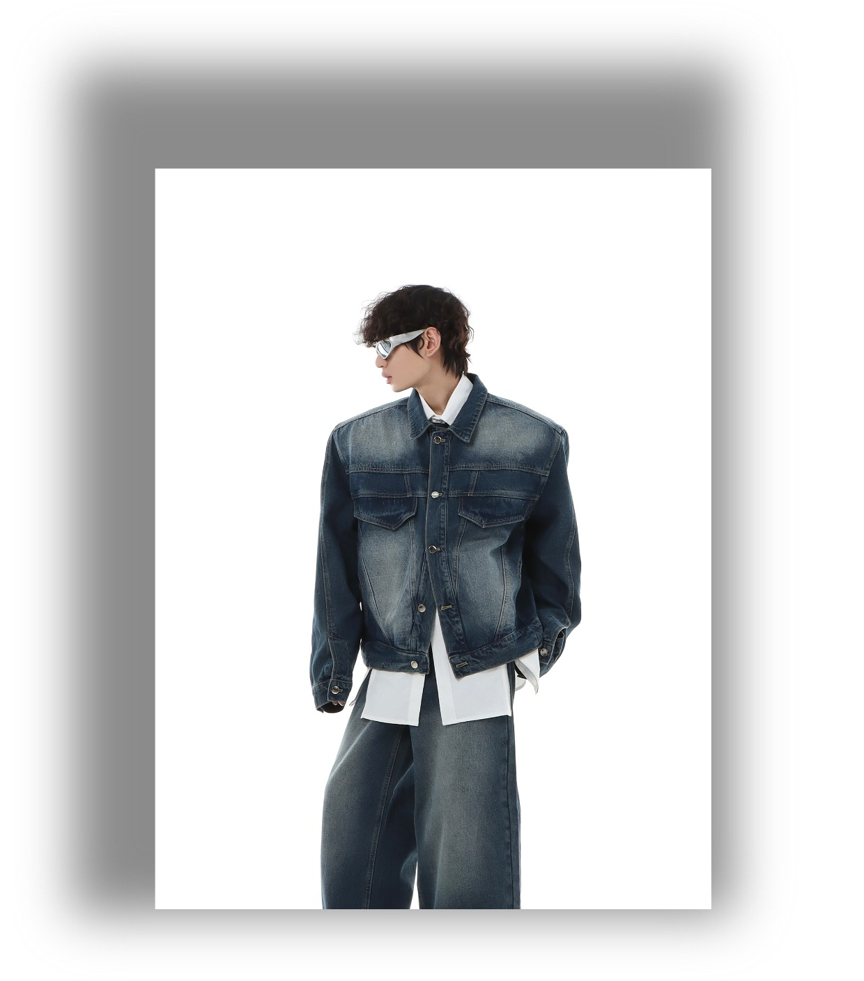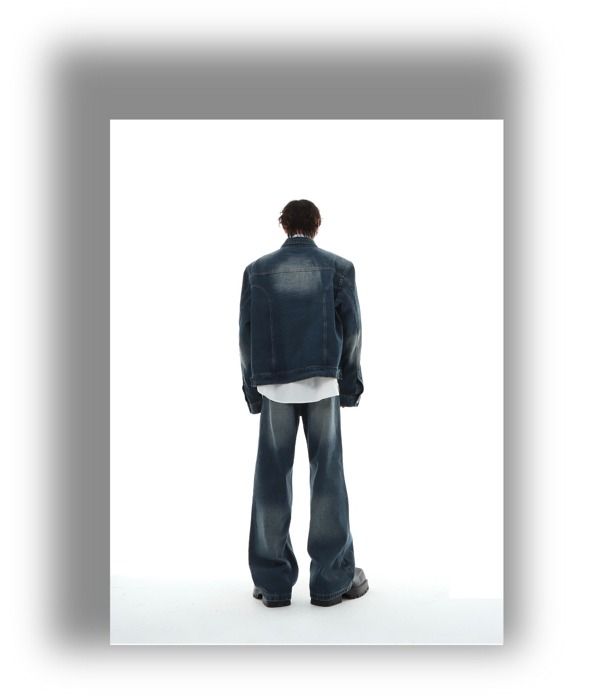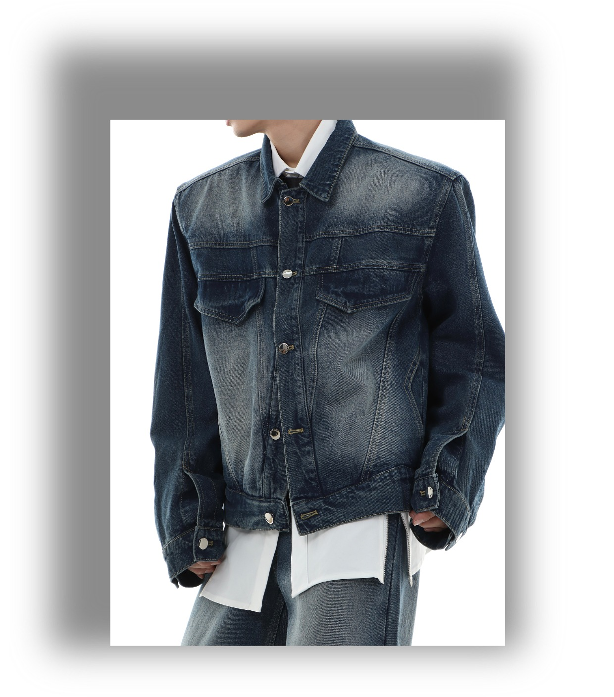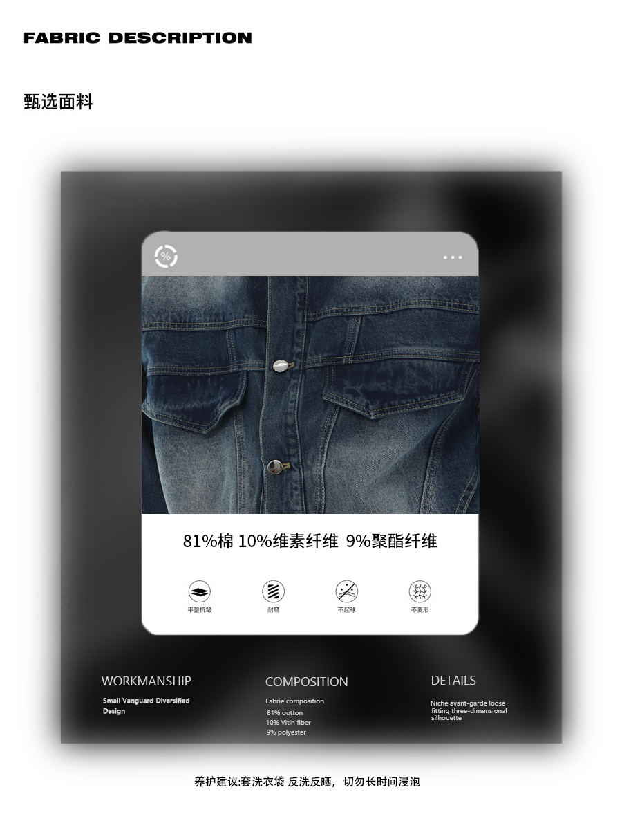 Marthenaut Niche Design Gradient Color Vintage Denim Jacket Washed and Distressed Loose Casual Style Set