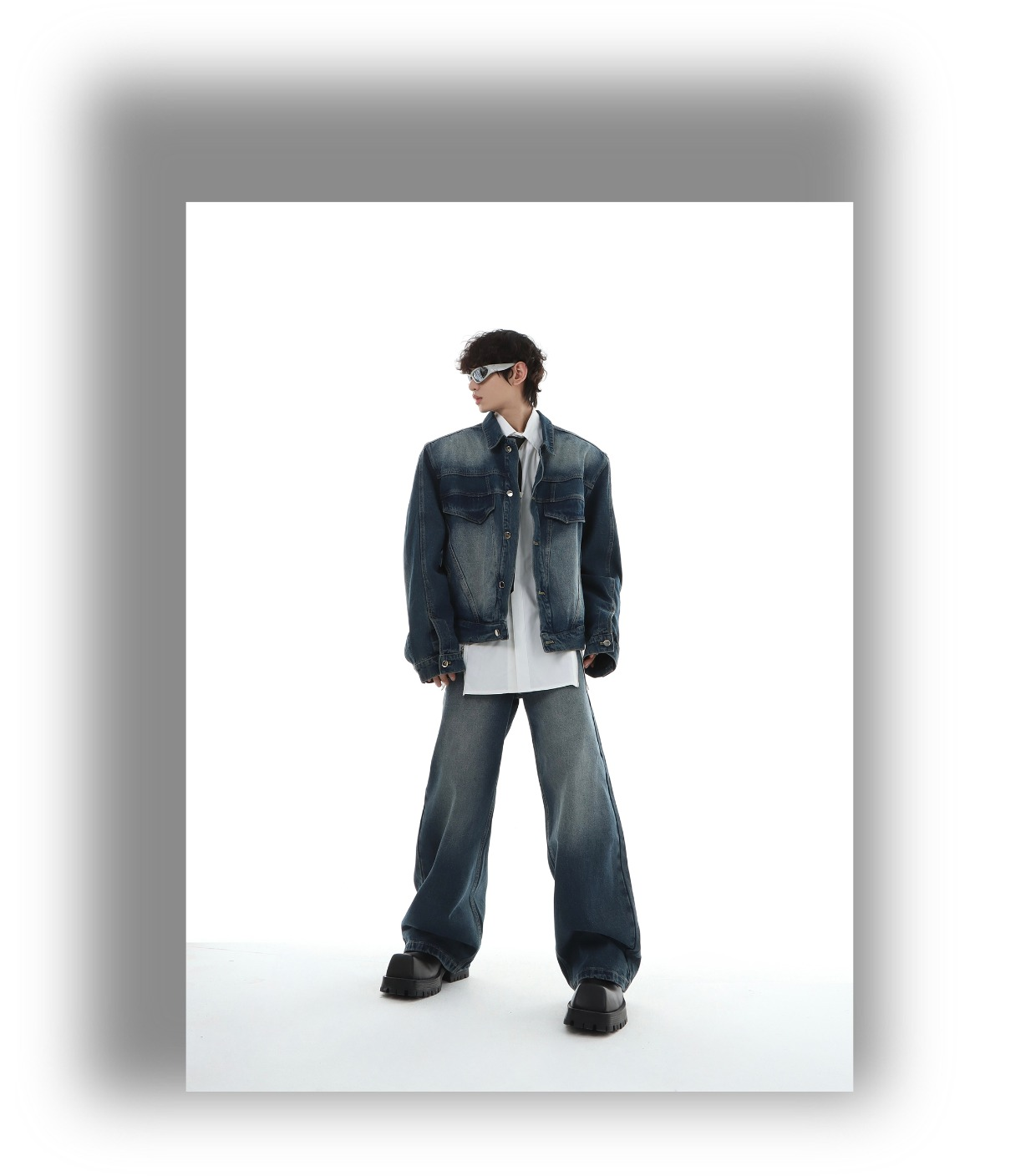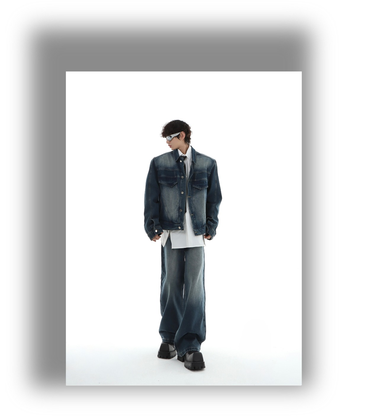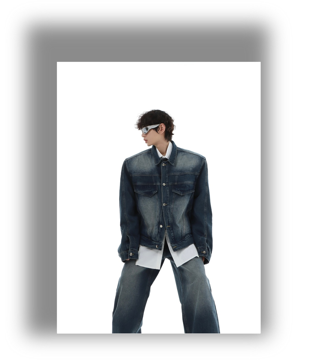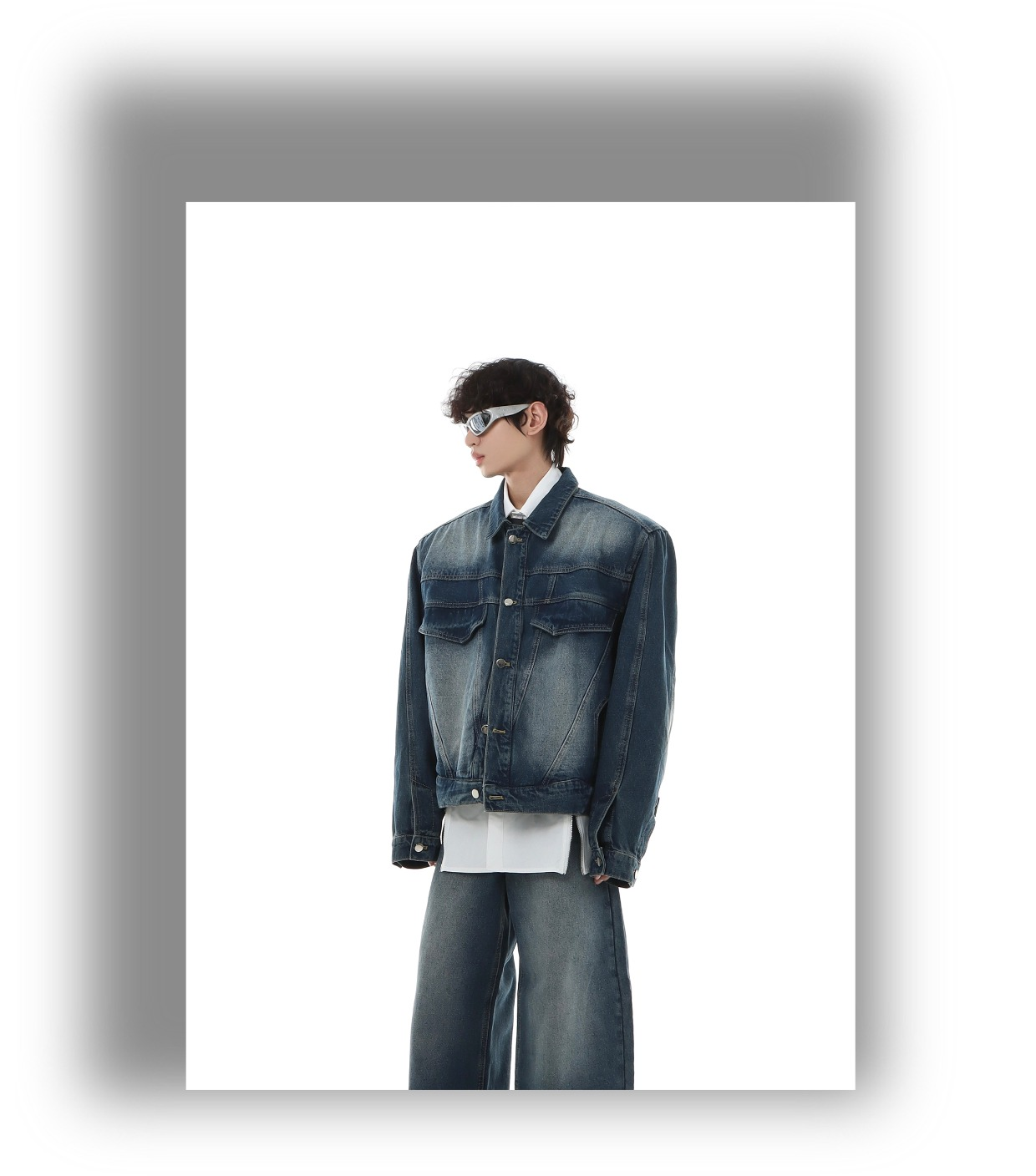 Marthenaut Niche Design Gradient Color Vintage Denim Jacket Washed and Distressed Loose Casual Style Set