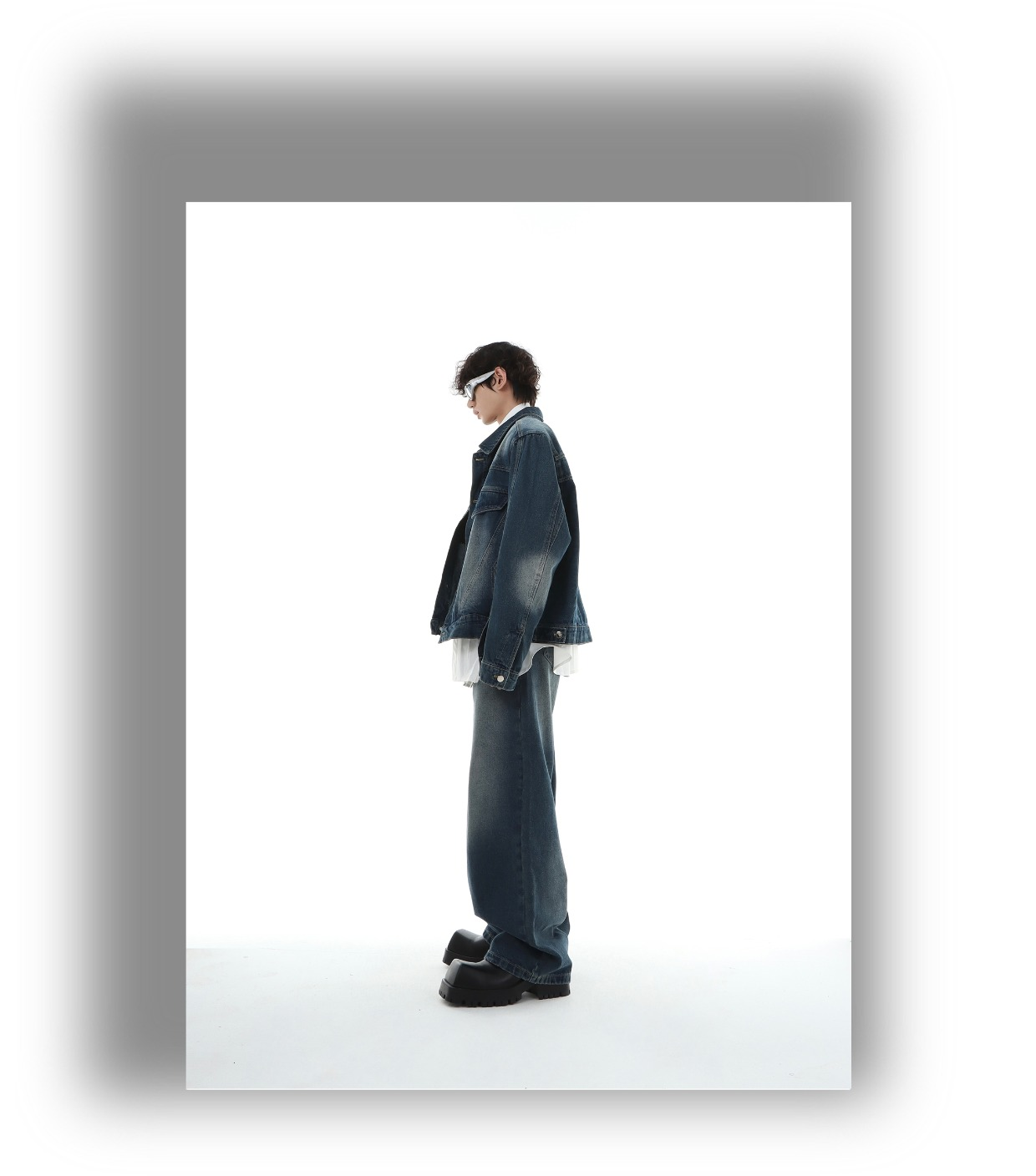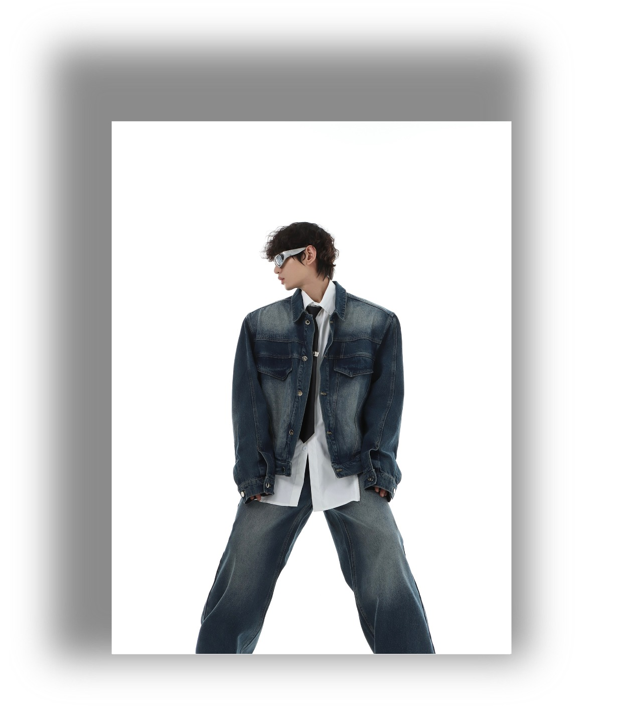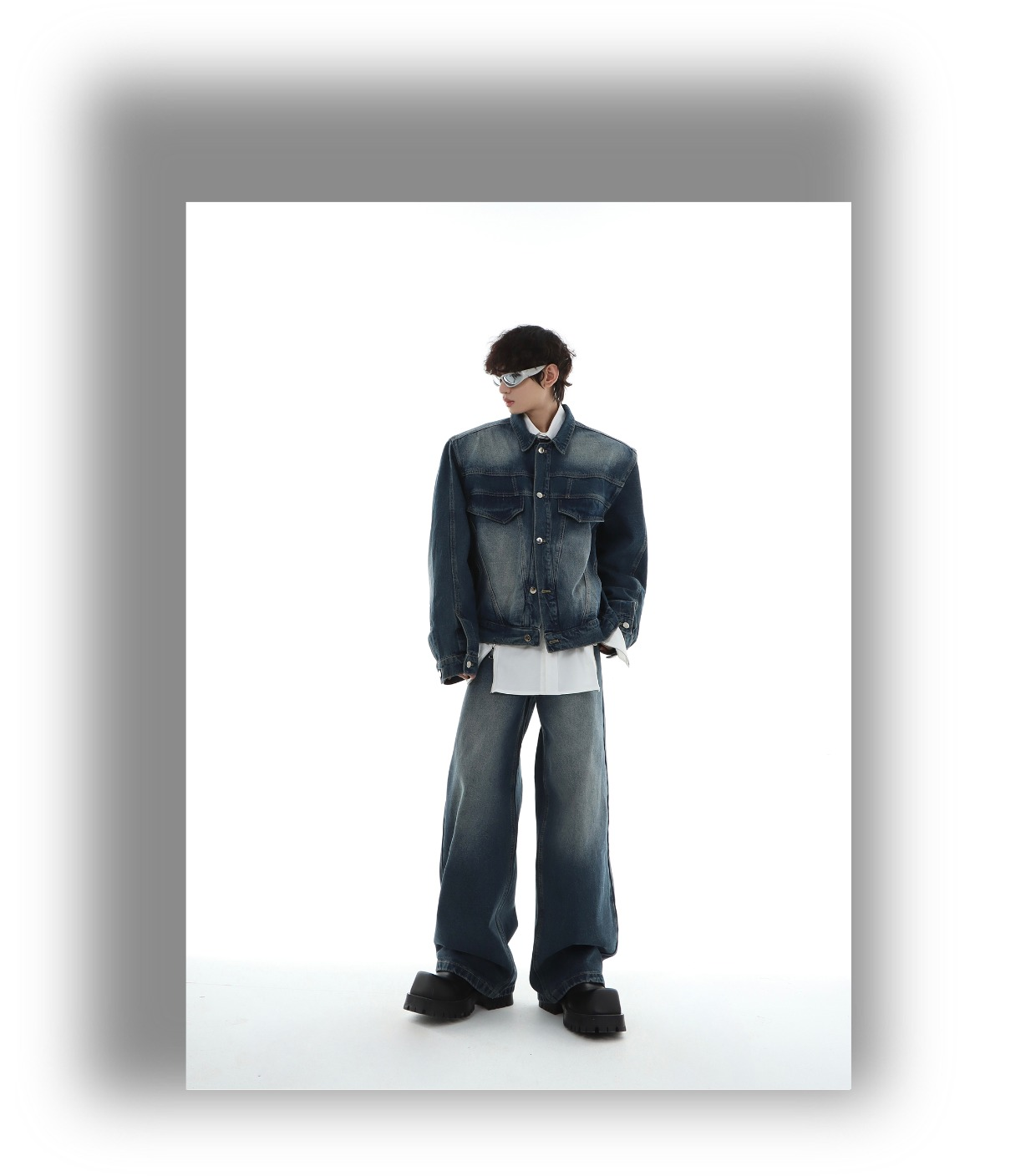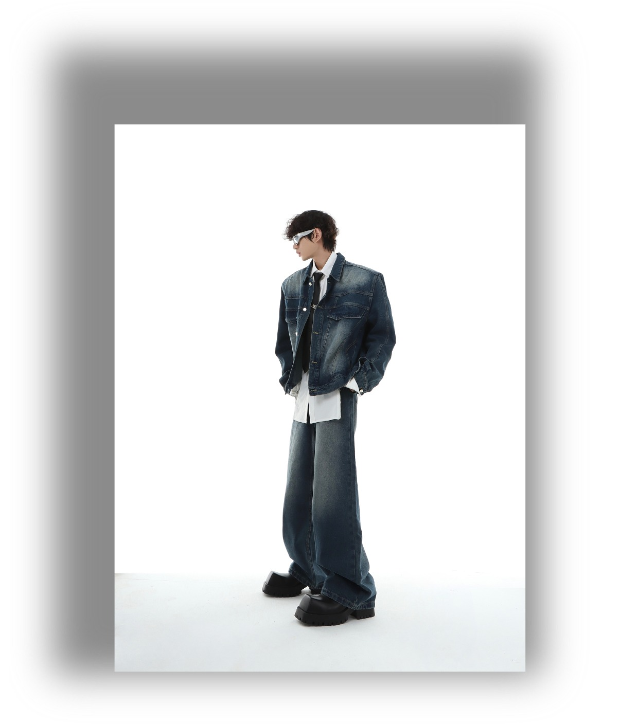 Marthenaut Niche Design Gradient Color Vintage Denim Jacket Washed and Distressed Loose Casual Style Set
