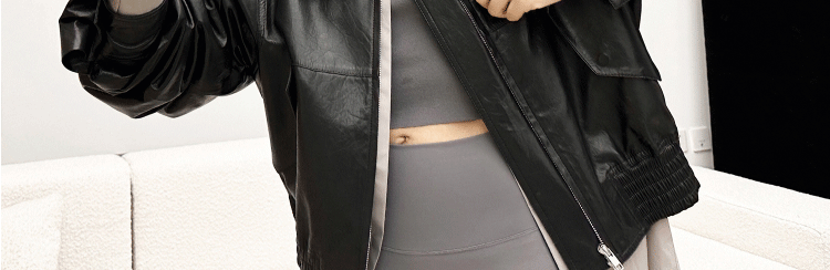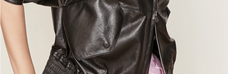 2024 Spring and Autumn New Sheepskin Fashionable Double Zipper Shirt-Style Cuff Design Leather Jacket Loose Casual Coat