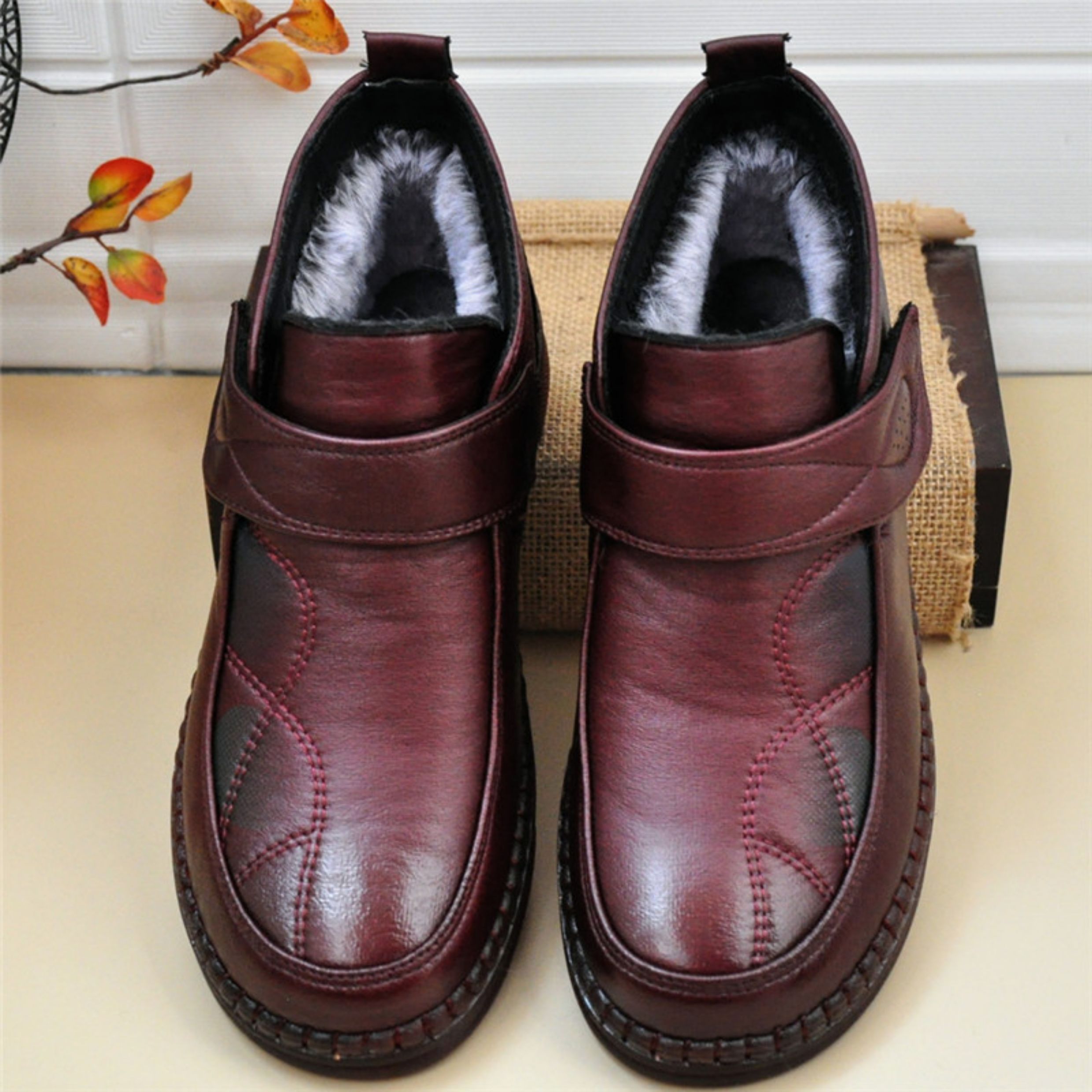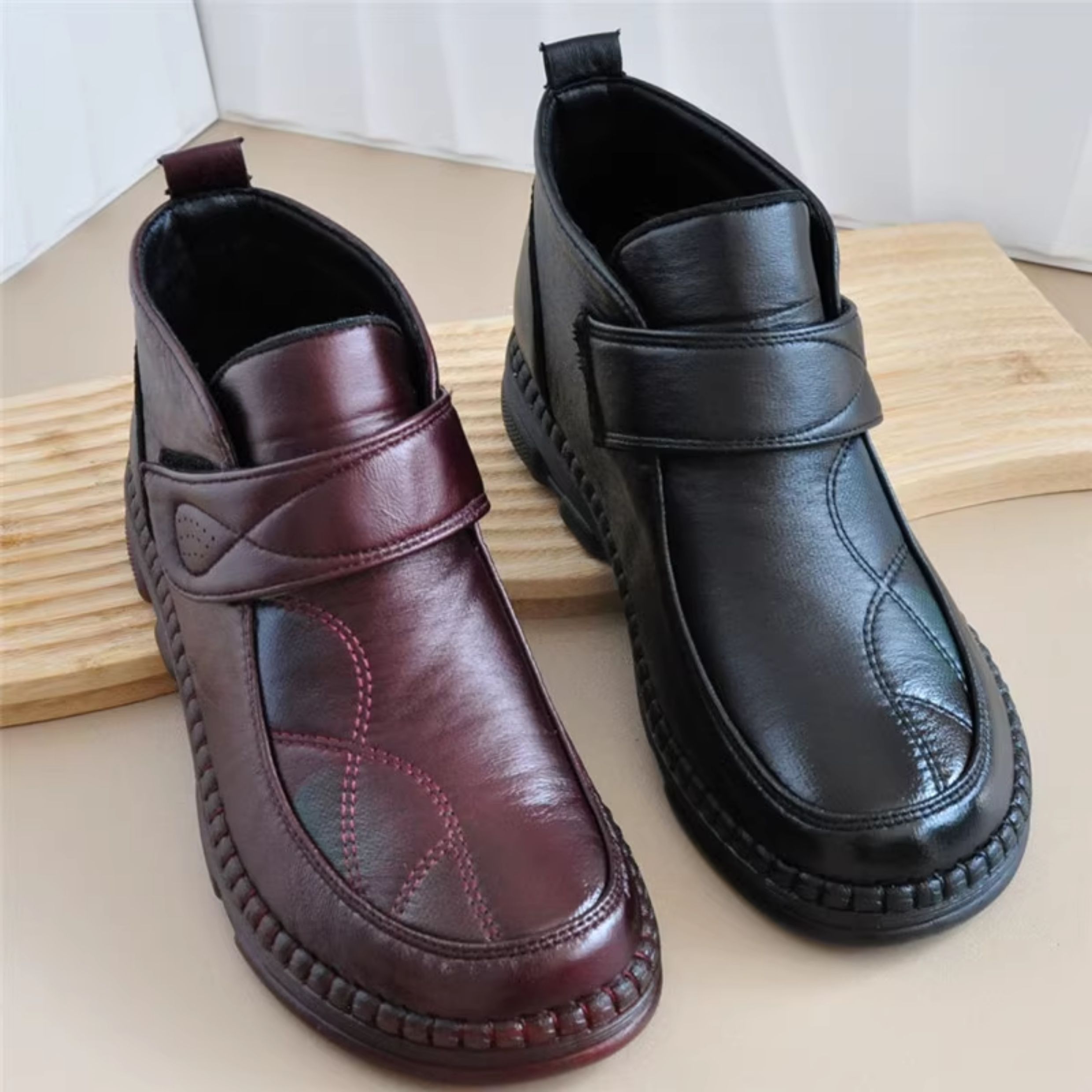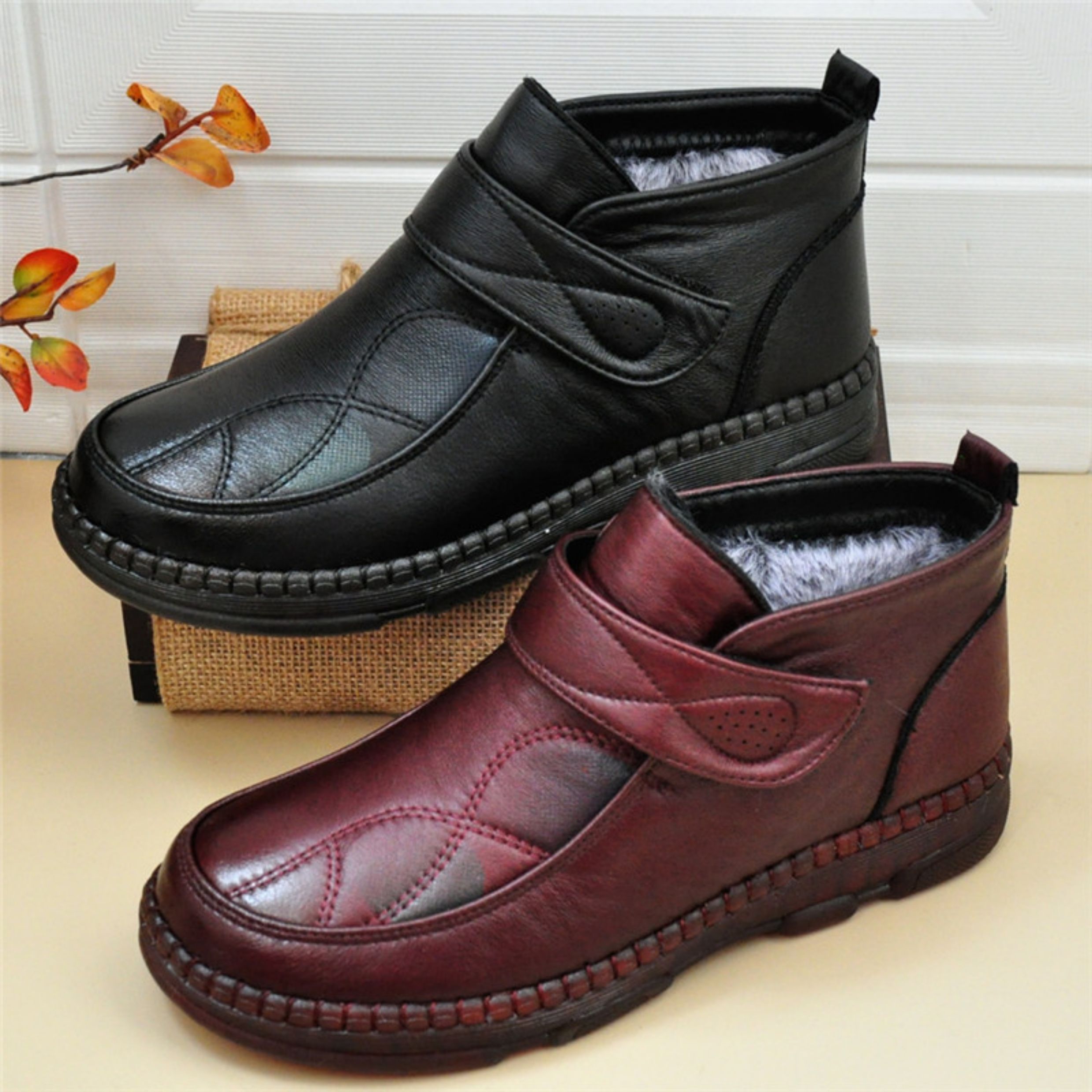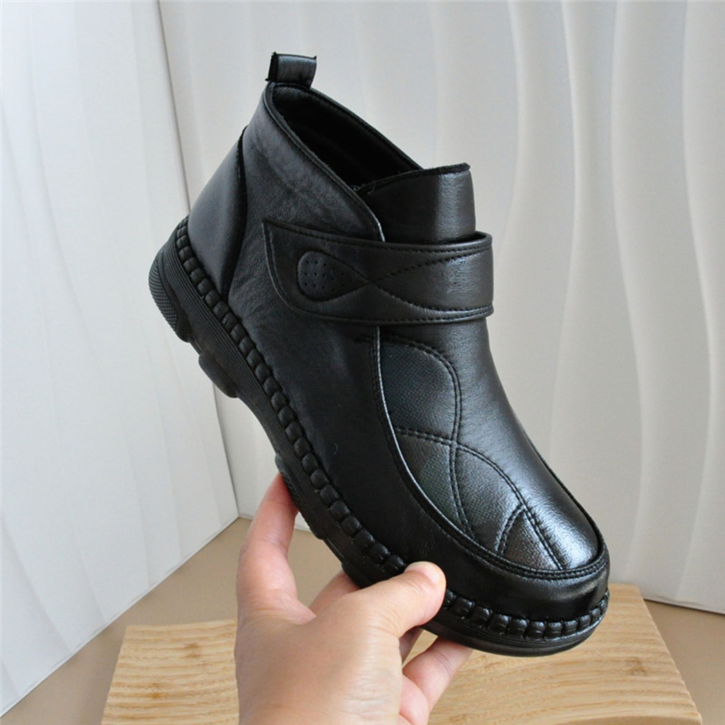 Early Winter Old Beijing Style Women's Cotton Shoes with Extra Fleece, Thin Fleece High-Top Women's Short Boots, Round Toe, Flat Sole, Casual Rubber Sole, Black