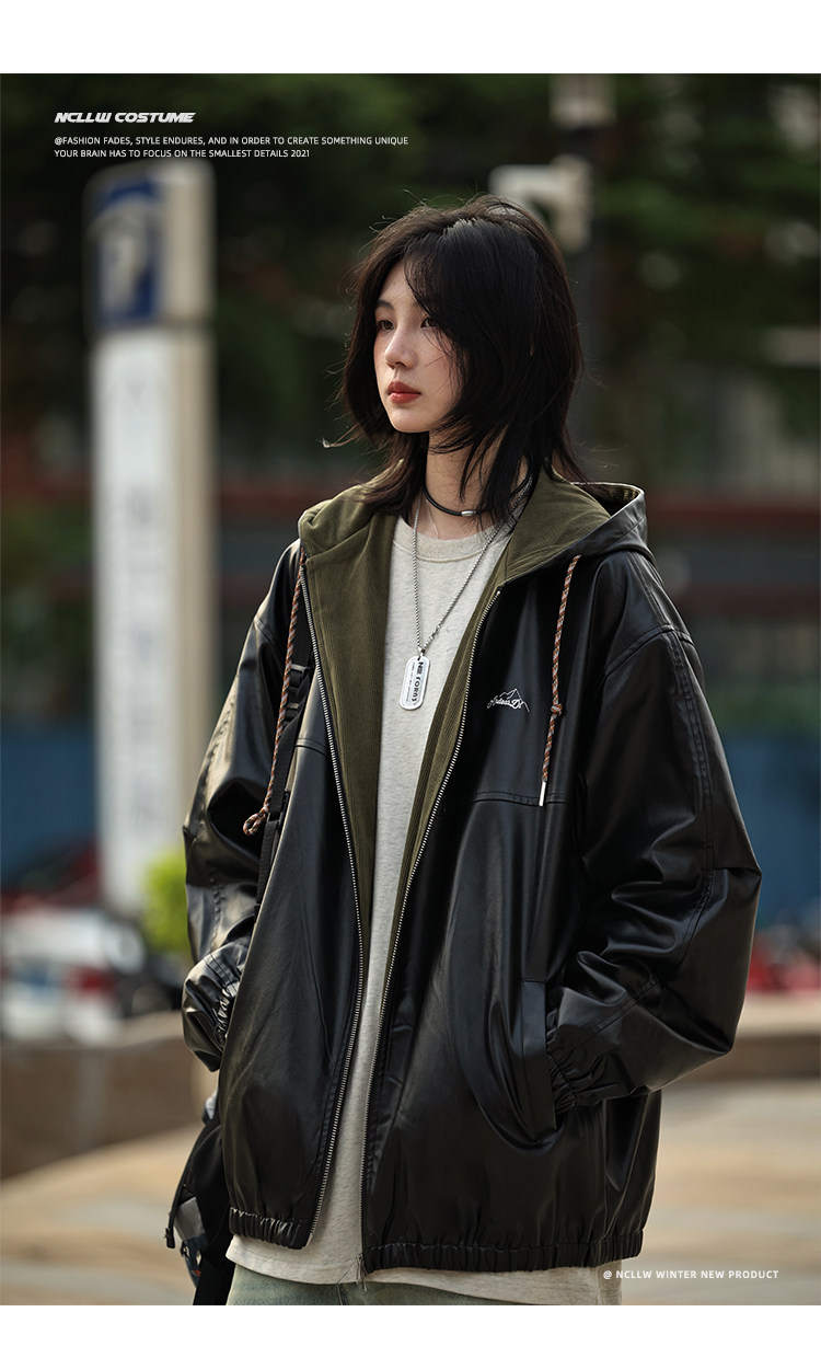 Your First Love, Lao Wang, Leather Jacket for Men, Autumn and Winter Pu Leather New Style American Retro Motorcycle Jacket Trendy Hooded Ins