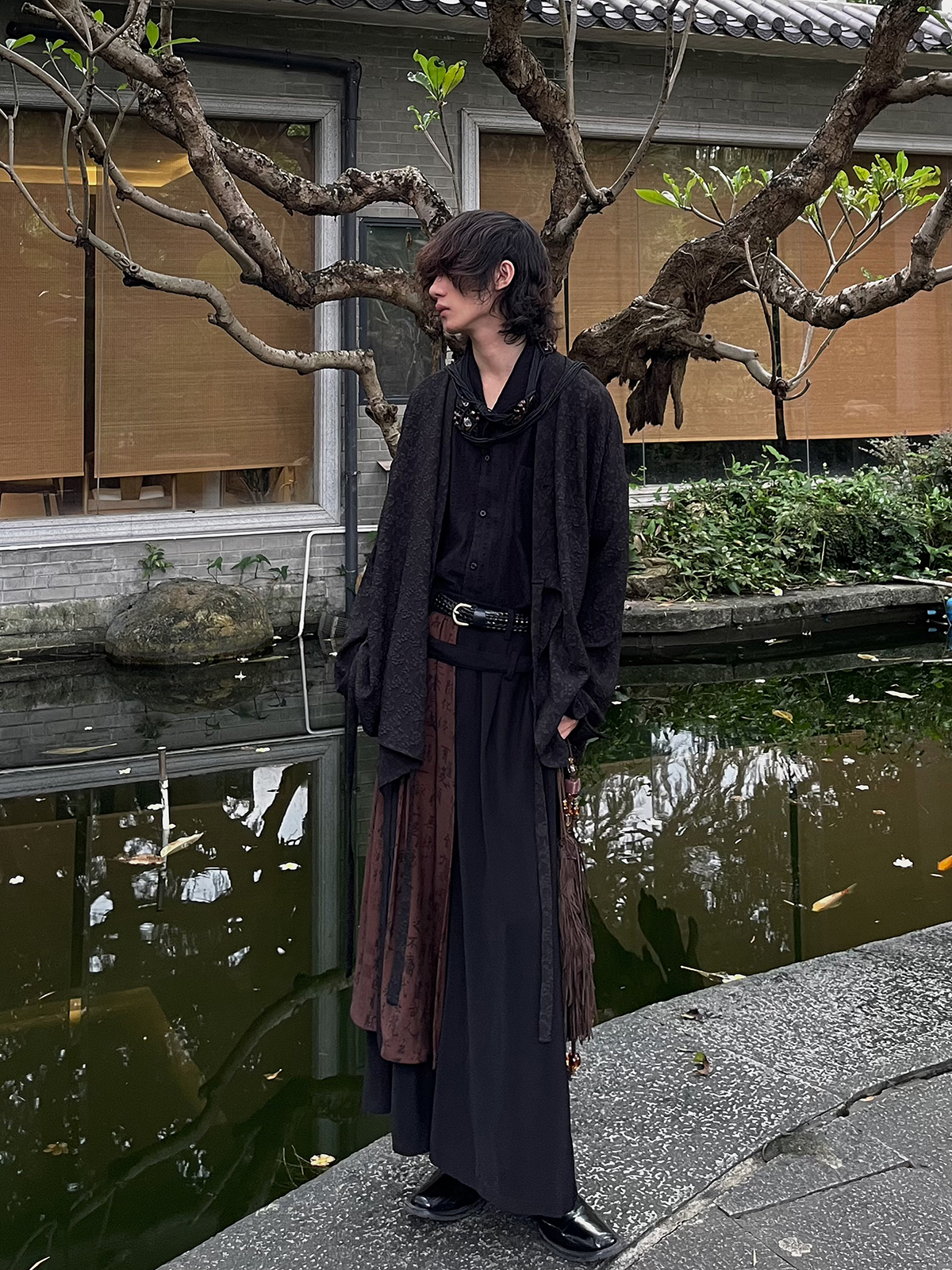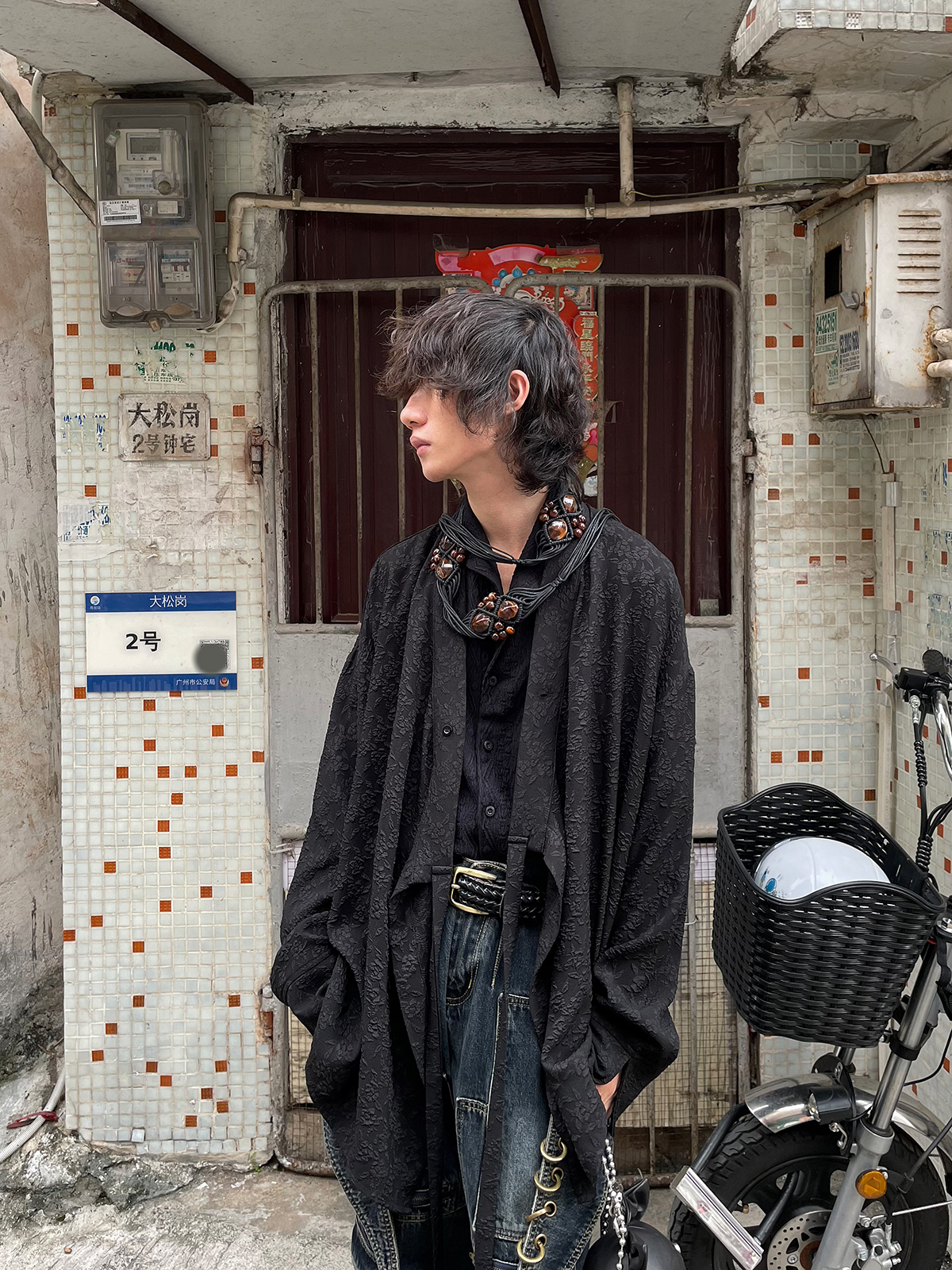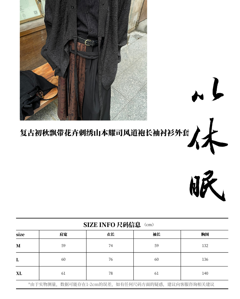 Sleepwear Retro Japanese-Style Ribbon Floral Embroidery Yohji Yamamoto Style New Chinese-Style Robe Long-Sleeved Shirt Jacket