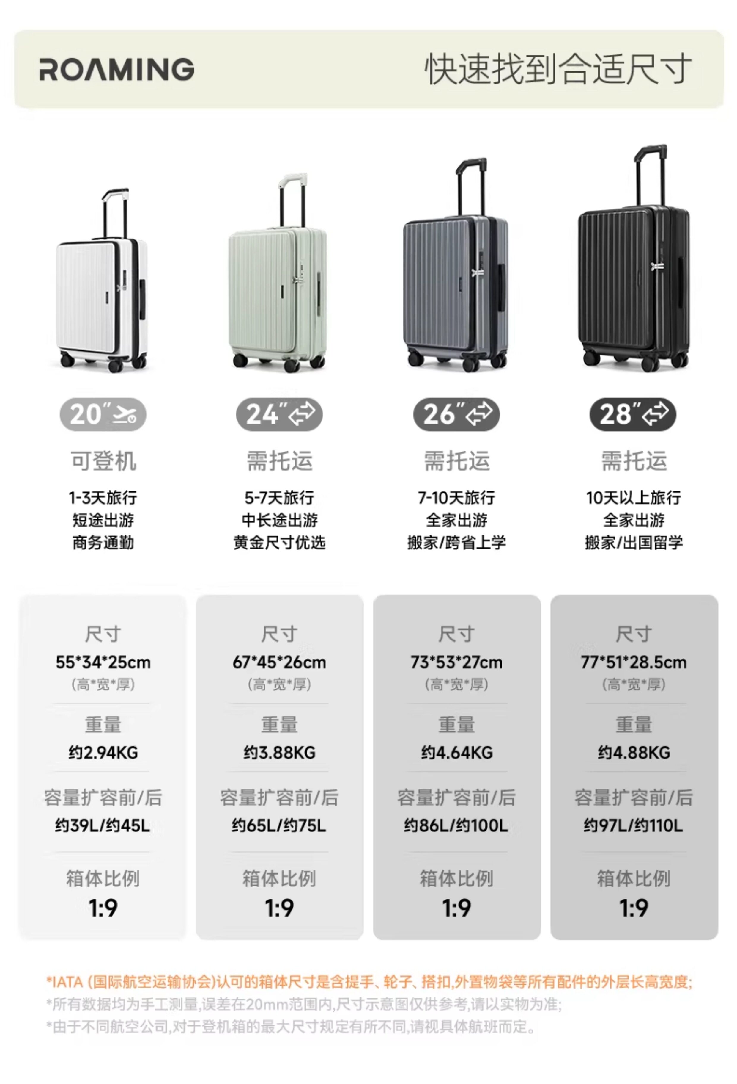 Roaming New Side-Opening Suitcase Expandable Trolley Case Zipper 20-Inch 24-Inch Travel Suitcase Carry-On Luggage for Women and Men