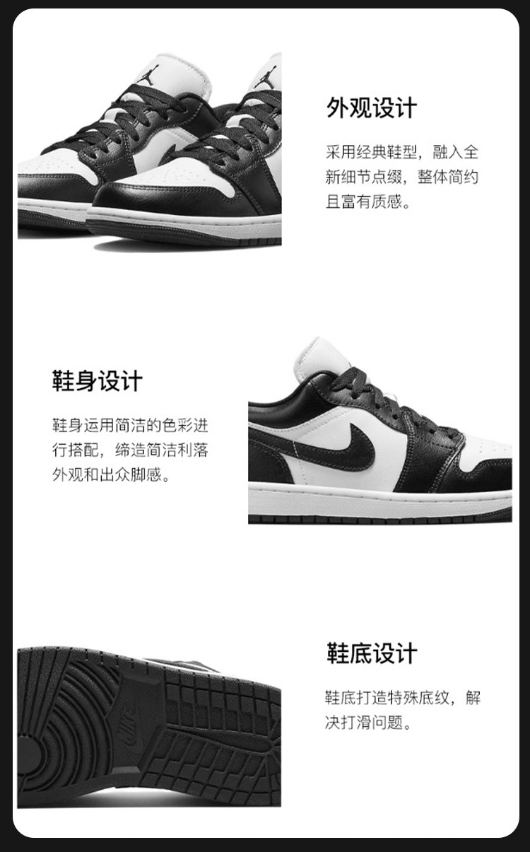 Huangcheng Sports Air Jordan Aj1Low Panda Low-Top Retro Basketball Shoes Black and White Dc0774-101