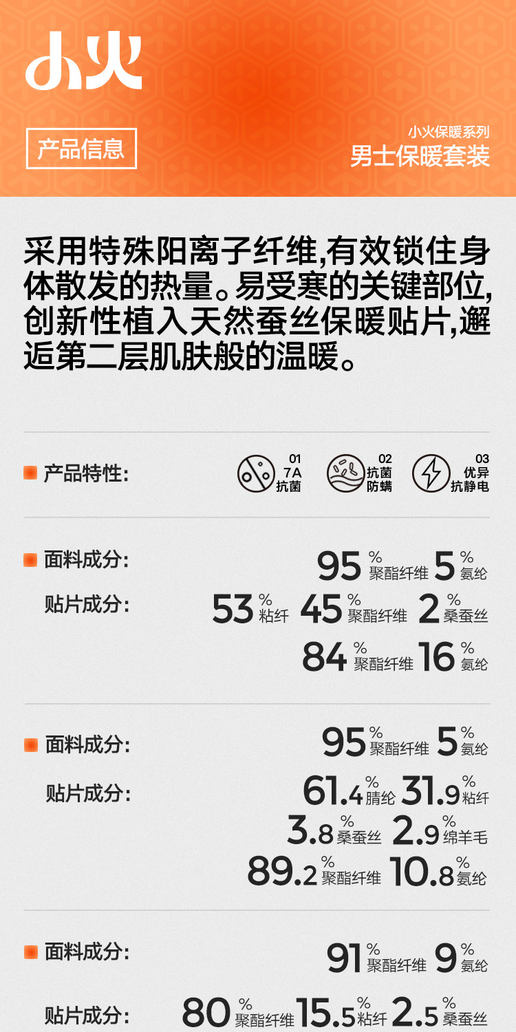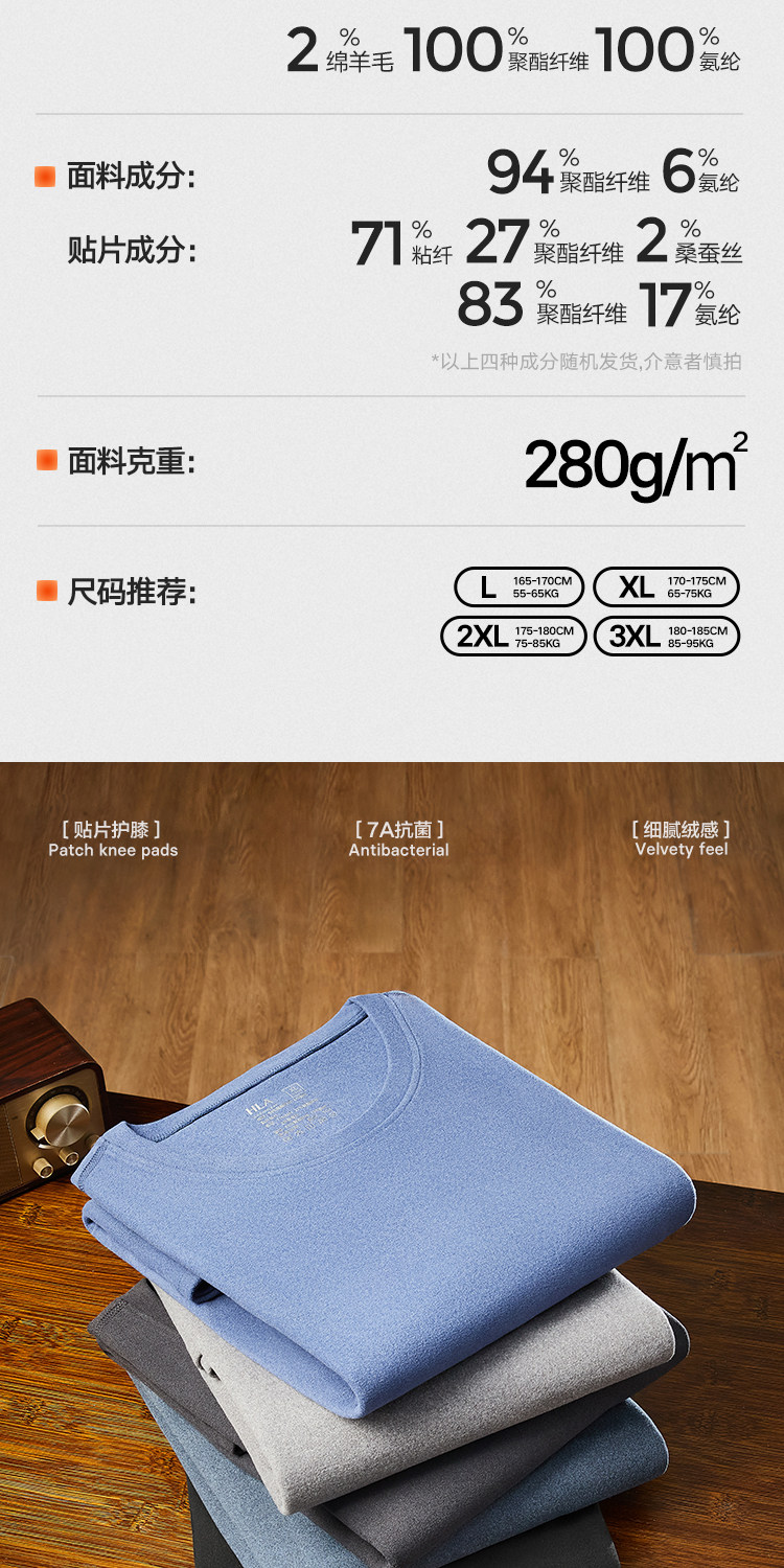 Hla/Heilan House Men's 280g Cationic 7A Antibacterial Thermal Underwear Set Thickened Mulberry Silk Autumn Clothes and Pants
