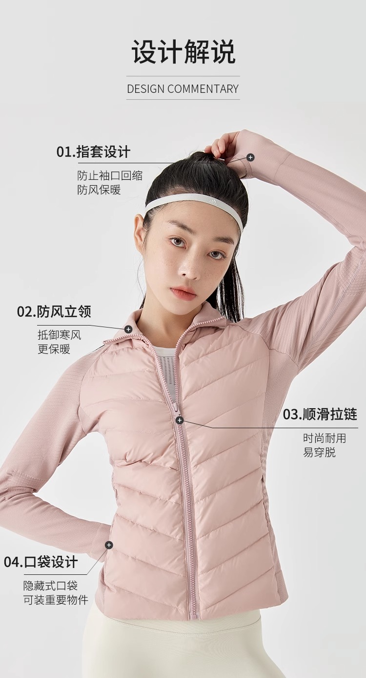 Professional Sports down Jacket for Women, Running, Outdoor, Lightweight, Warm, Autumn and Winter Yoga Clothing, Fitness Top, Jacket