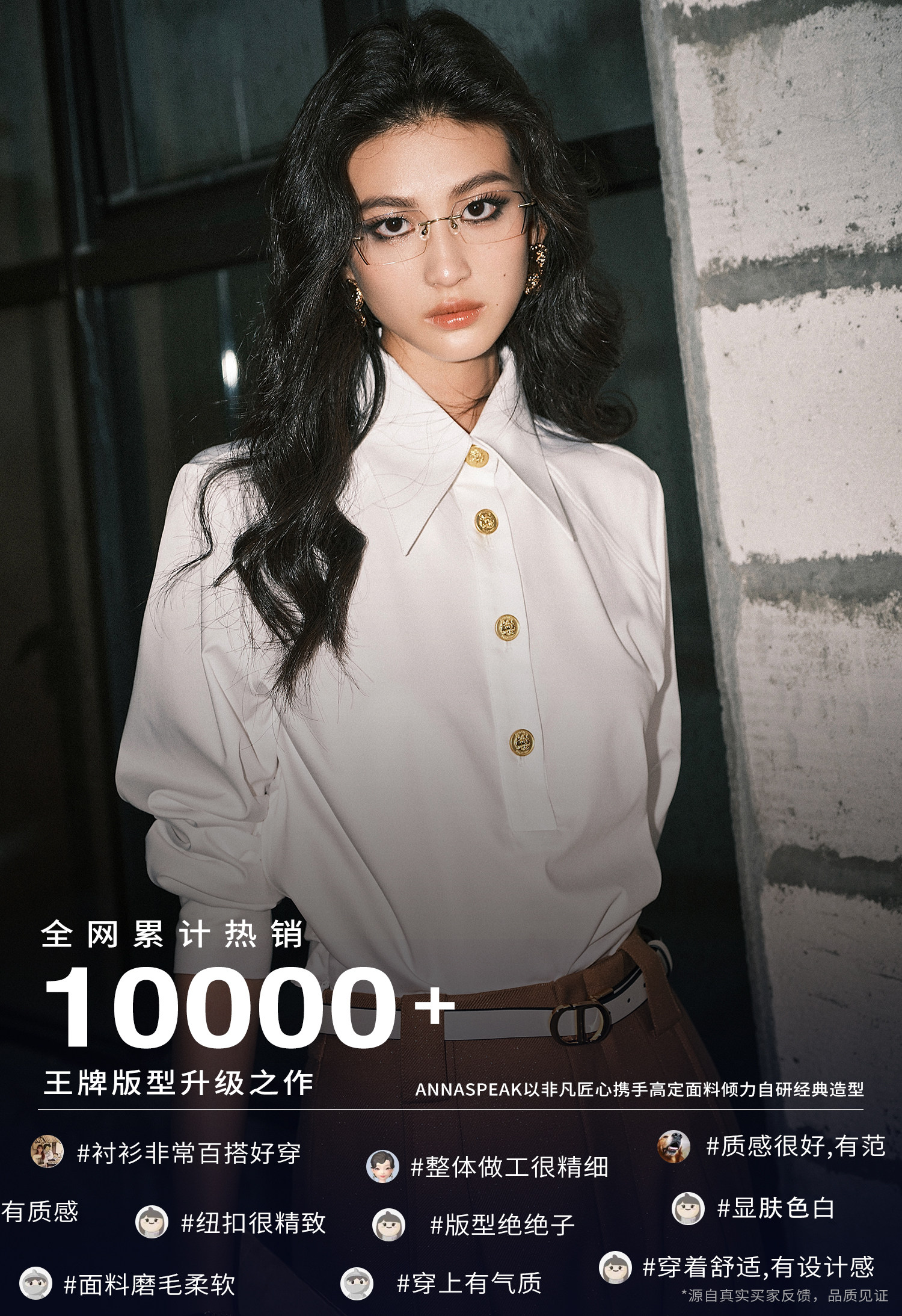 In Stock/Annaspeak Has Sold over Ten Thousand Pieces, Nazha's Same Style Bamboo Fiber Long-Staple Cotton Bias-Cut Versatile White Shirt for Women
