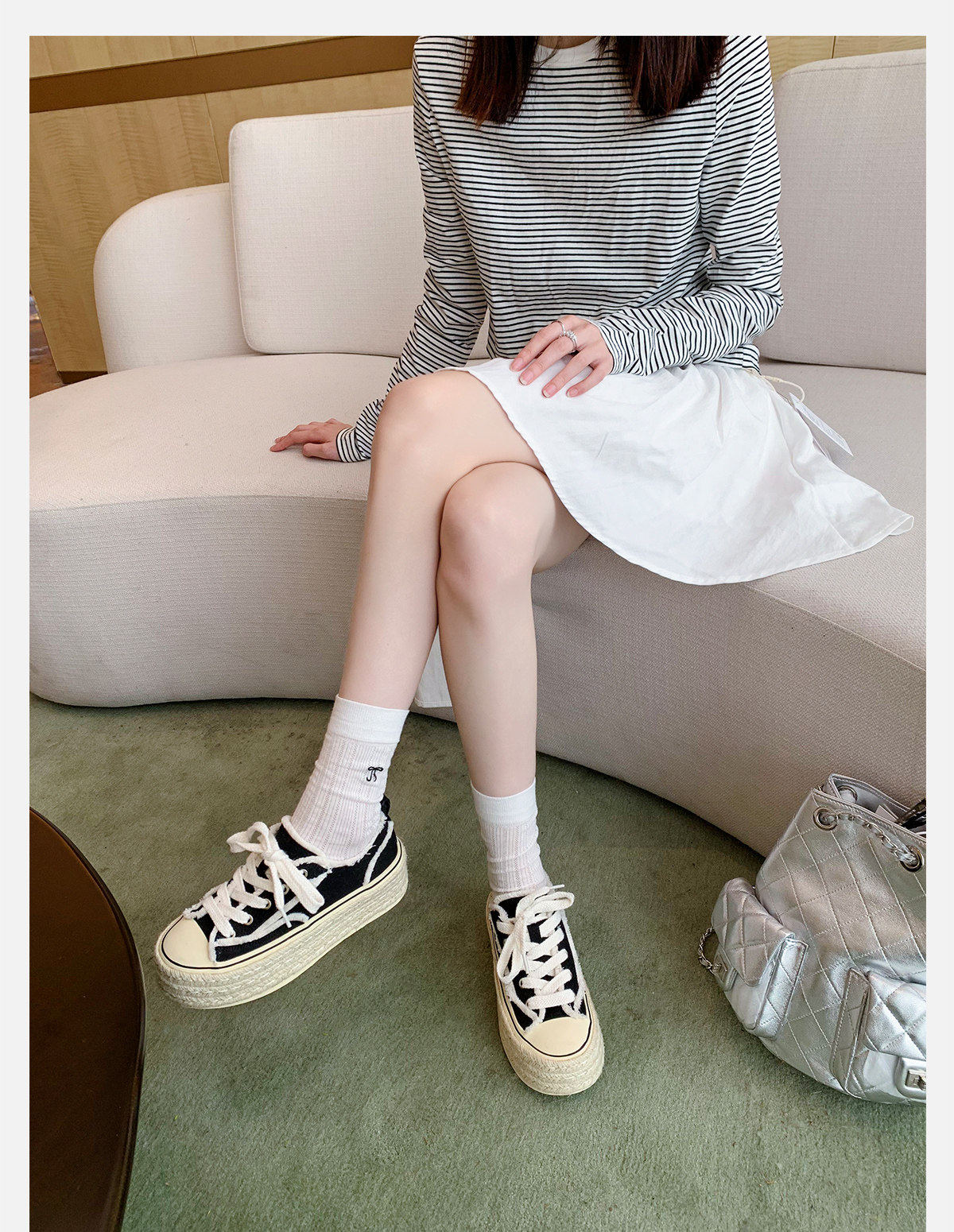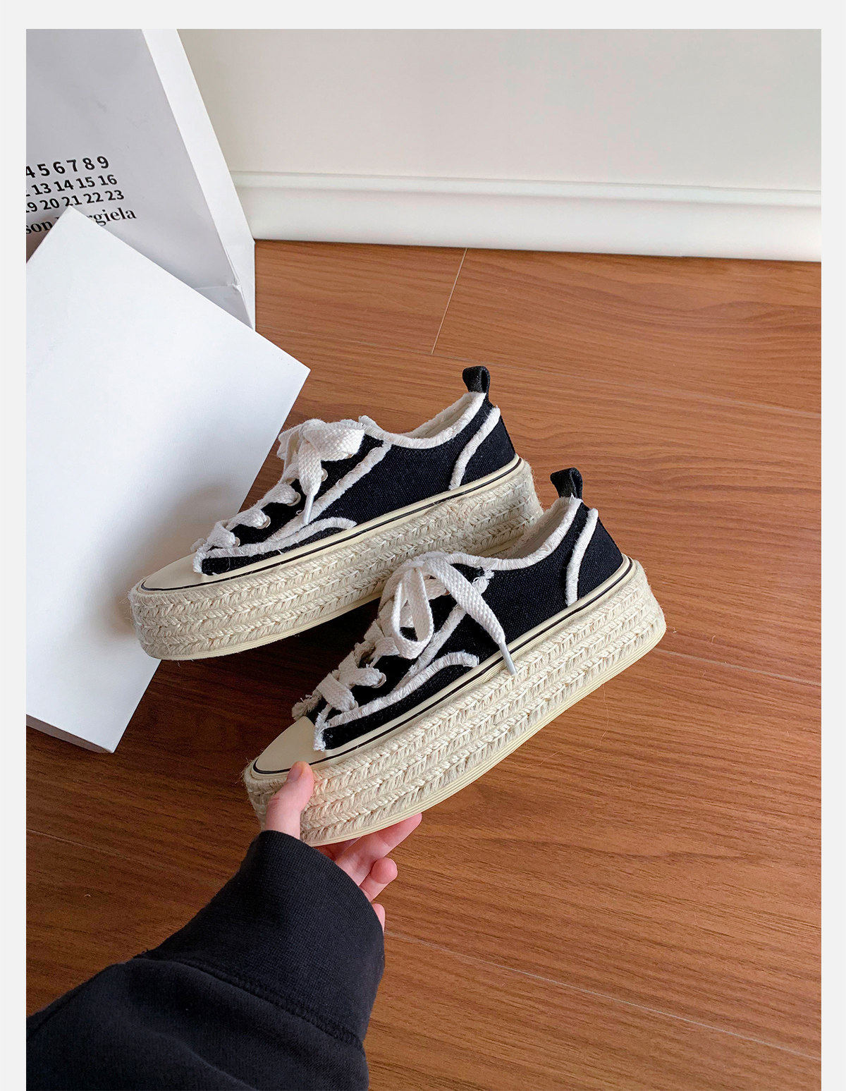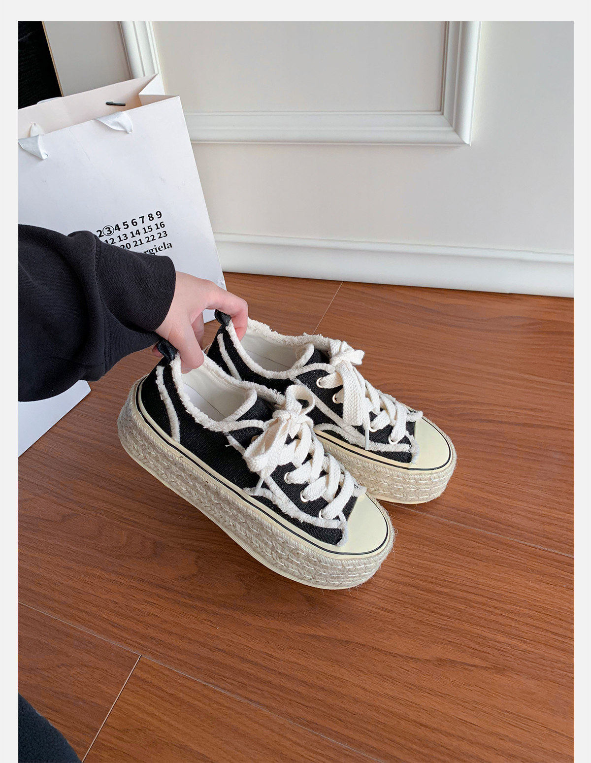 Hong Kong 2026 New Style Chanel-Inspired Canvas Shoes for Women, Spring and Autumn Thick-Soled Versatile Casual Shoes, Sneakers, Biscuit Shoes