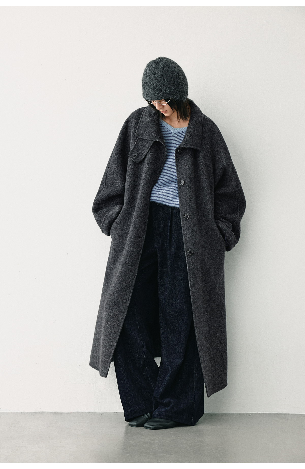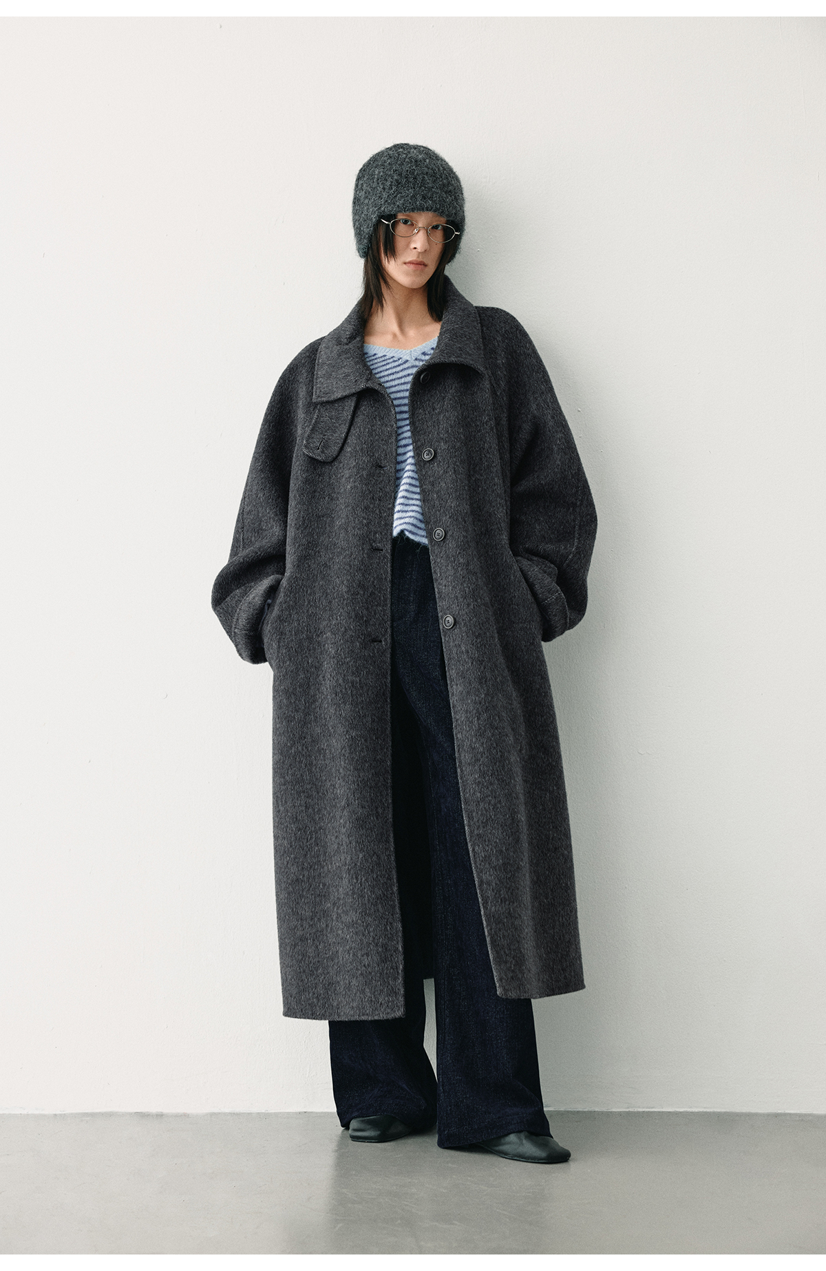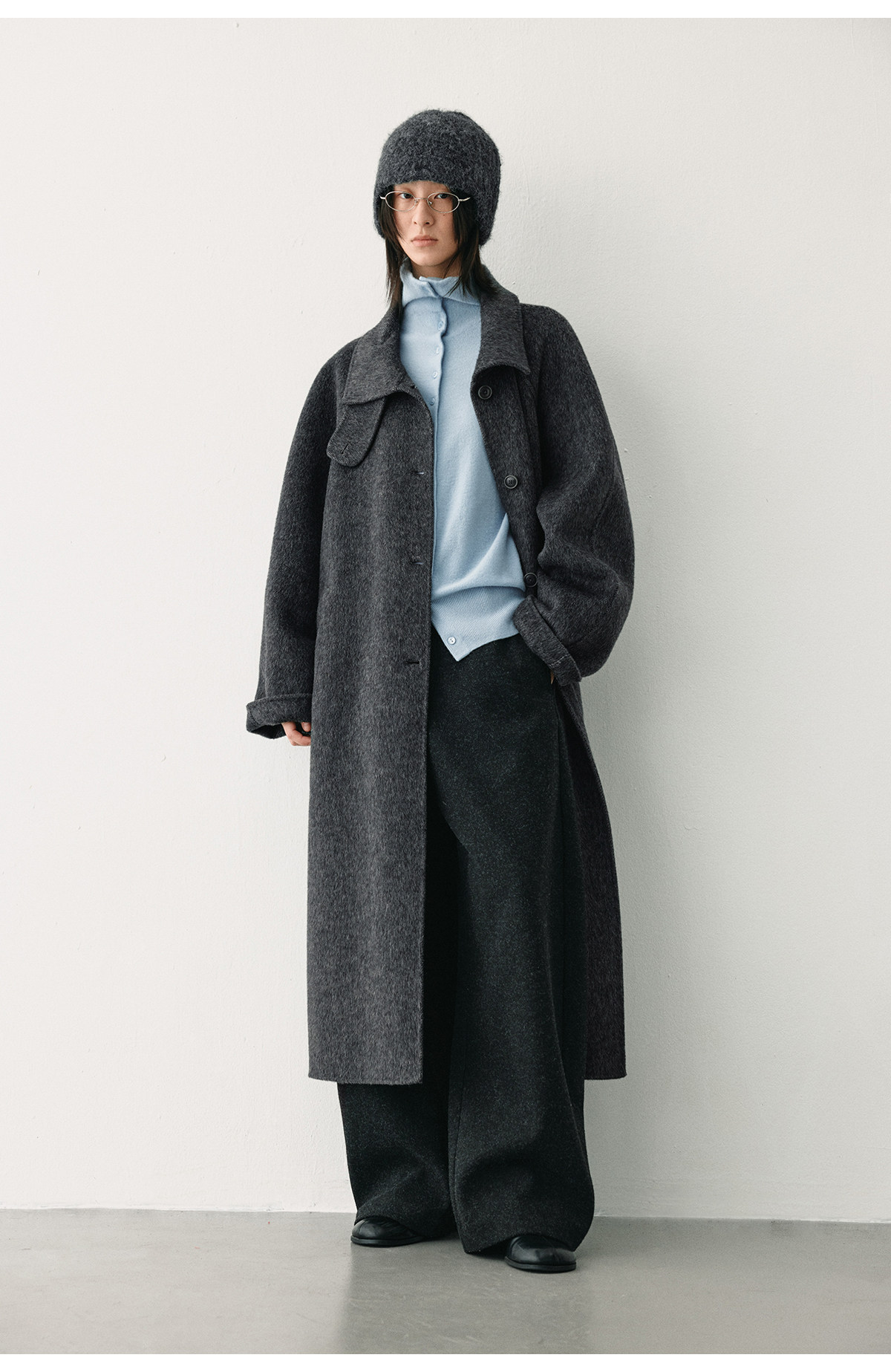 Haverice Restaurant Classic Squid Outwear Autumn and Winter Texture High-End Double-Sided Woolen Gray Wool Outwear for Women