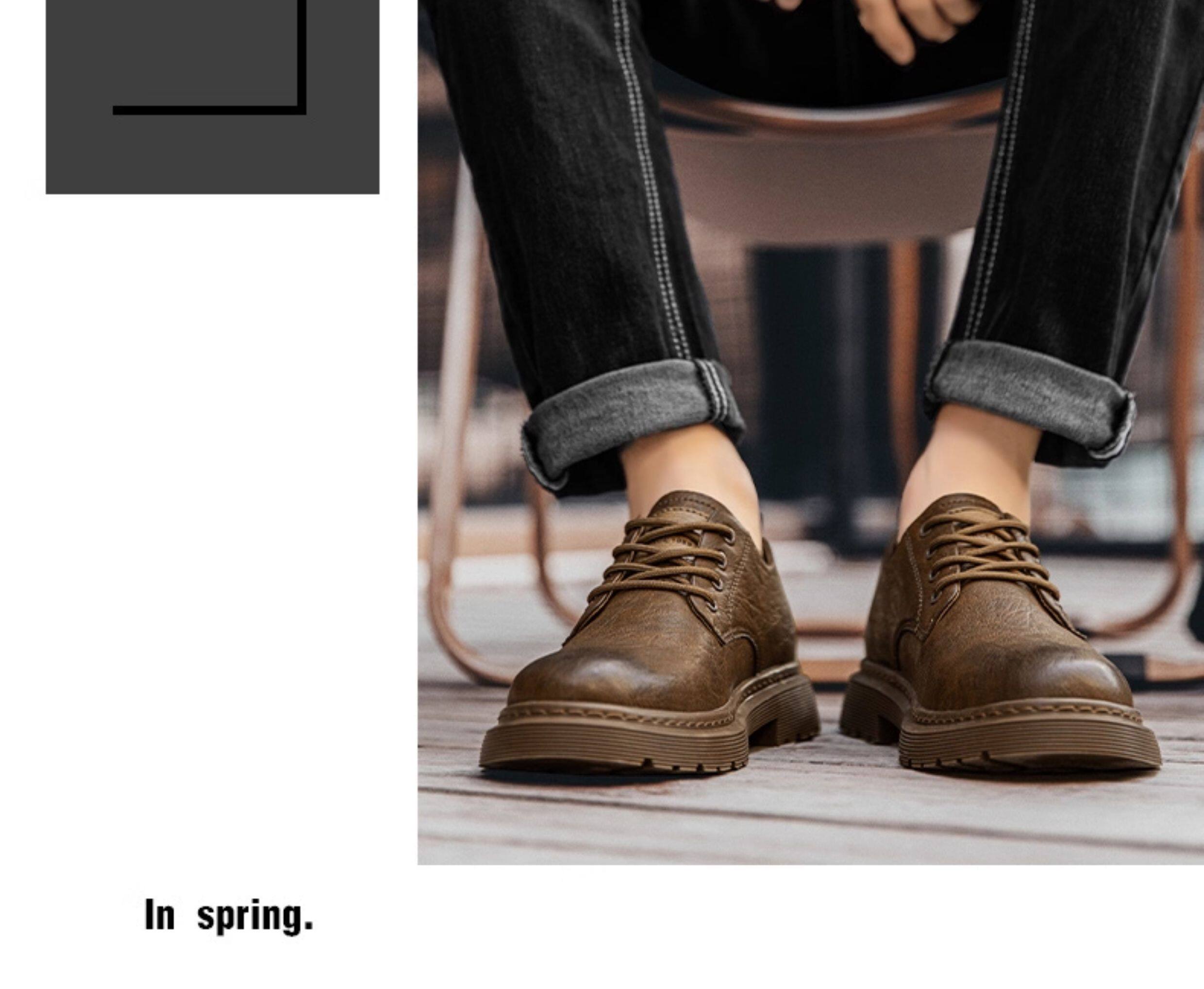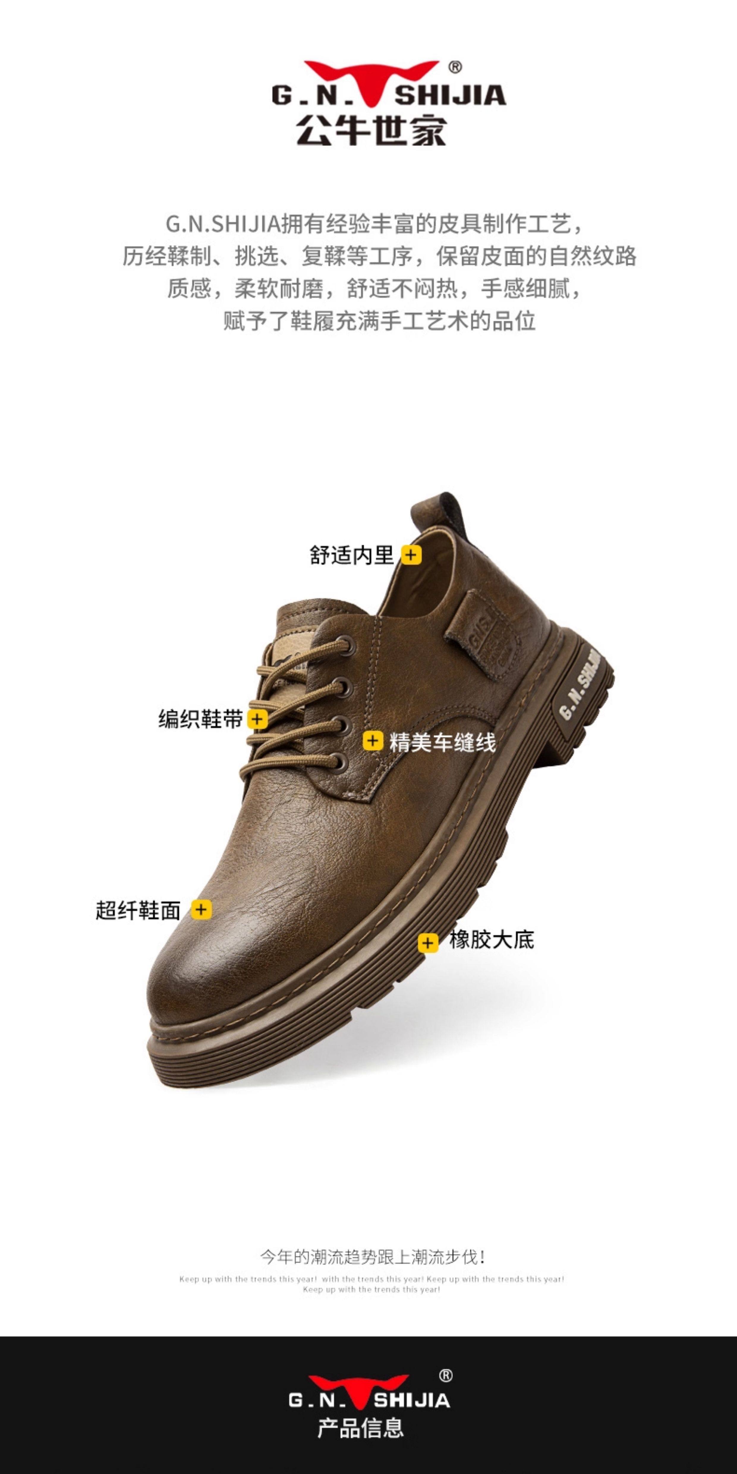Bull Family Men's Shoes 2026 New Spring British Style Business Formal Casual Genuine Leather Shoes Men's Martin Boots