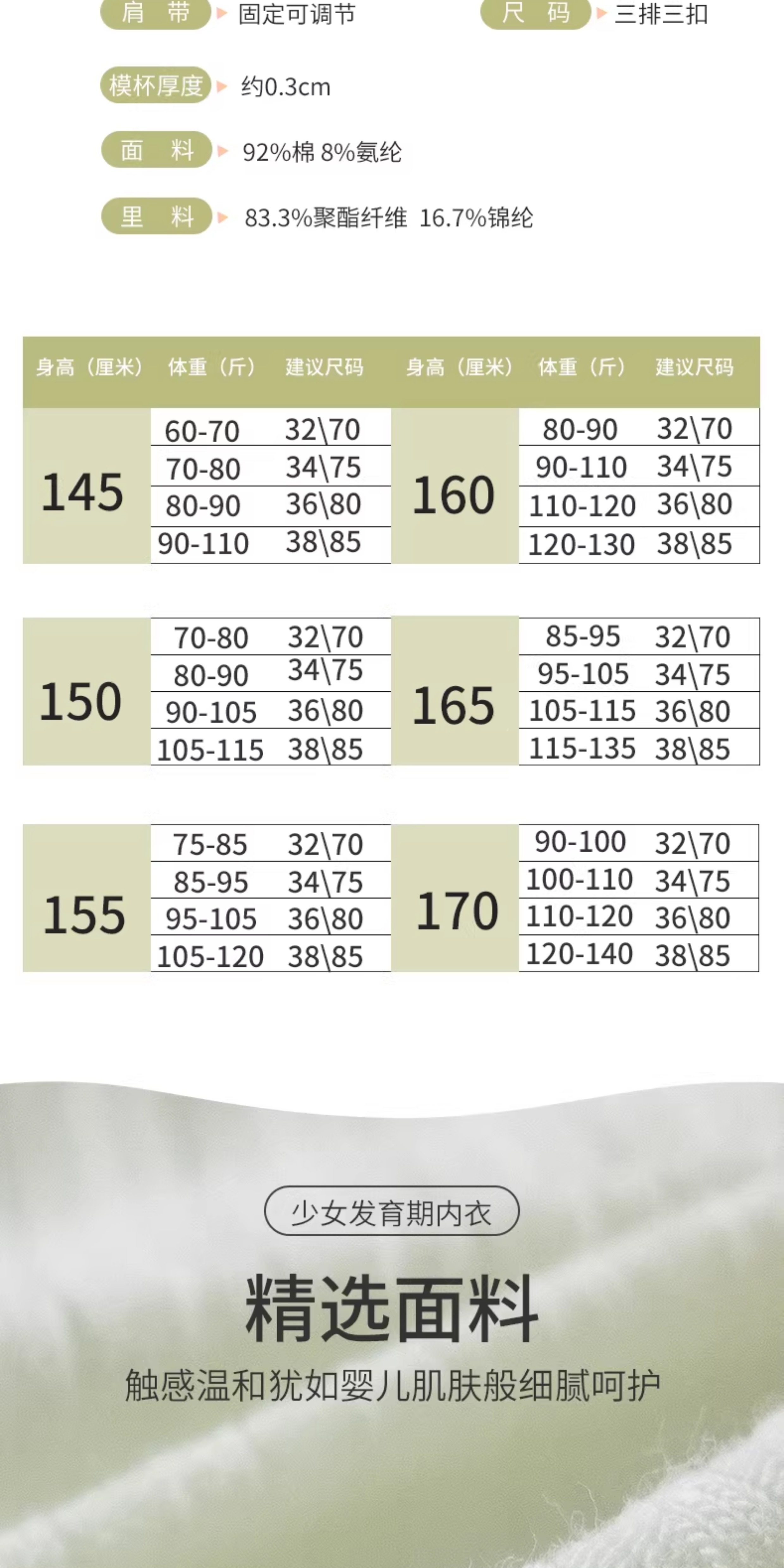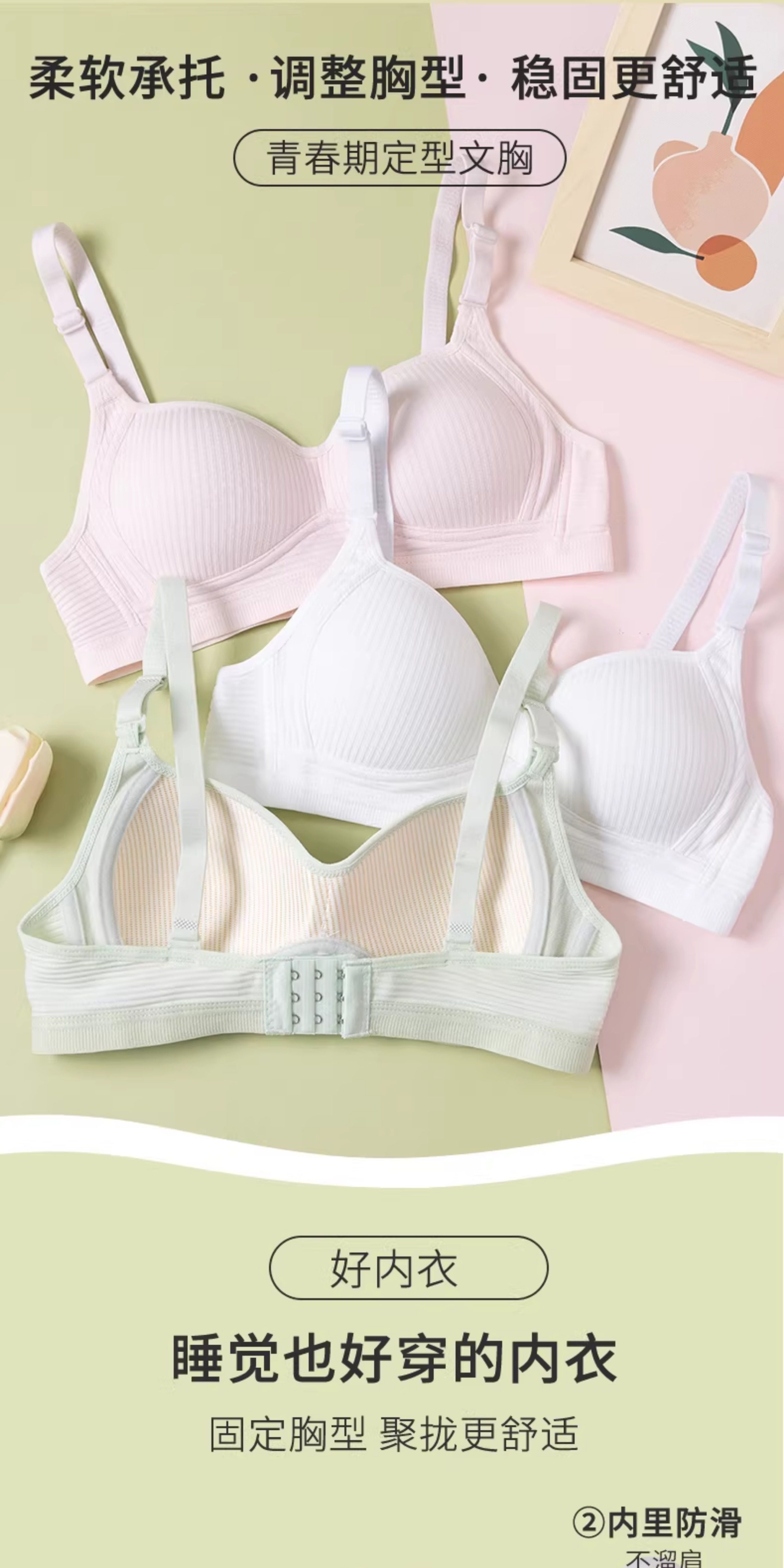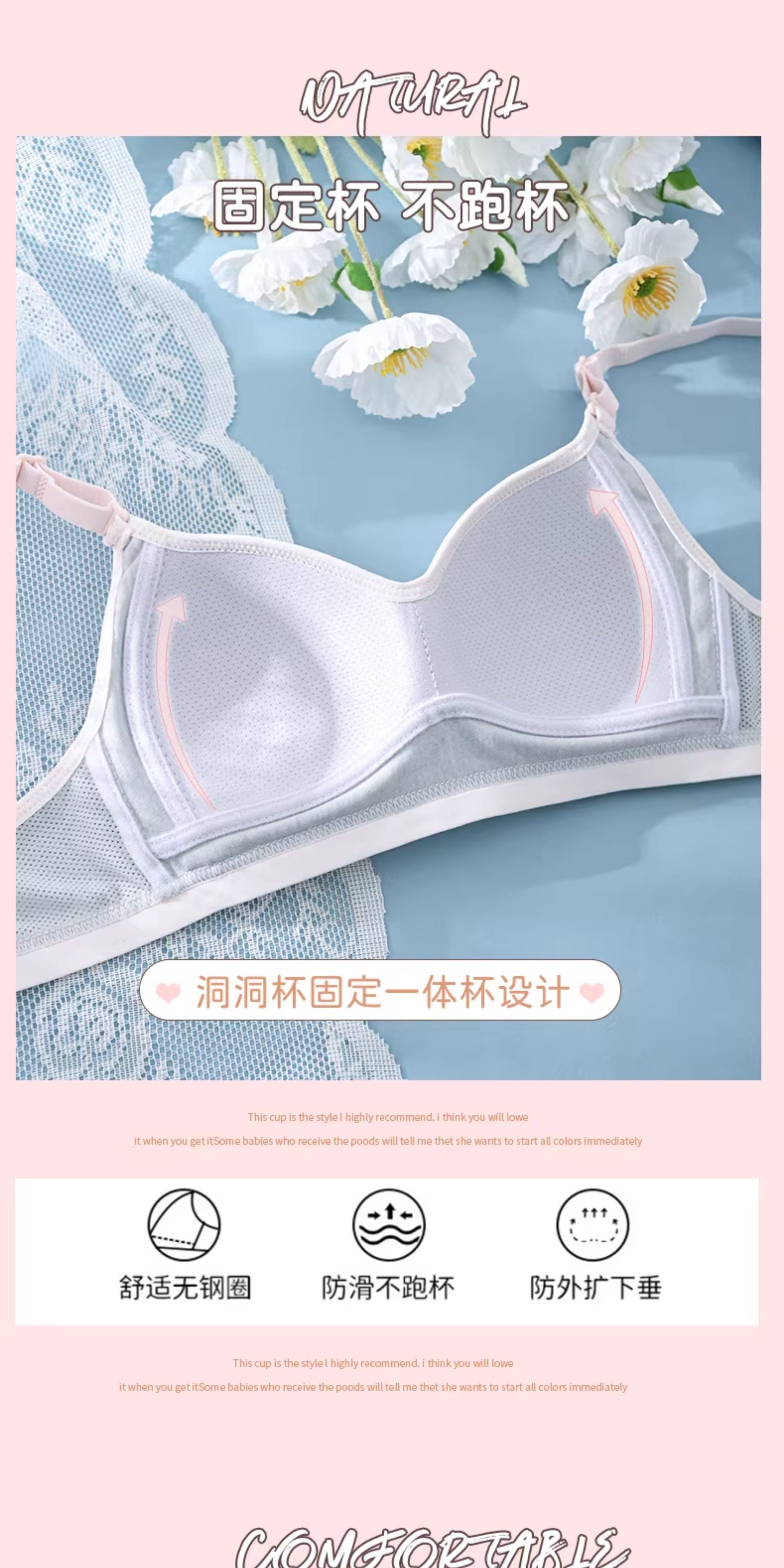 Anfeiya Girls' Underwear for Middle School, High School, and College Students, Molded Cup Bra, Puberty Girls' Small Chest Push-Up Bra