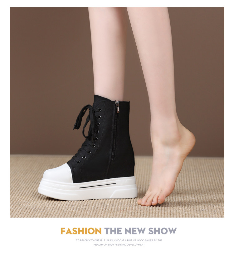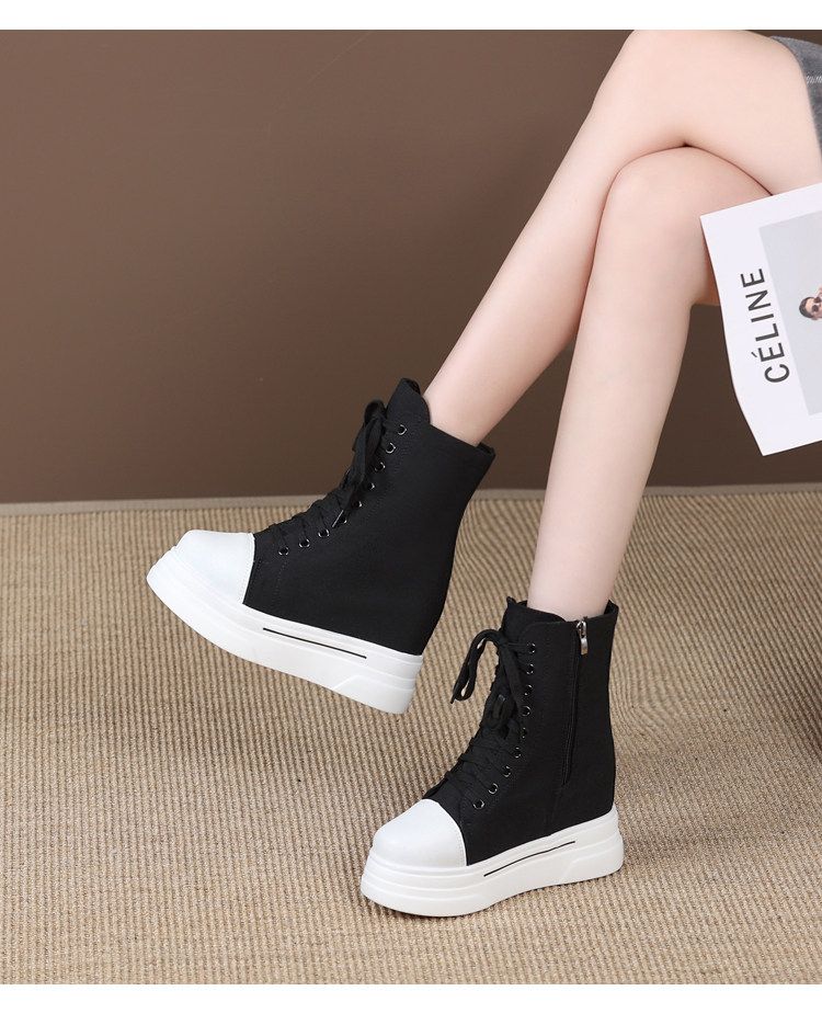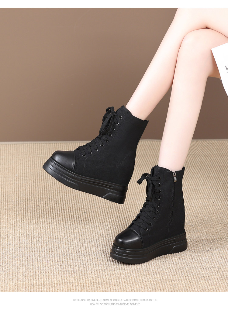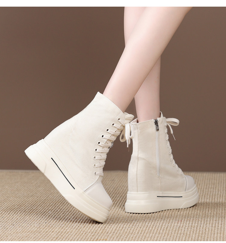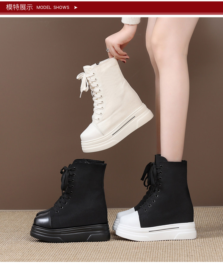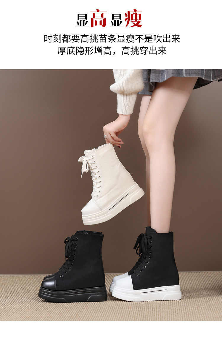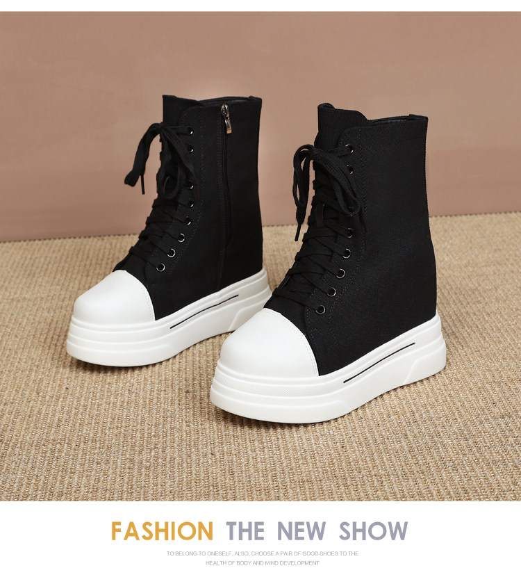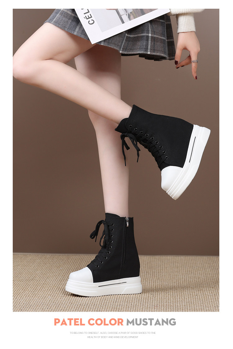 Korean Style Canvas Shoes for Women 12- 16cm with Hidden Internal Height Increase, Extra High Platform, Welfare Model for Petite Individuals, Autumn and Winter High Boots