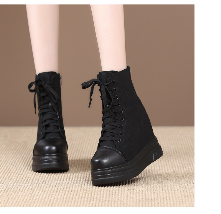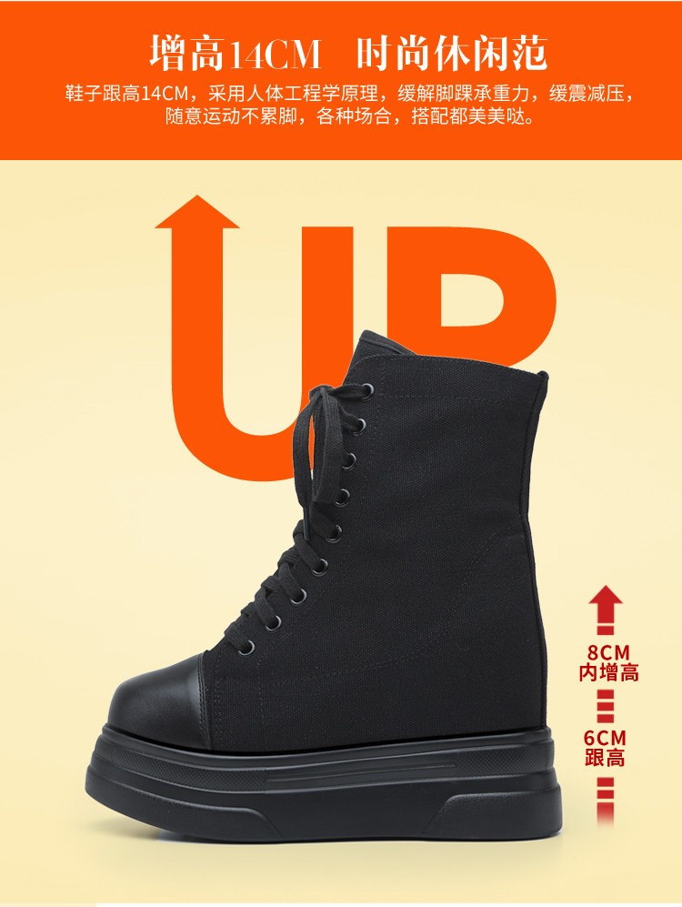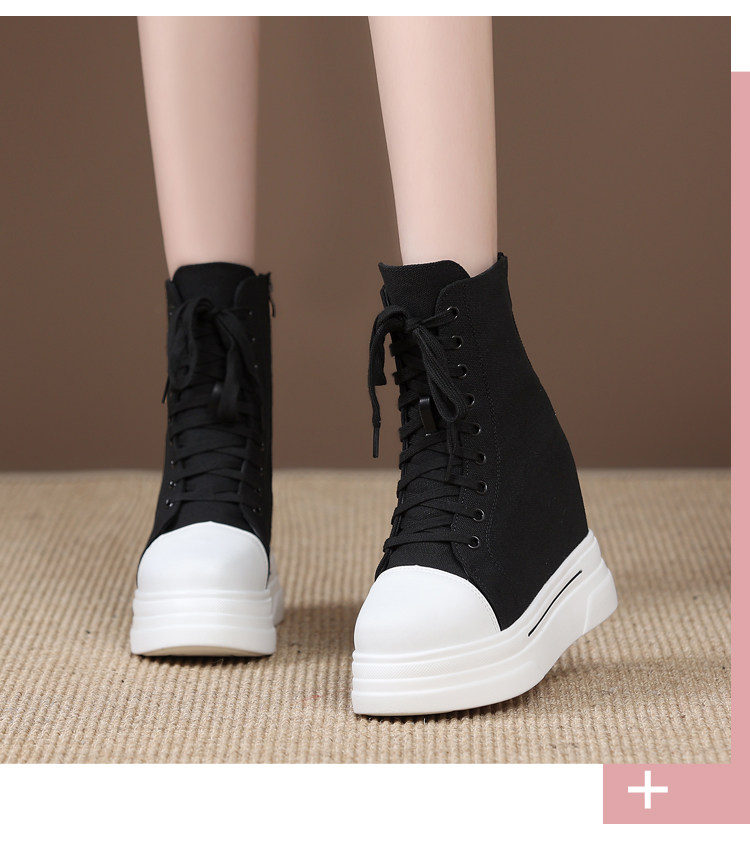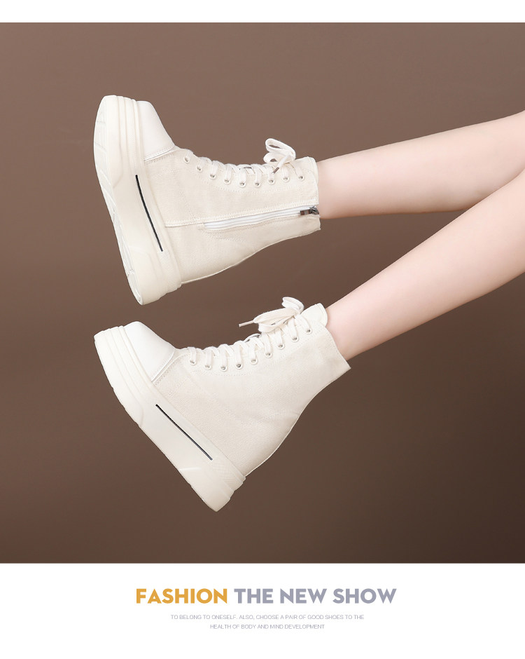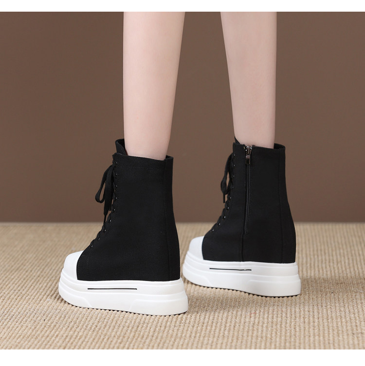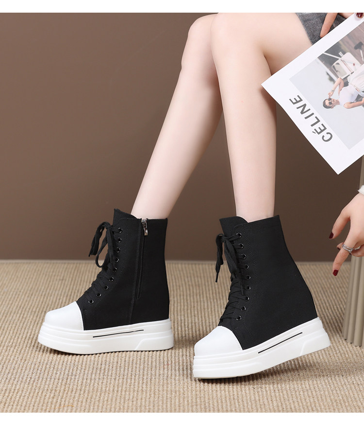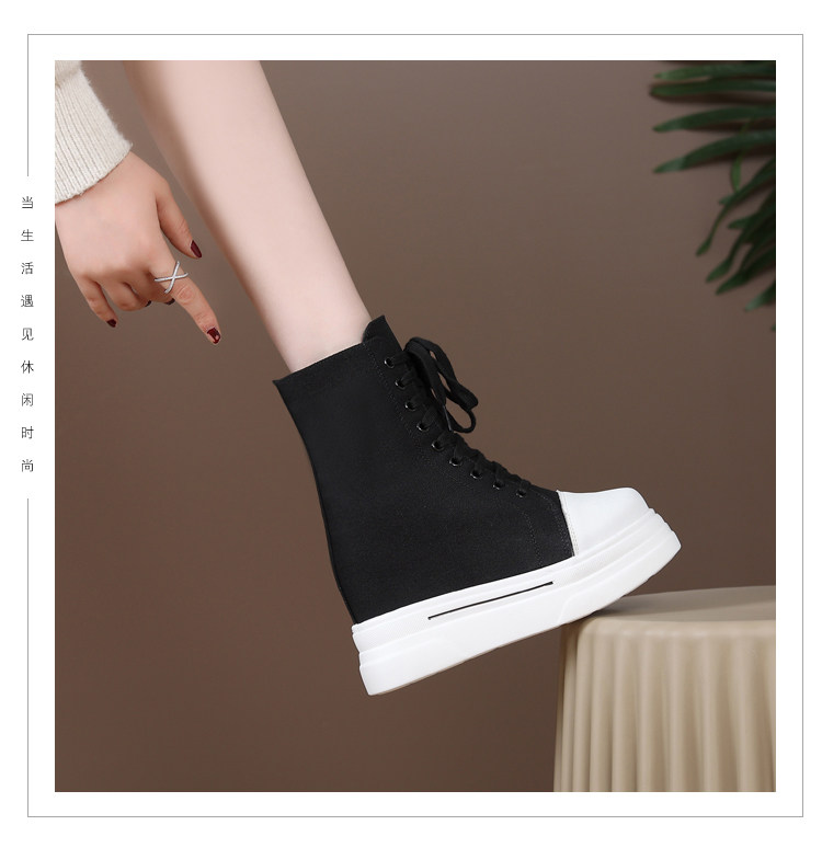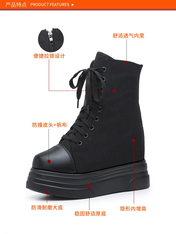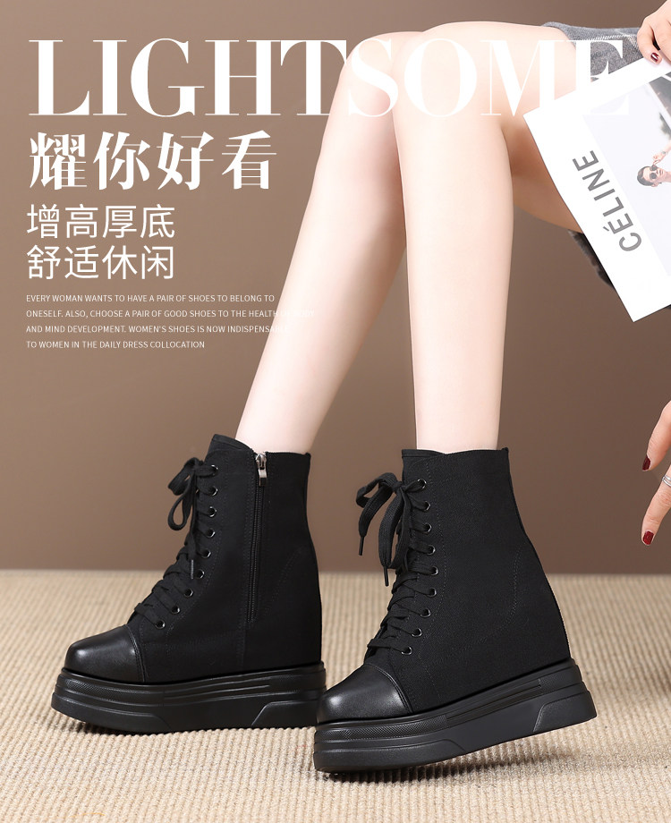 Korean Style Canvas Shoes for Women 12- 16cm with Hidden Internal Height Increase, Extra High Platform, Welfare Model for Petite Individuals, Autumn and Winter High Boots