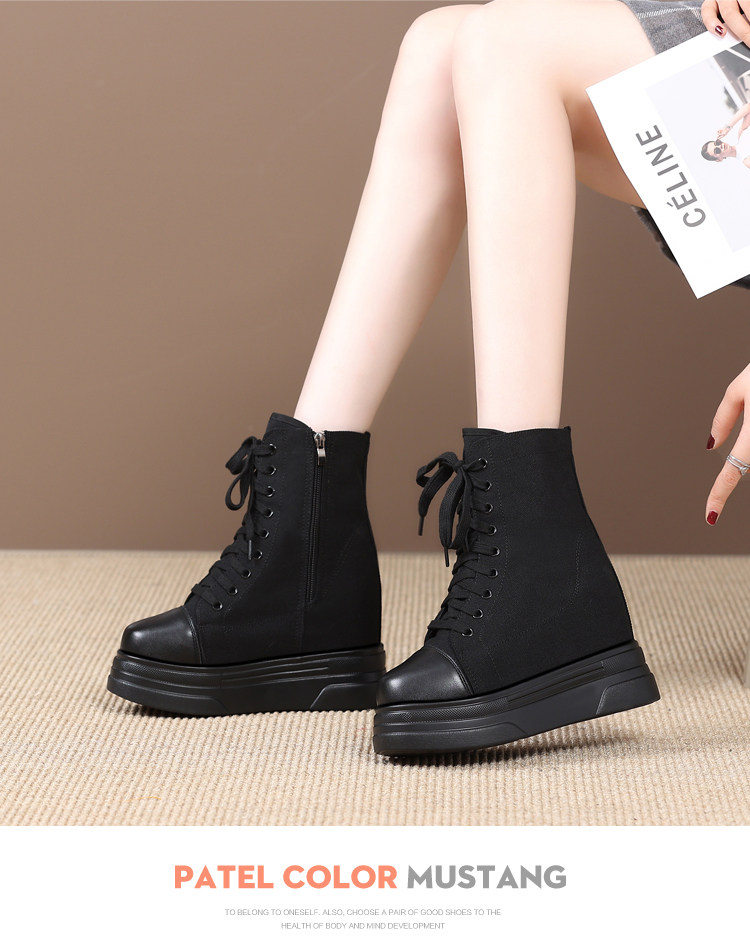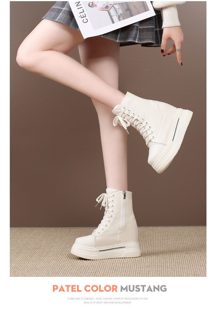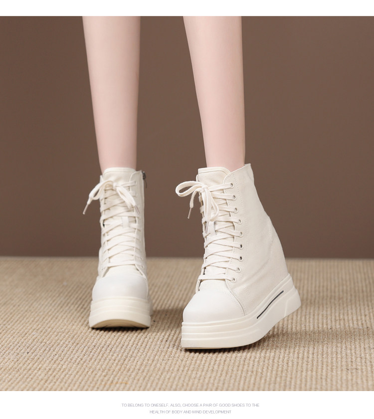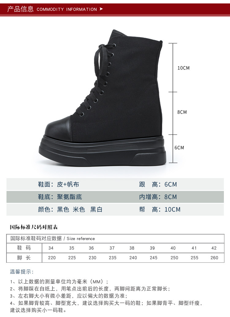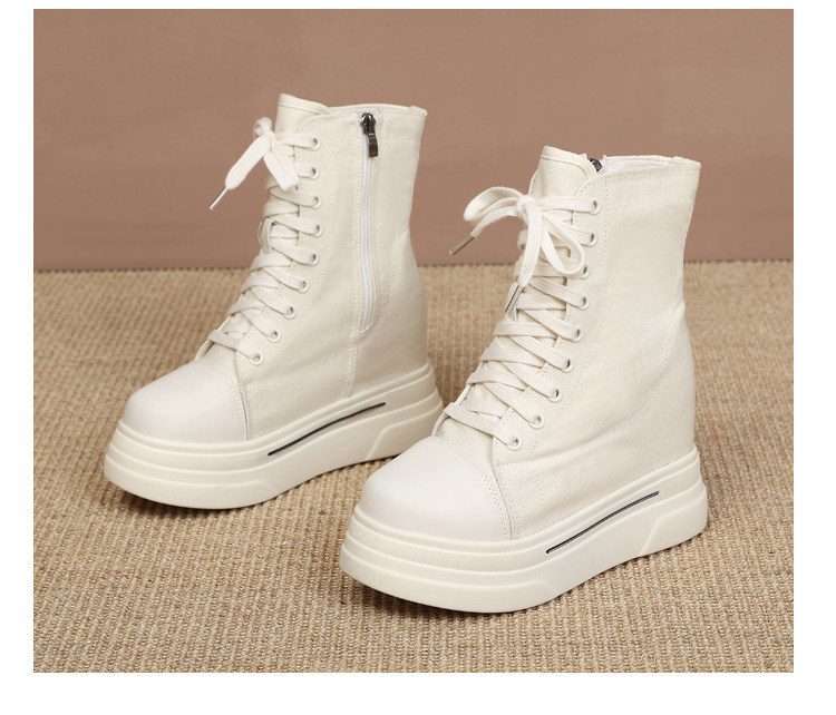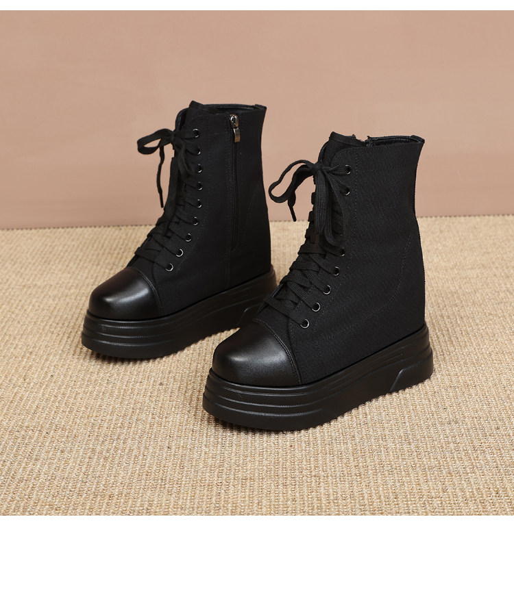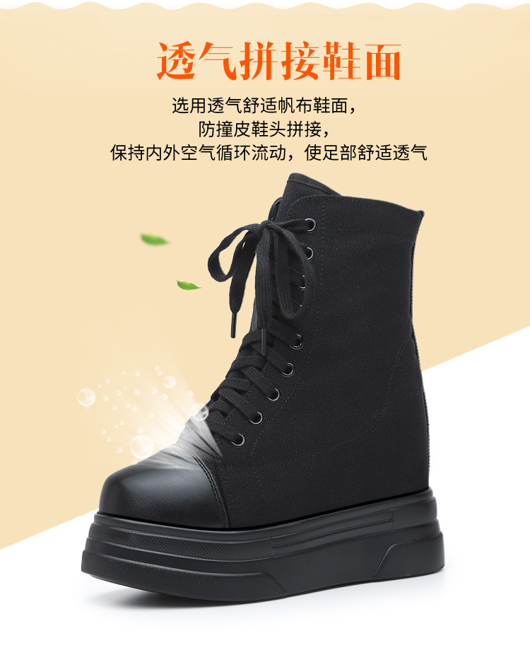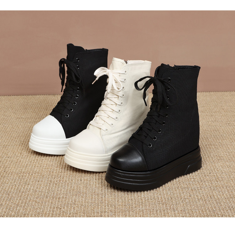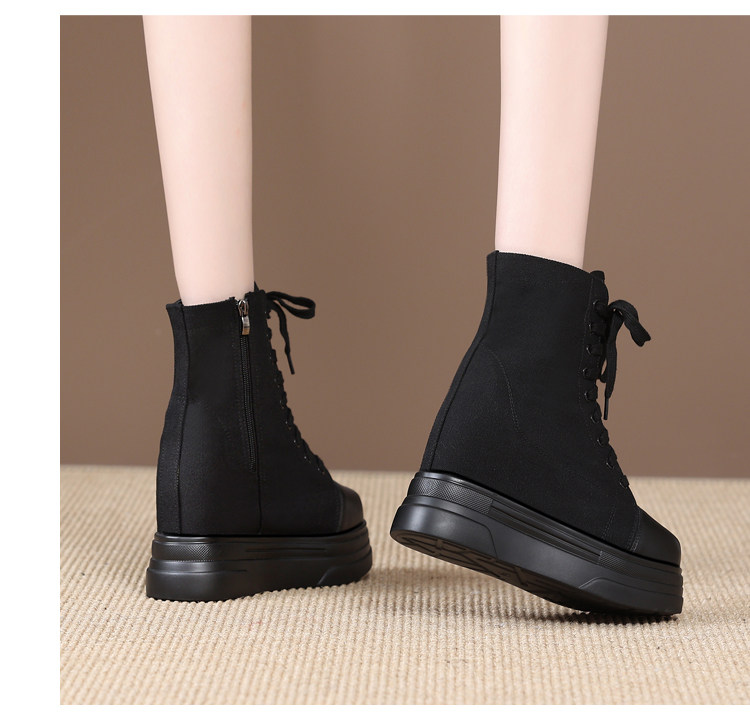 Korean Style Canvas Shoes for Women 12- 16cm with Hidden Internal Height Increase, Extra High Platform, Welfare Model for Petite Individuals, Autumn and Winter High Boots