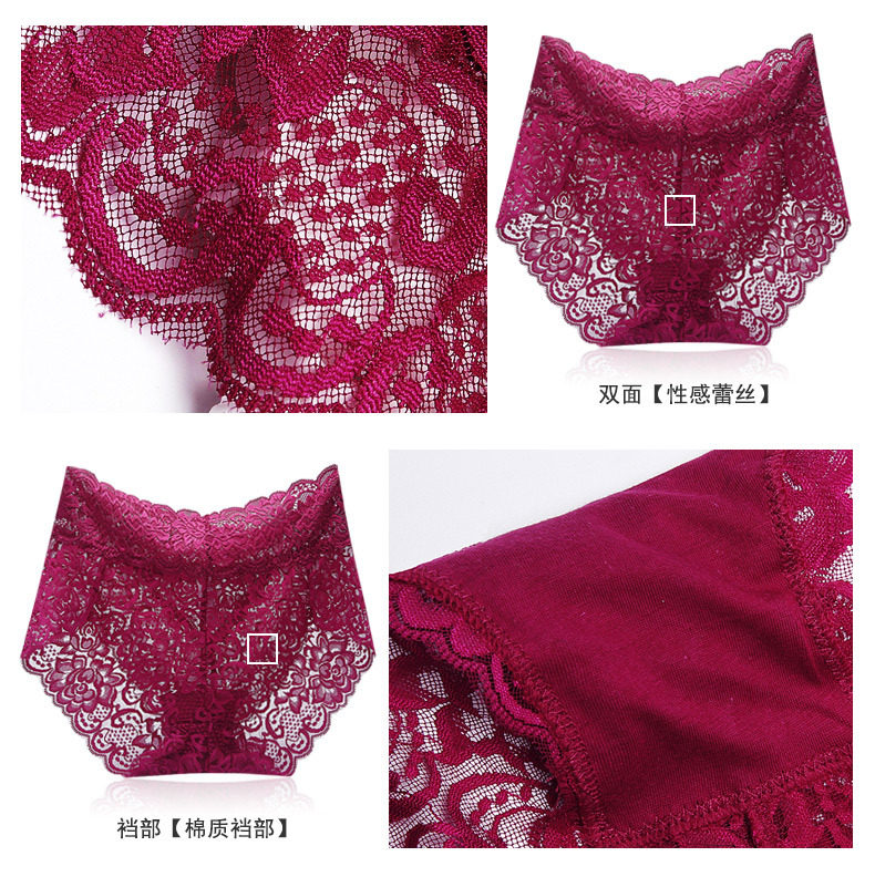 3-Pack Lace Panties for Women, Tummy Control, Butt-Lifting, Mid-High Waist, Seamless, Plus Size, Pure Cotton Crotch, Triangle Briefs