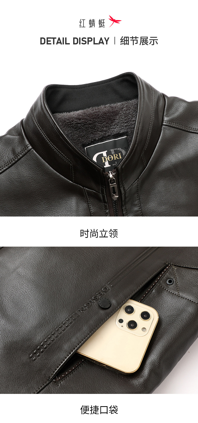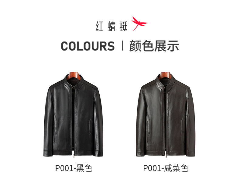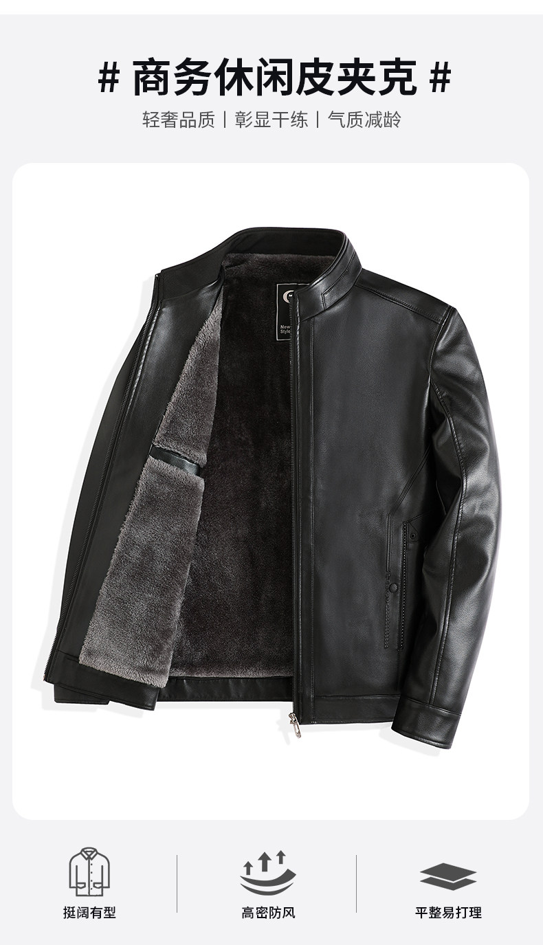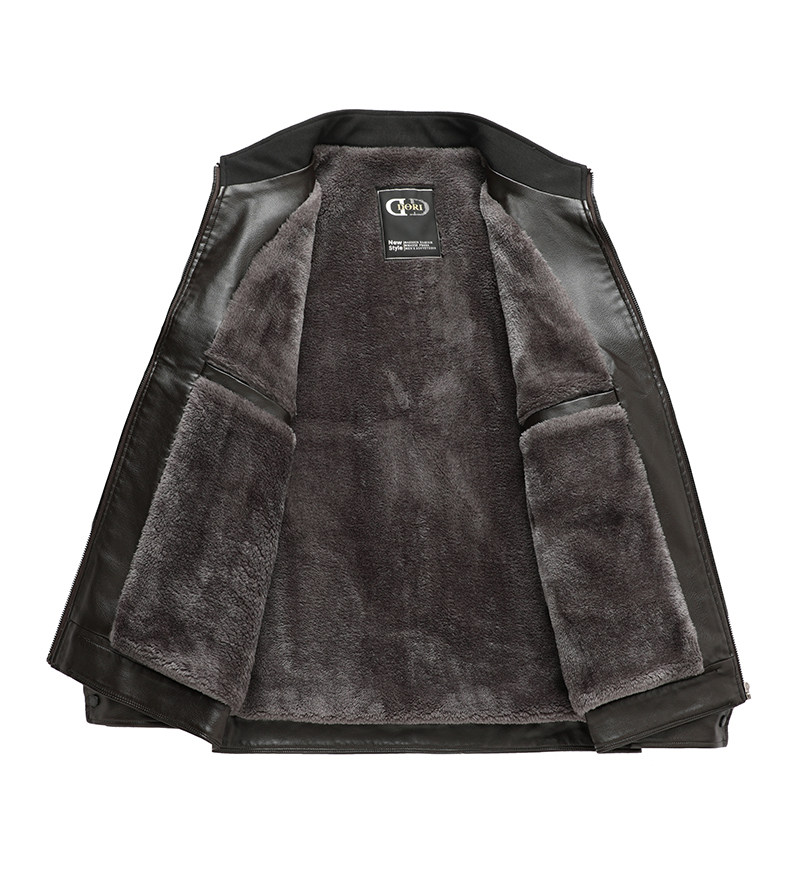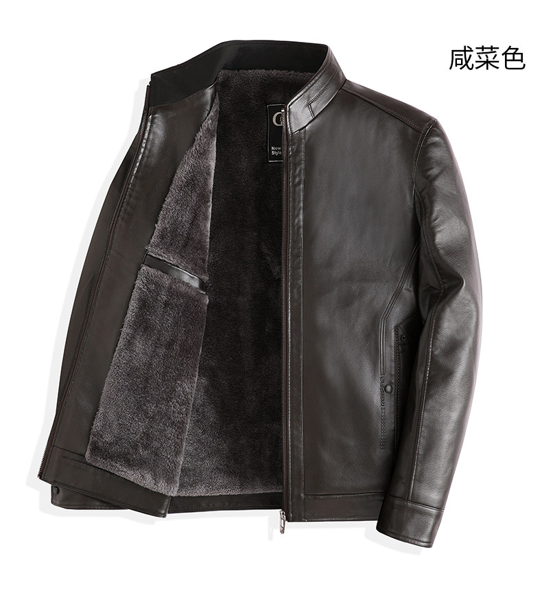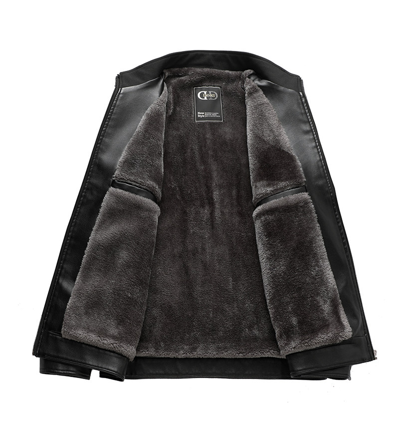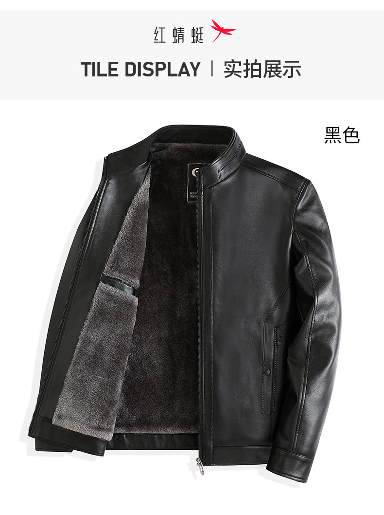 Red Dragonfly Men's Stand Collar Leather Jacket 2025 Winter New Men's Clothing Fleece-Lined Thickened Dad's Winter Leather Jacket