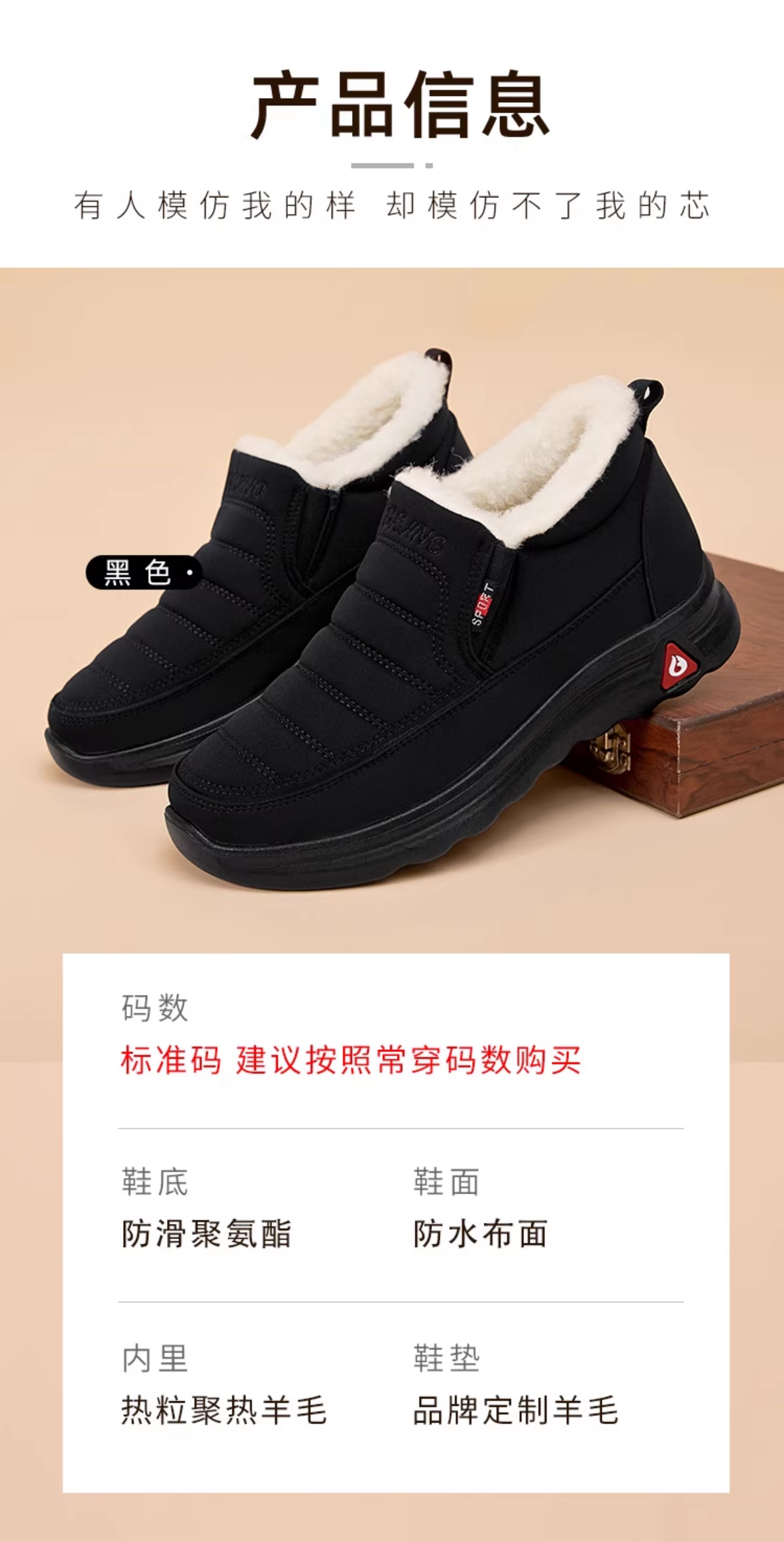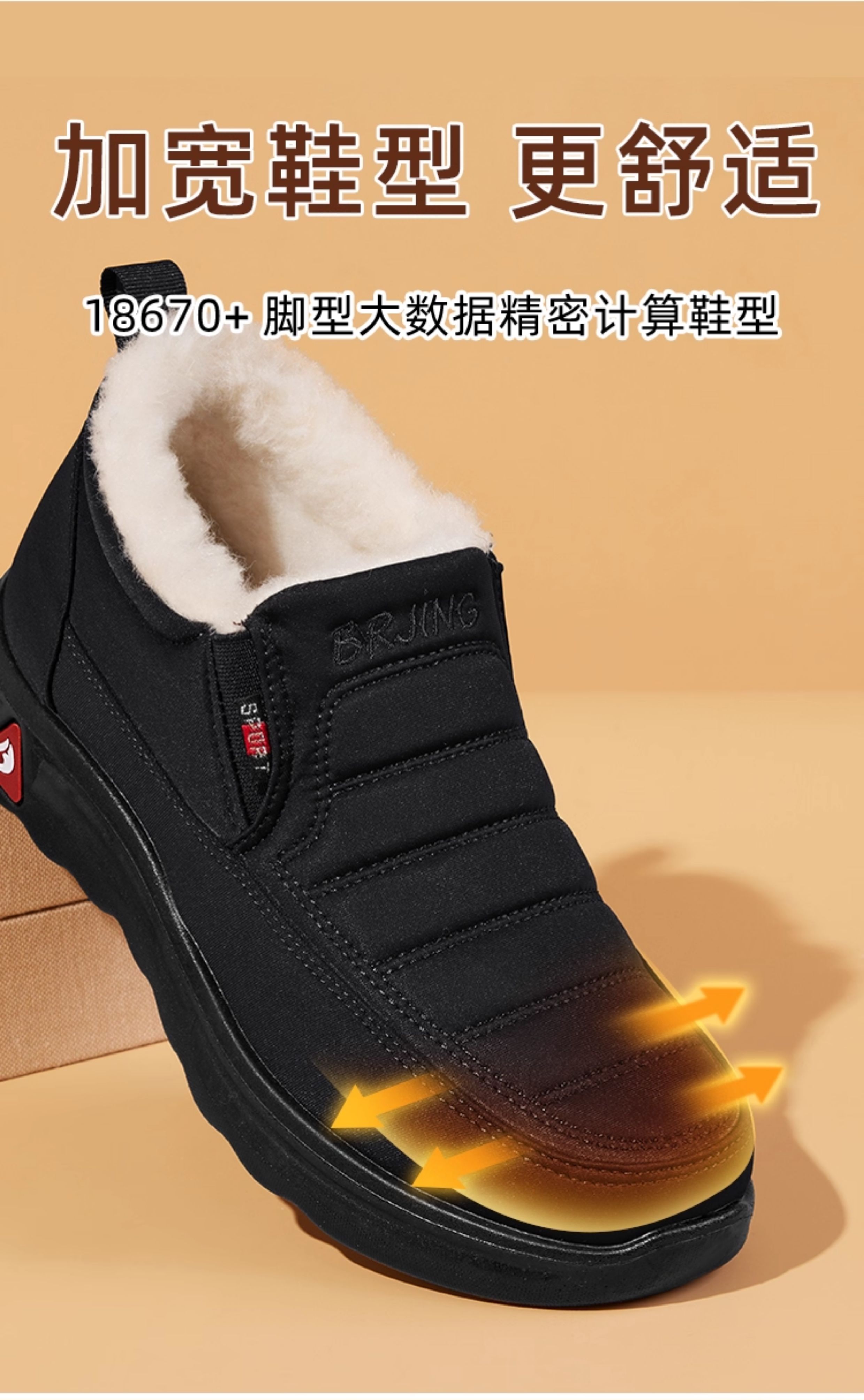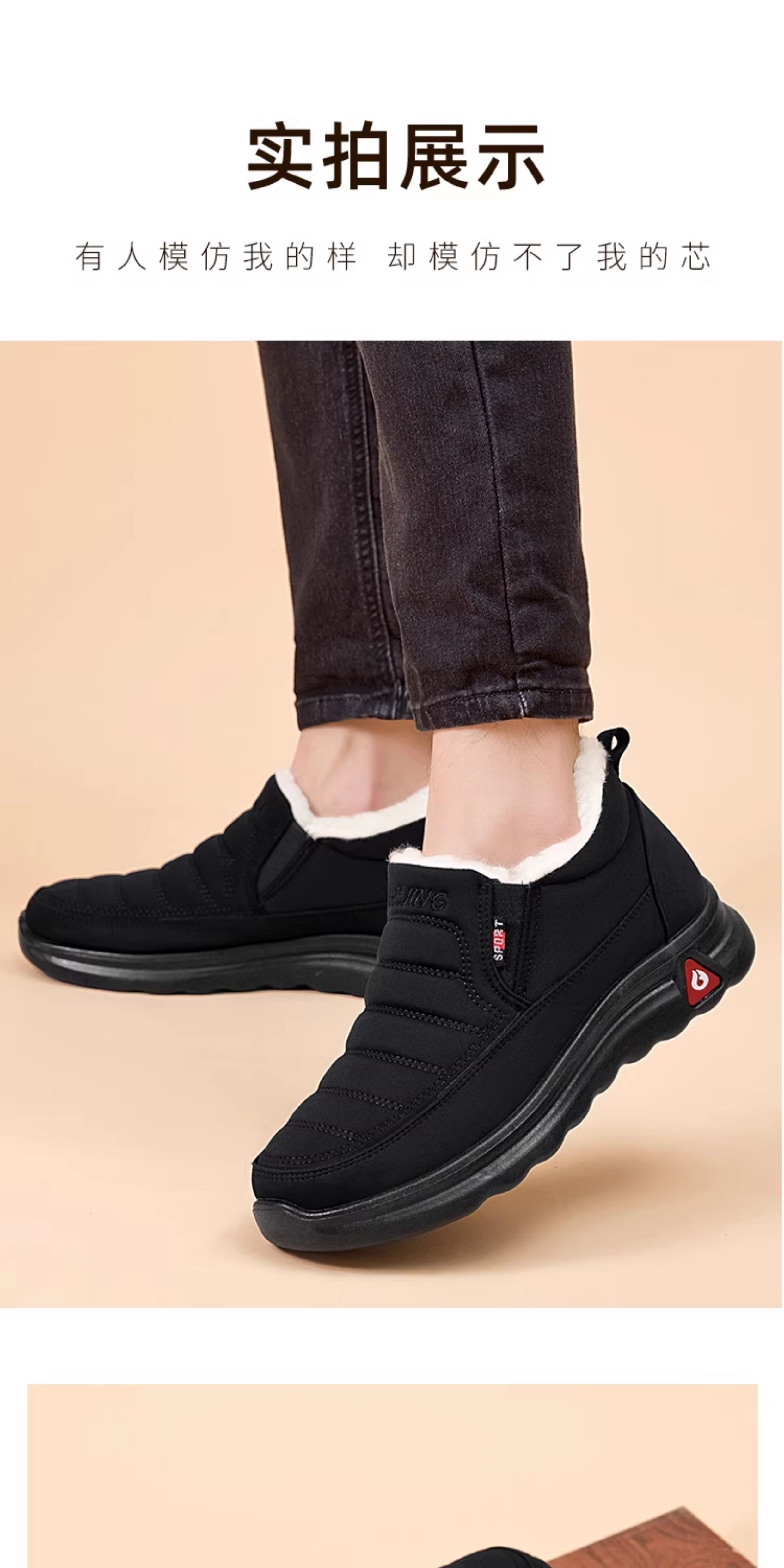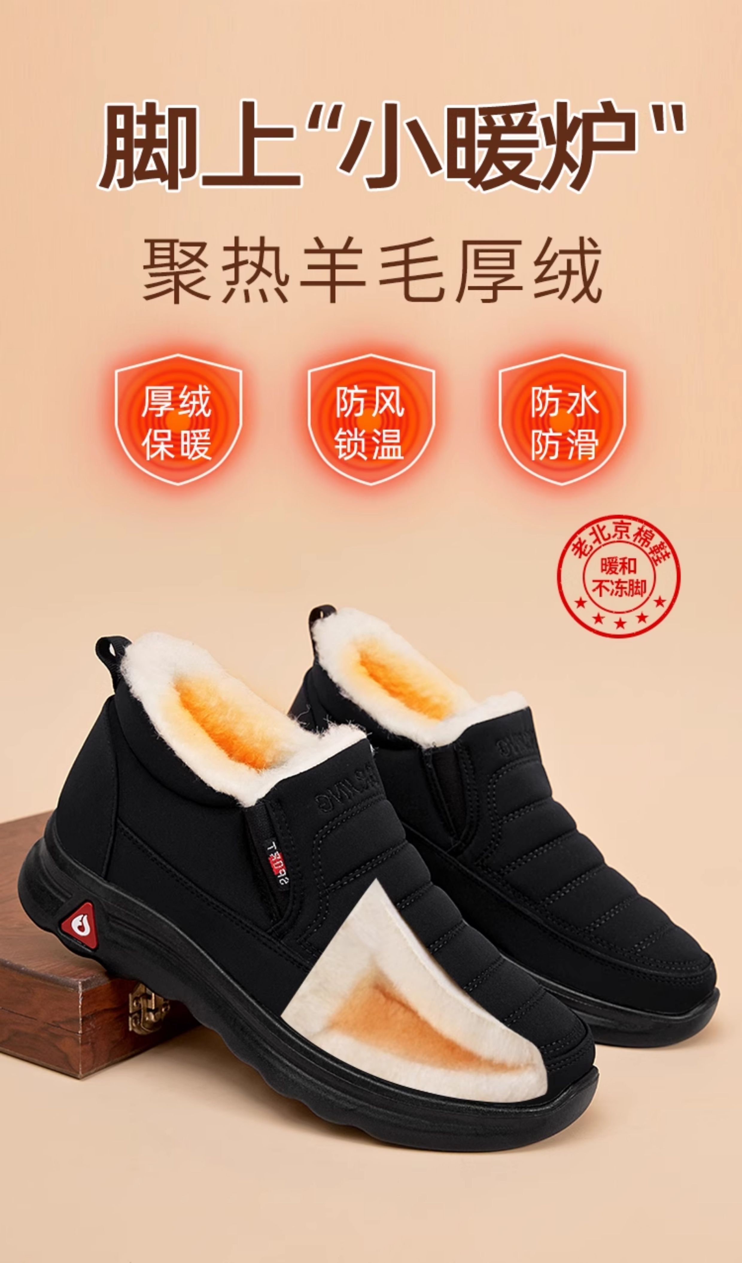 Winter Old Beijing Cloth Shoes for Men, Cotton Shoes with Extra Fleece and Thickening, Warm Wool Non-Slip Shoes for the Elderly, Snow Boots for Dads