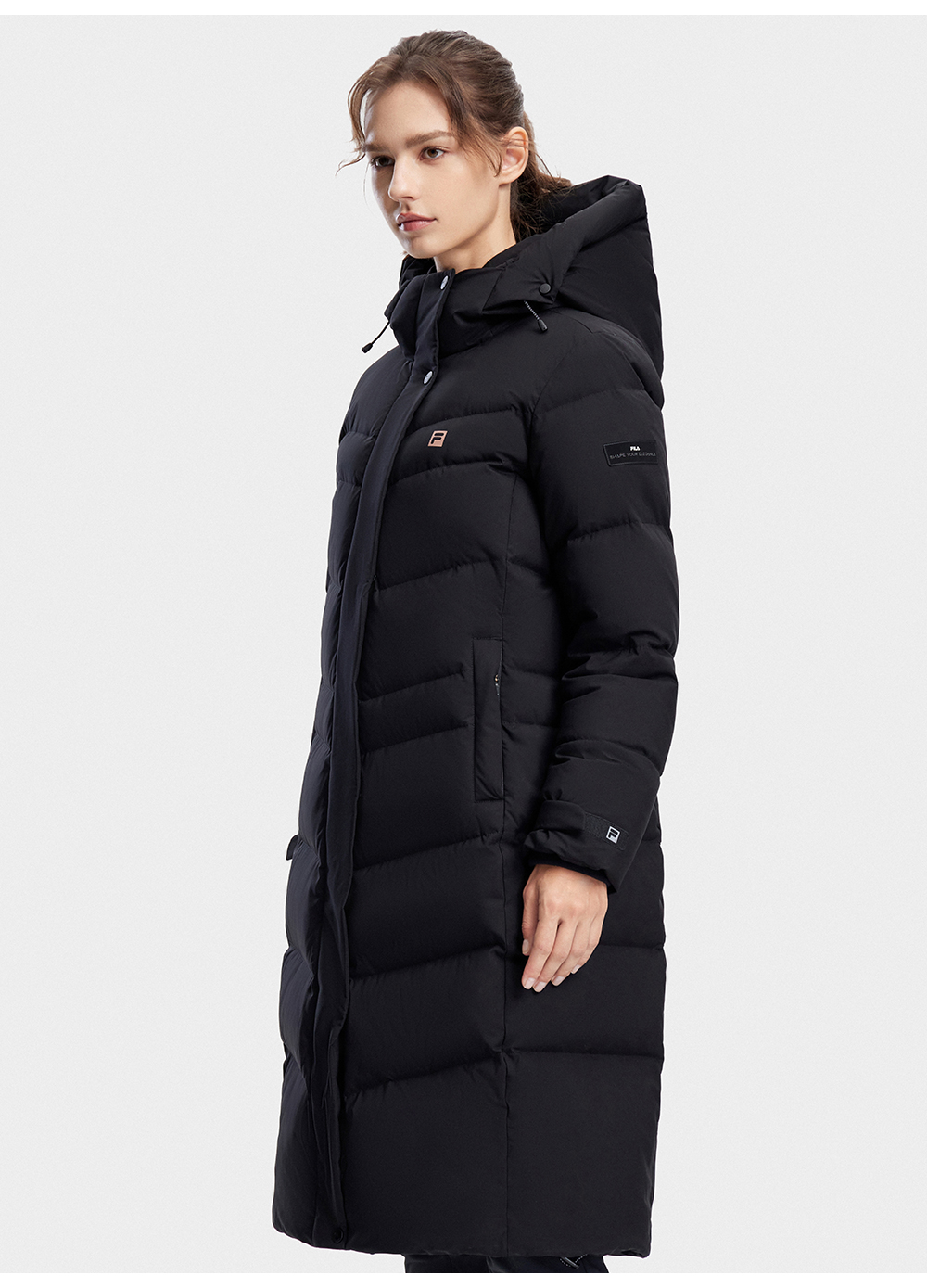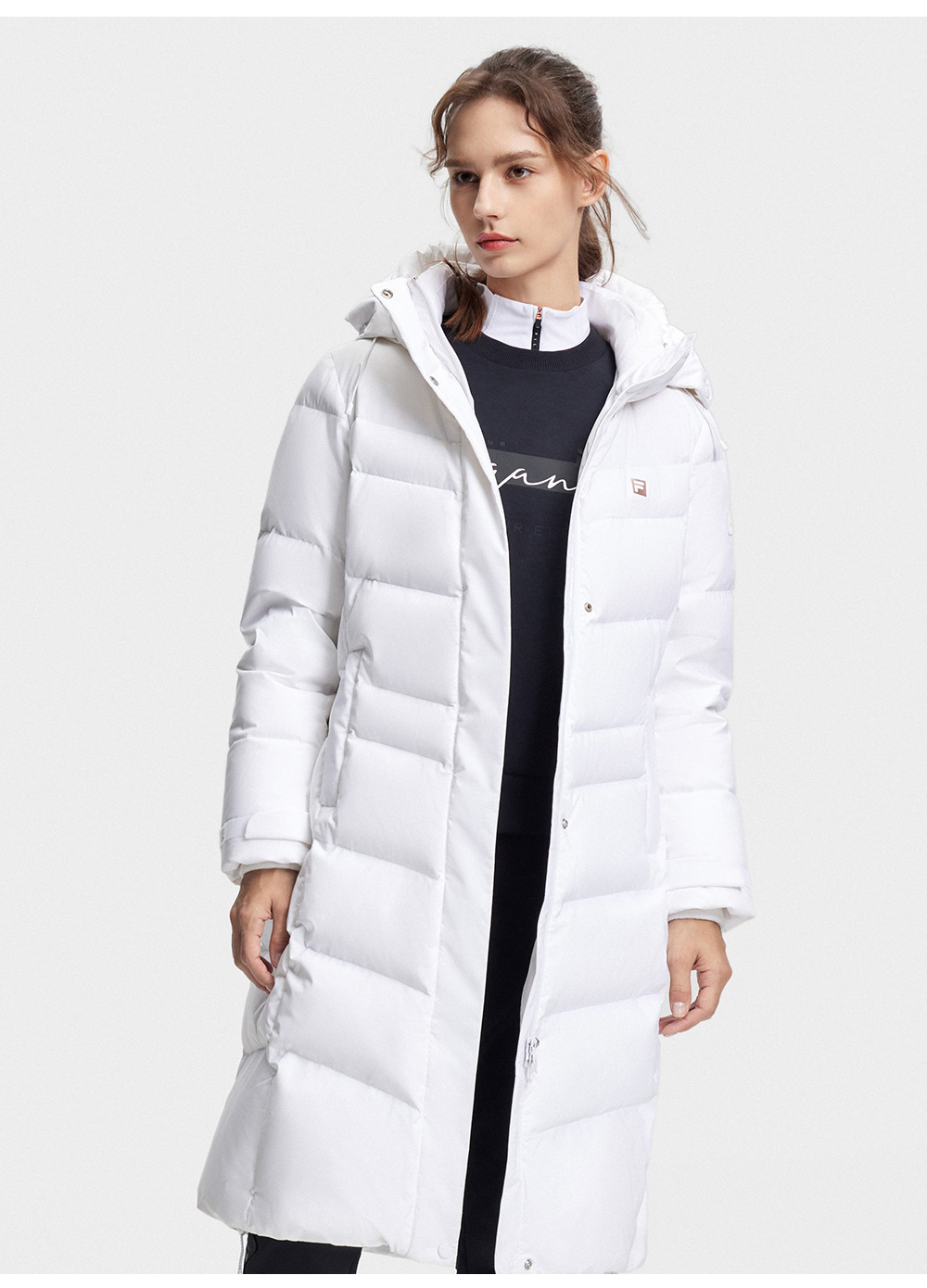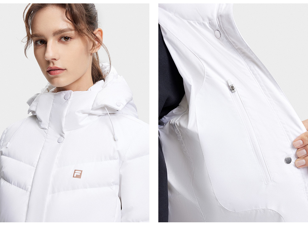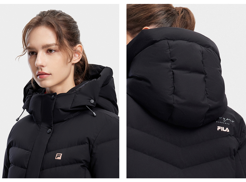 FILA FILA Official Ladies Long Down jacket 2023 Winter Basic Fitness Hooded Tops