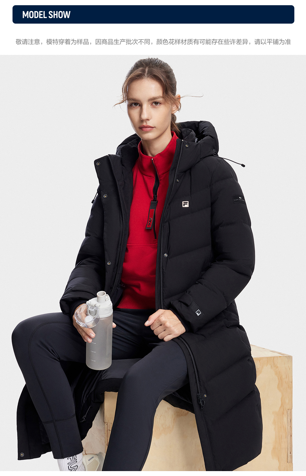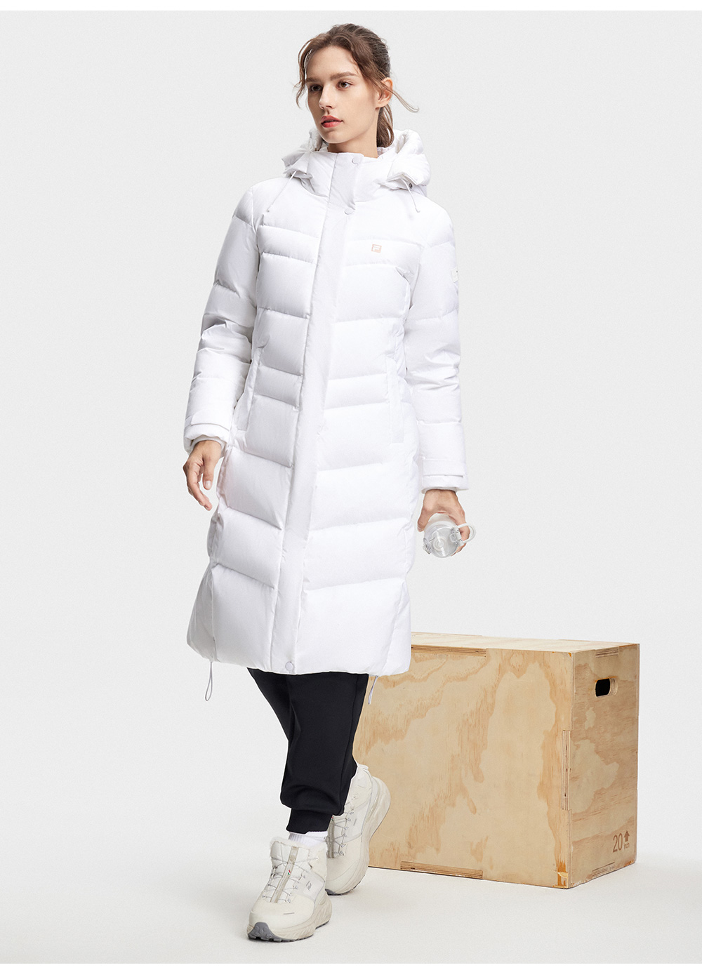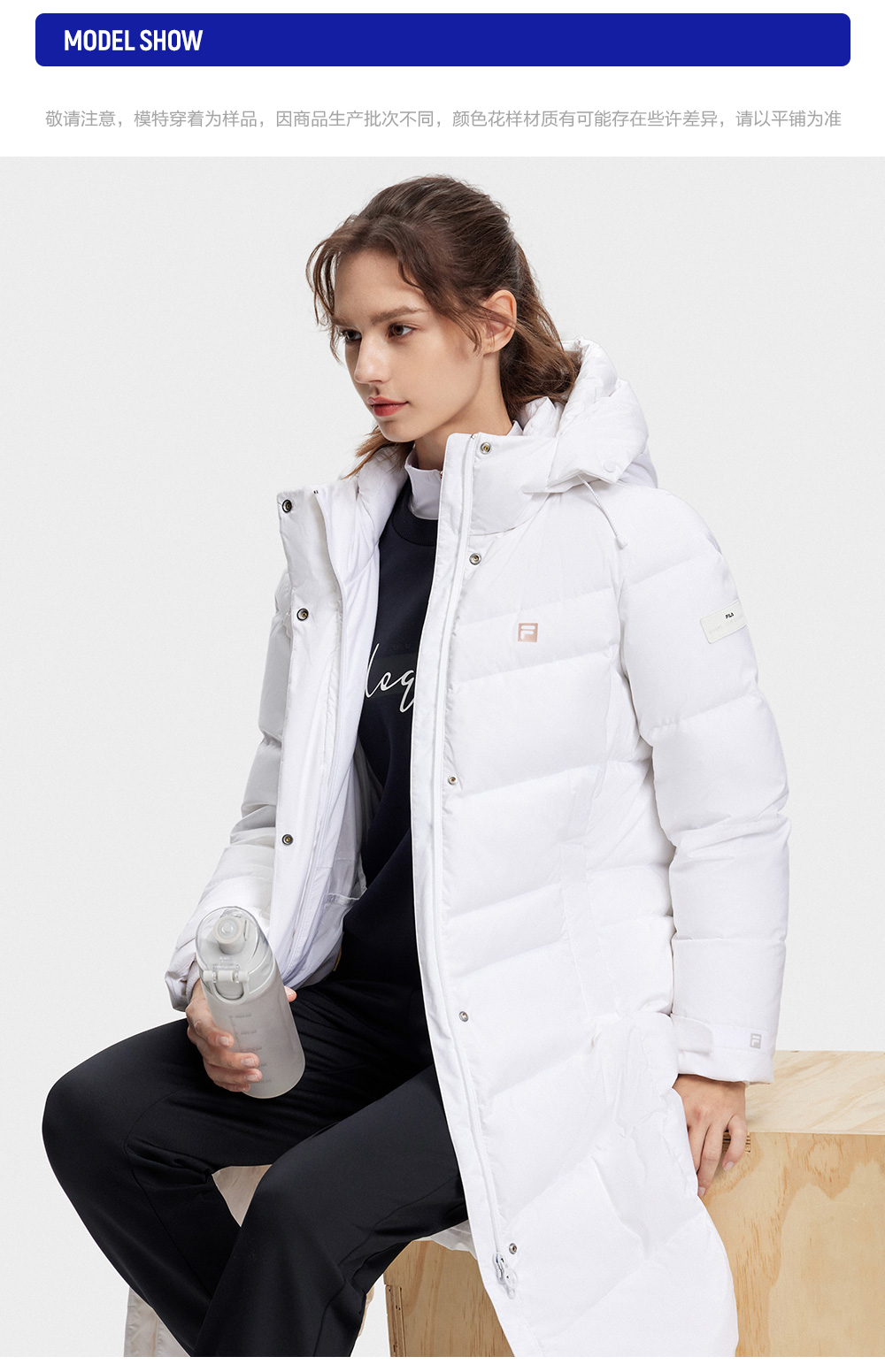 FILA FILA Official Ladies Long Down jacket 2023 Winter Basic Fitness Hooded Tops