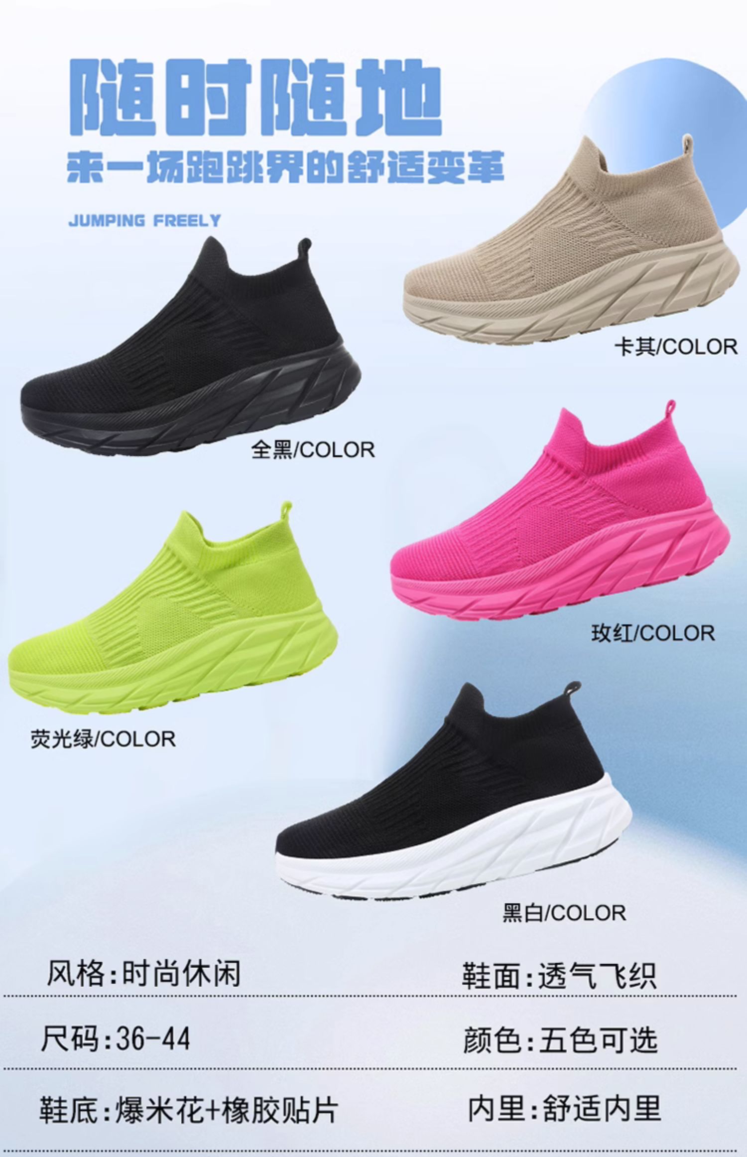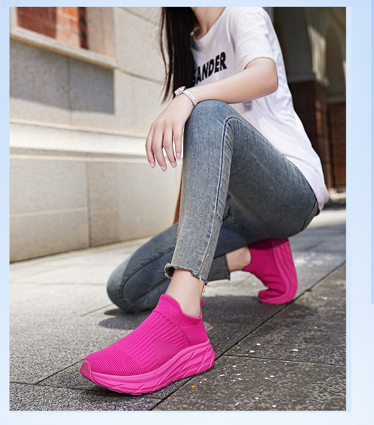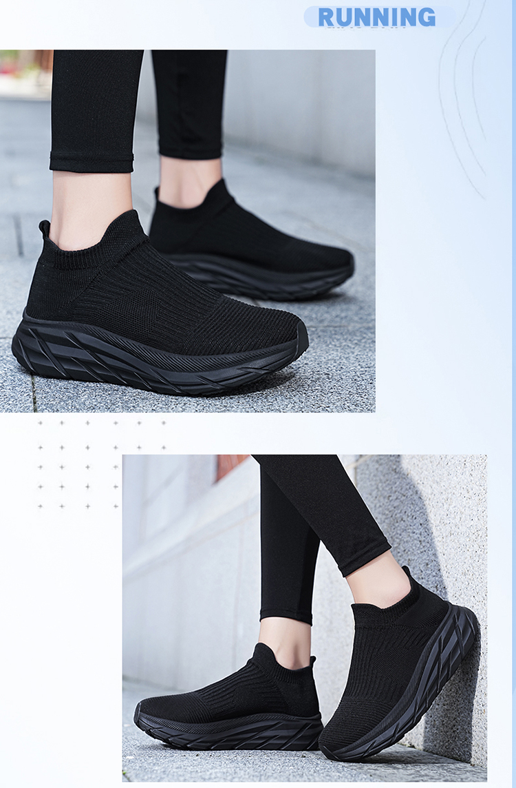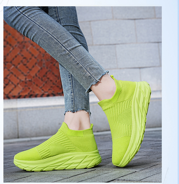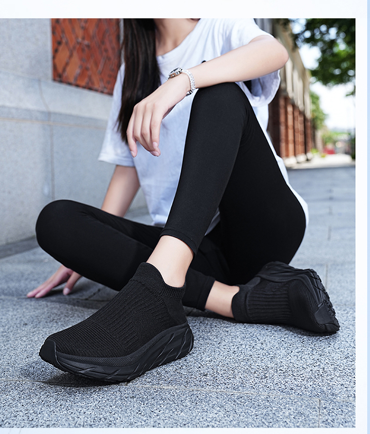 Thick-Soled Sock Shoes for Women 2025 New Running Shoes Non-Slip Shock-Absorbing Sports Shoes Large Size Popcorn Sole Breathable Travel