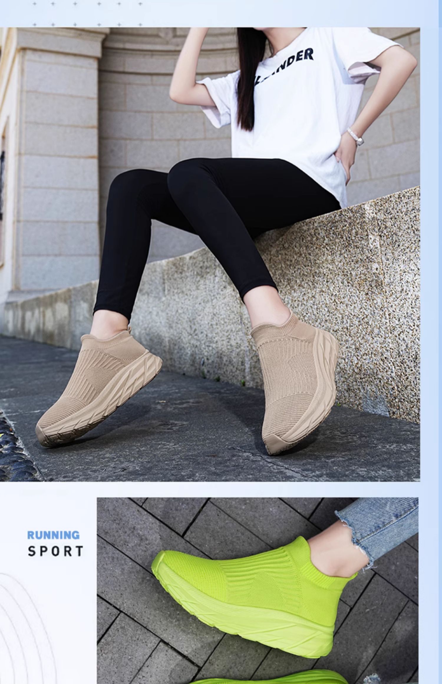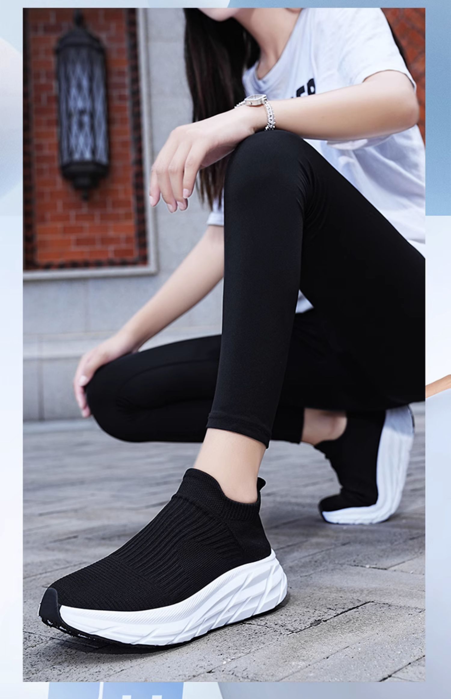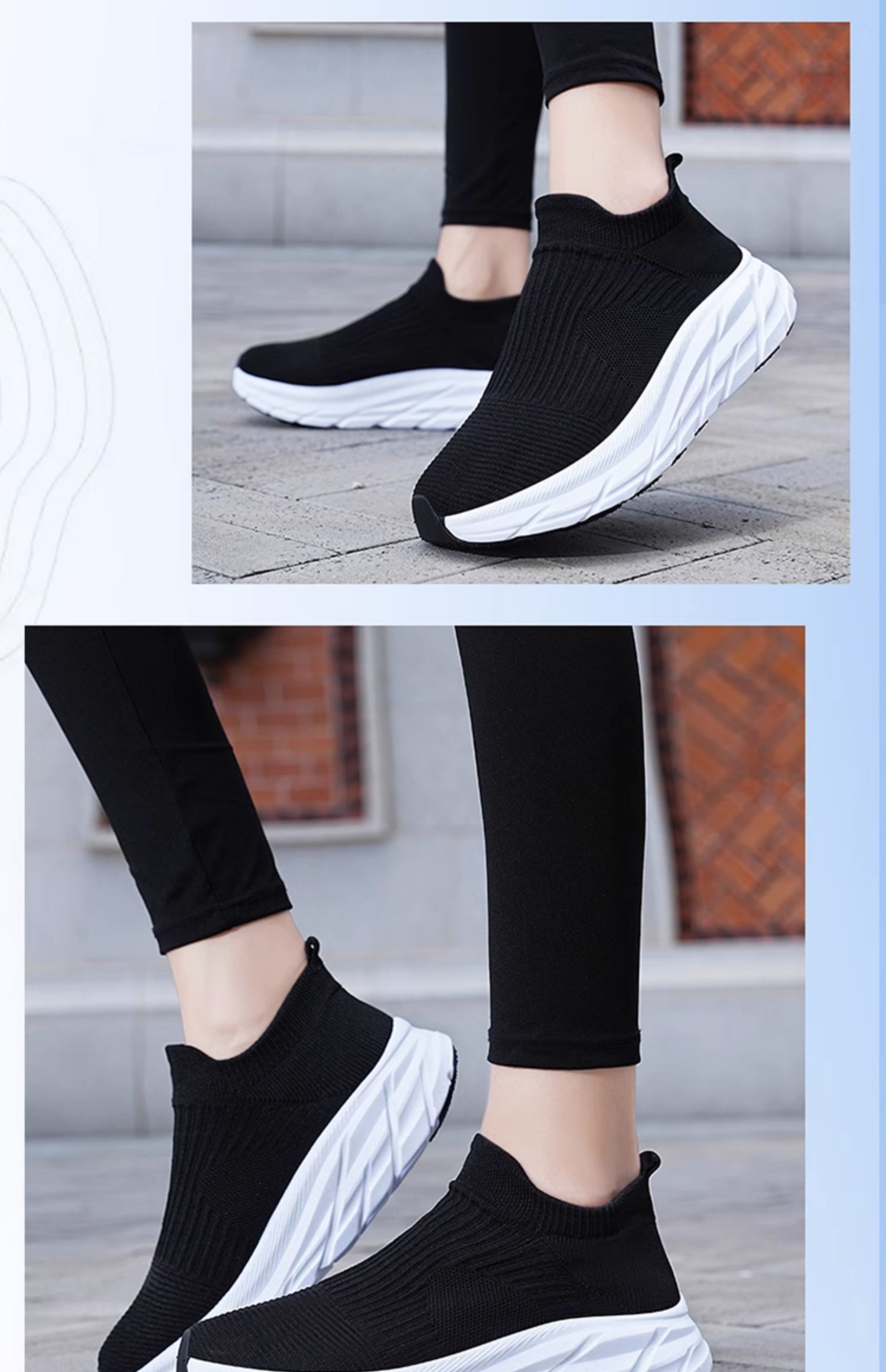 Thick-Soled Sock Shoes for Women 2025 New Running Shoes Non-Slip Shock-Absorbing Sports Shoes Large Size Popcorn Sole Breathable Travel