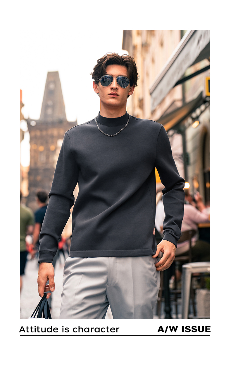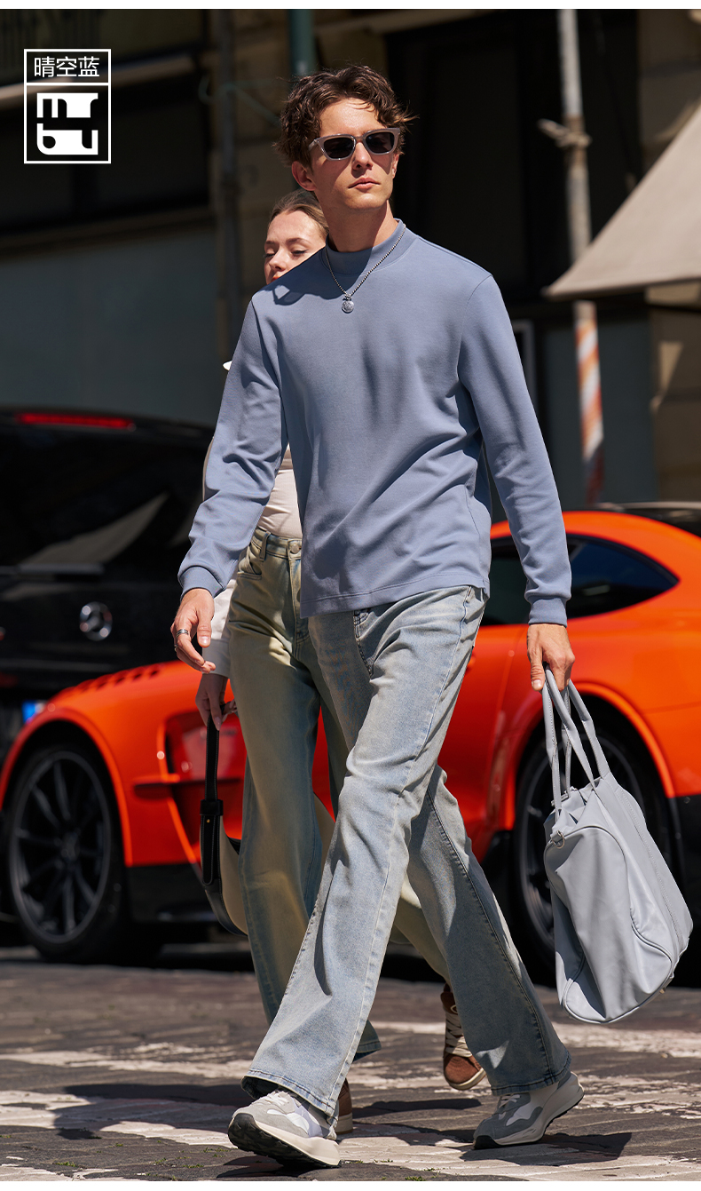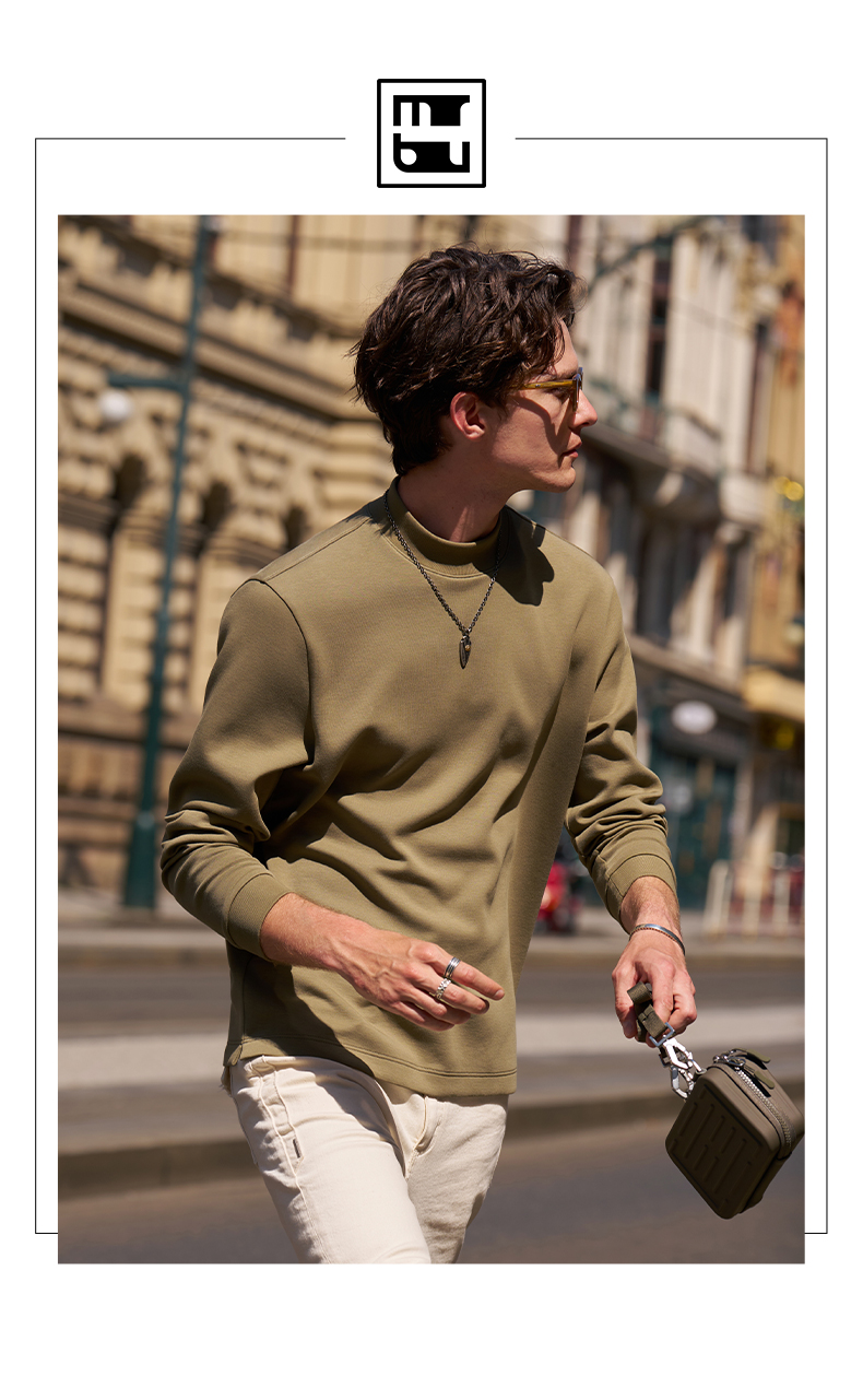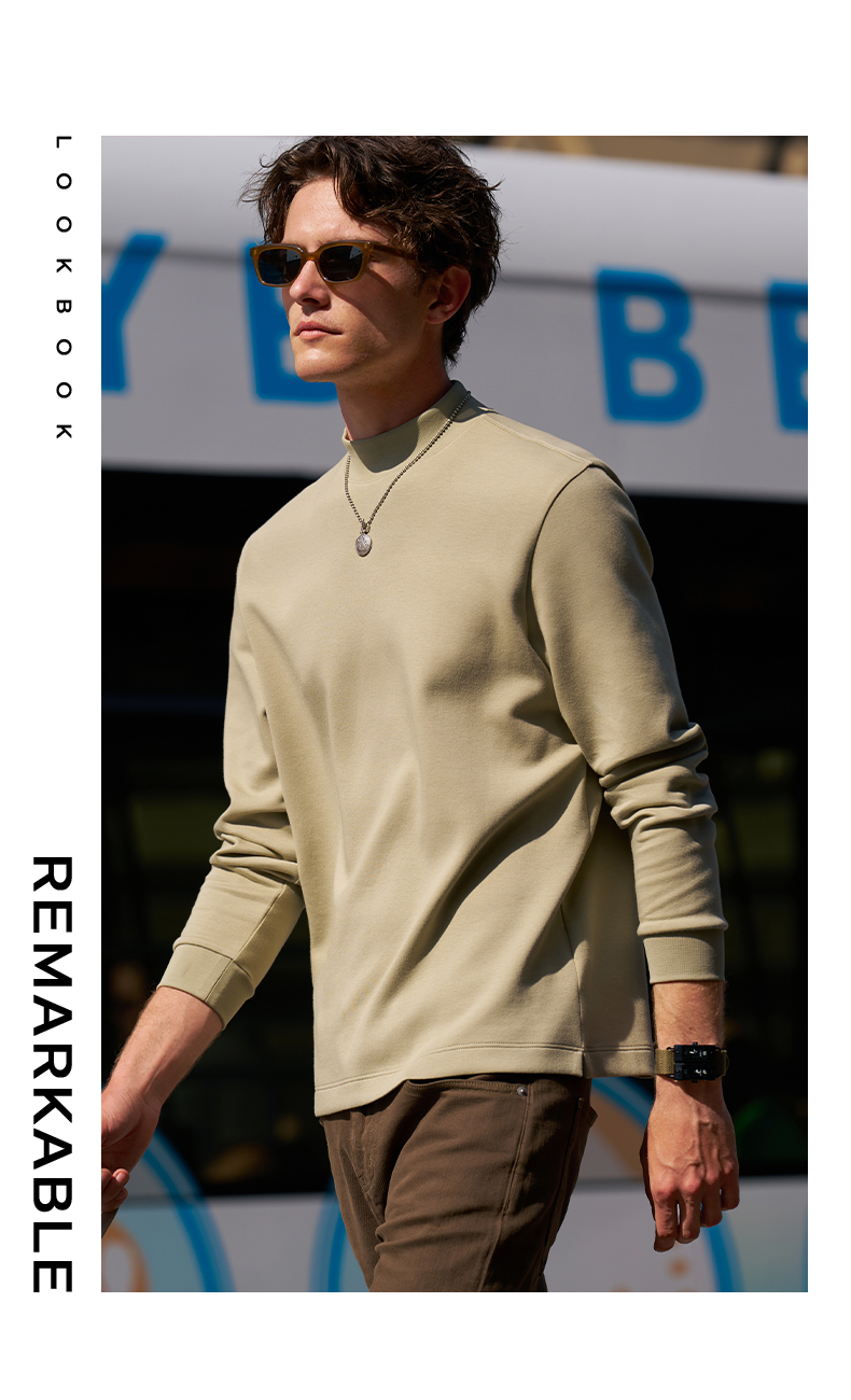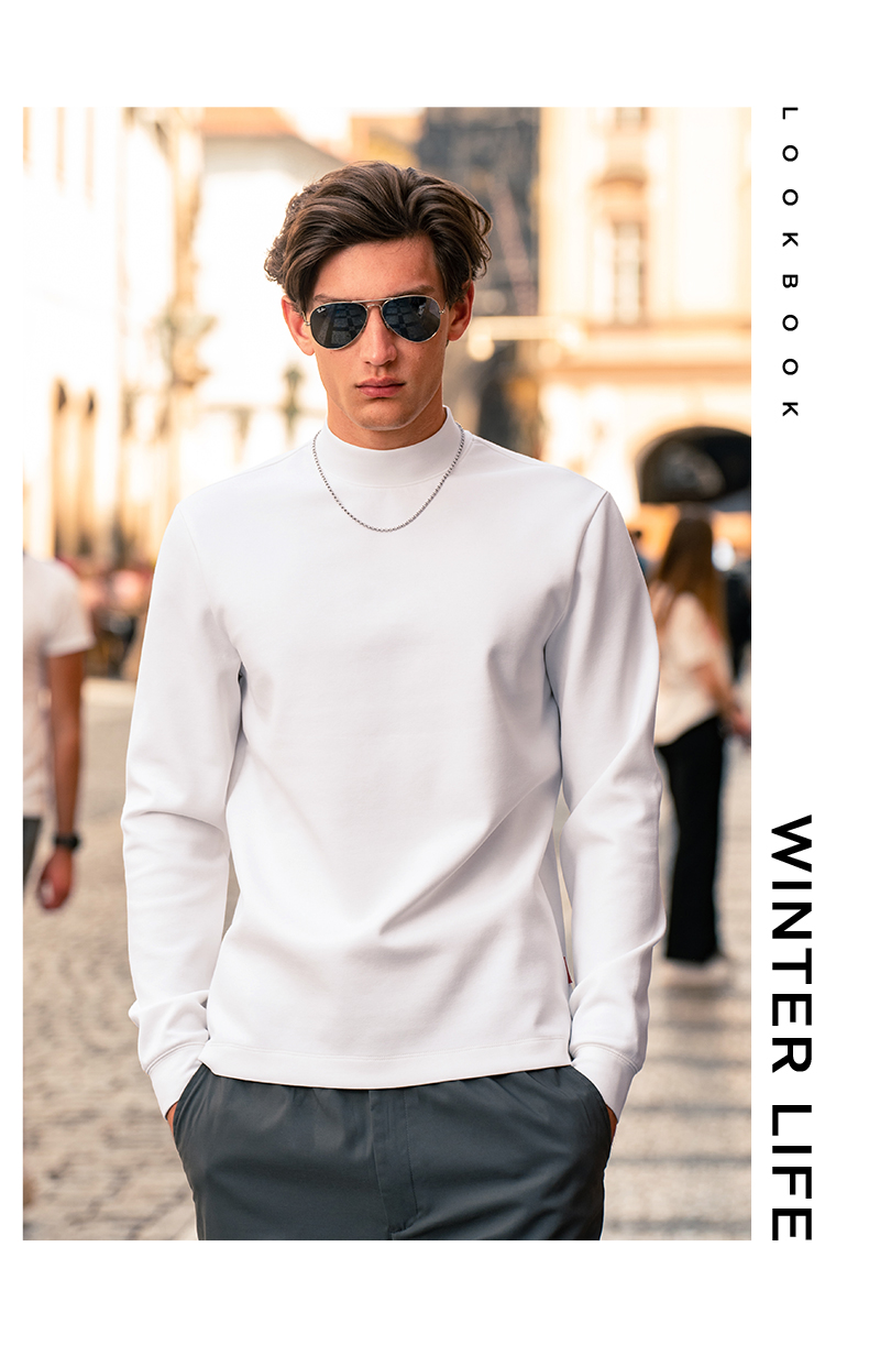 [Tong Dawei Same Model] Mr. MrBu Cloth Semi-high Collar Long sleeves T-Shirt Men Fall and winter Heattech Body-Fit Base Shirt