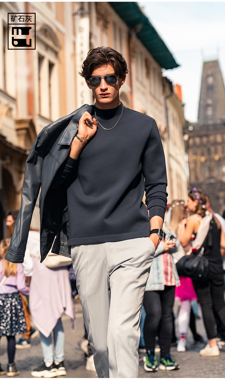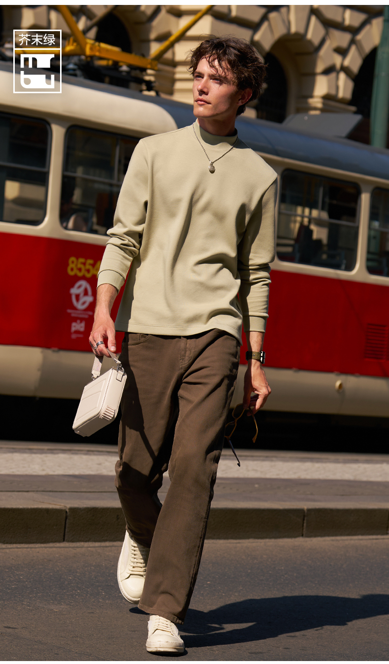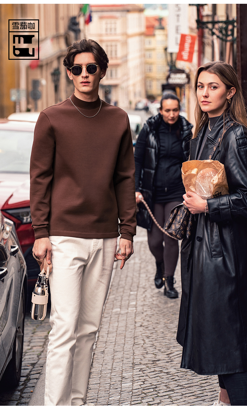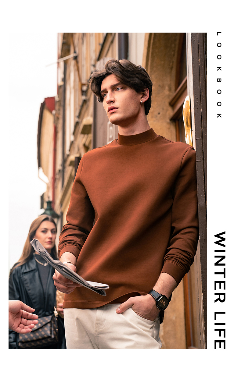 [Tong Dawei Same Model] Mr. MrBu Cloth Semi-high Collar Long sleeves T-Shirt Men Fall and winter Heattech Body-Fit Base Shirt