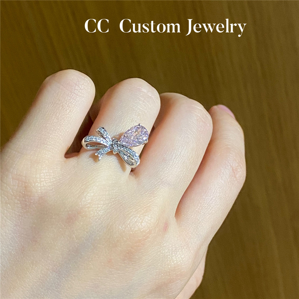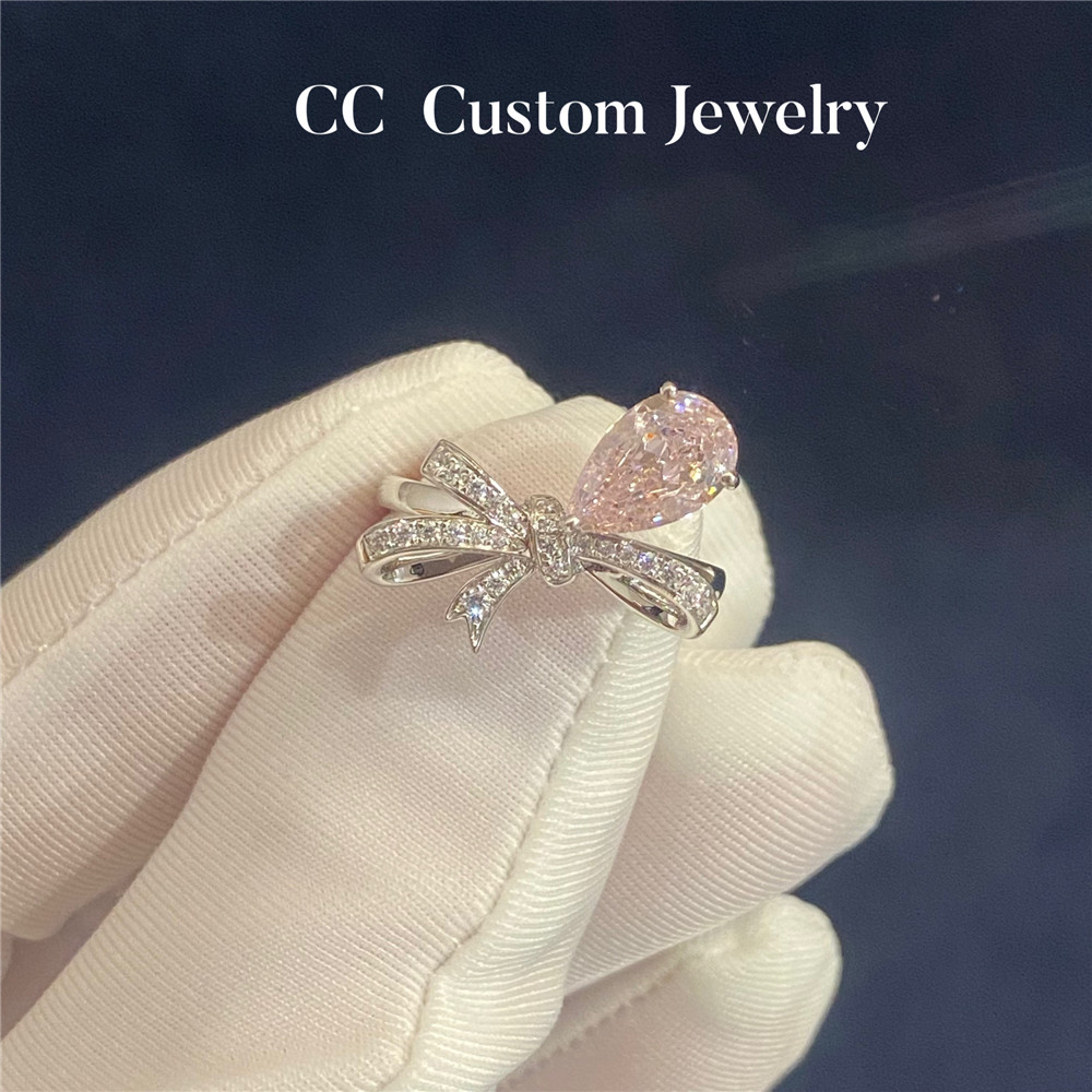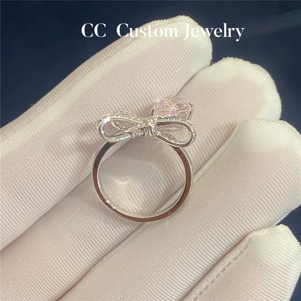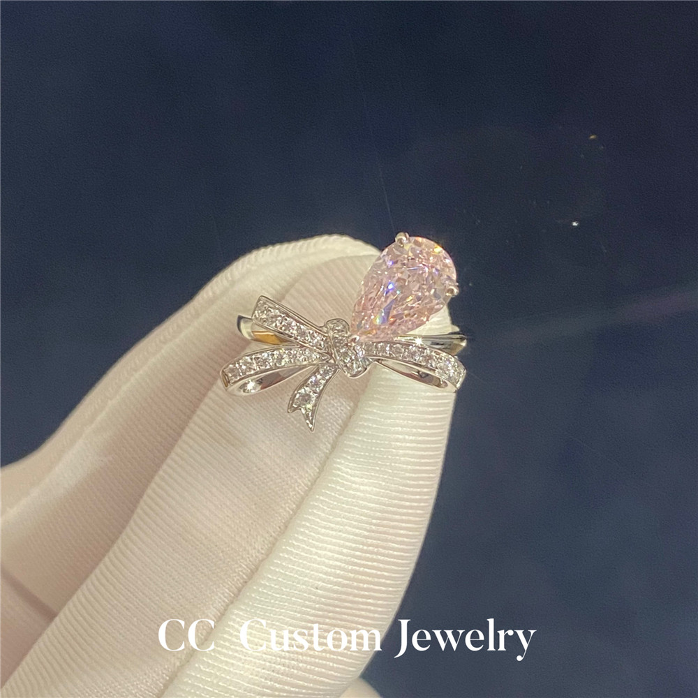 Custom Artificial Technology Diamond 1 Carat Bow Pink Diamond Ring Romantic Sweet Style K Gold Exquisite 18K Gold