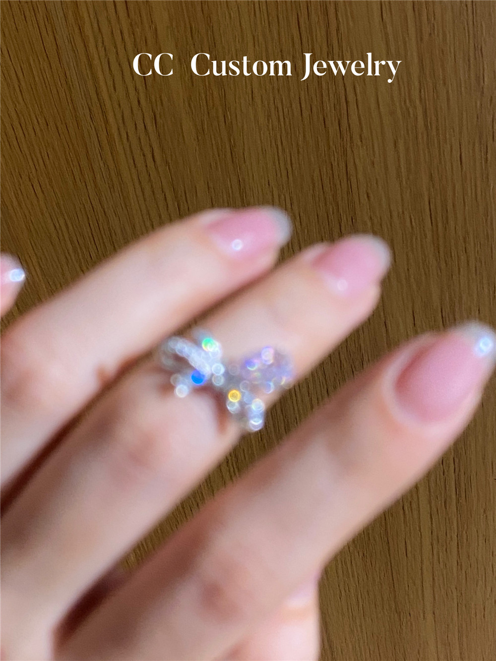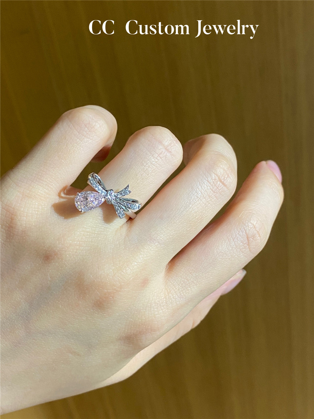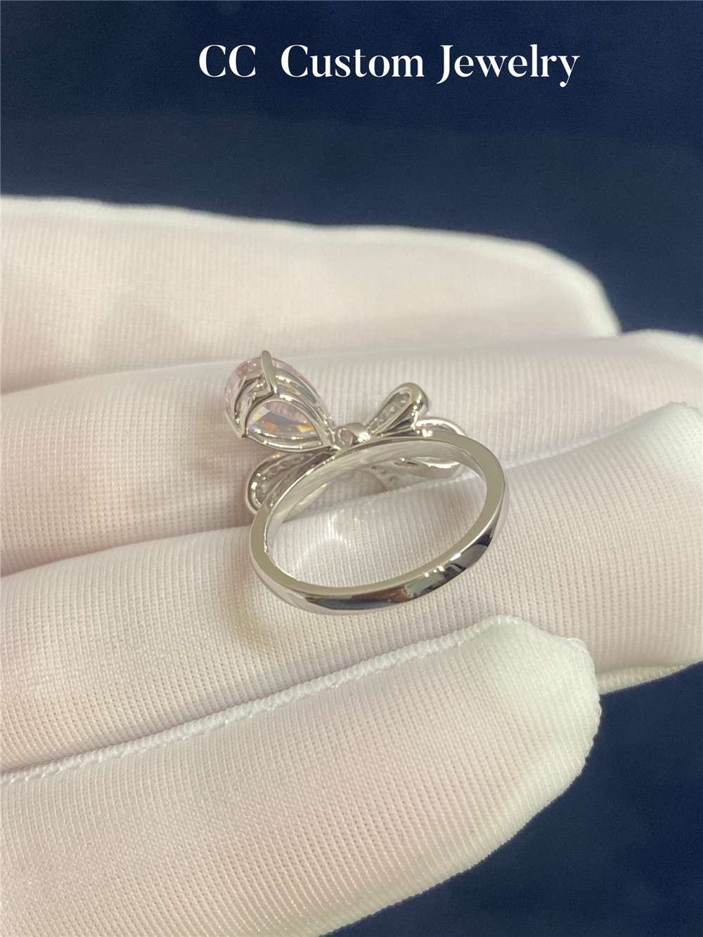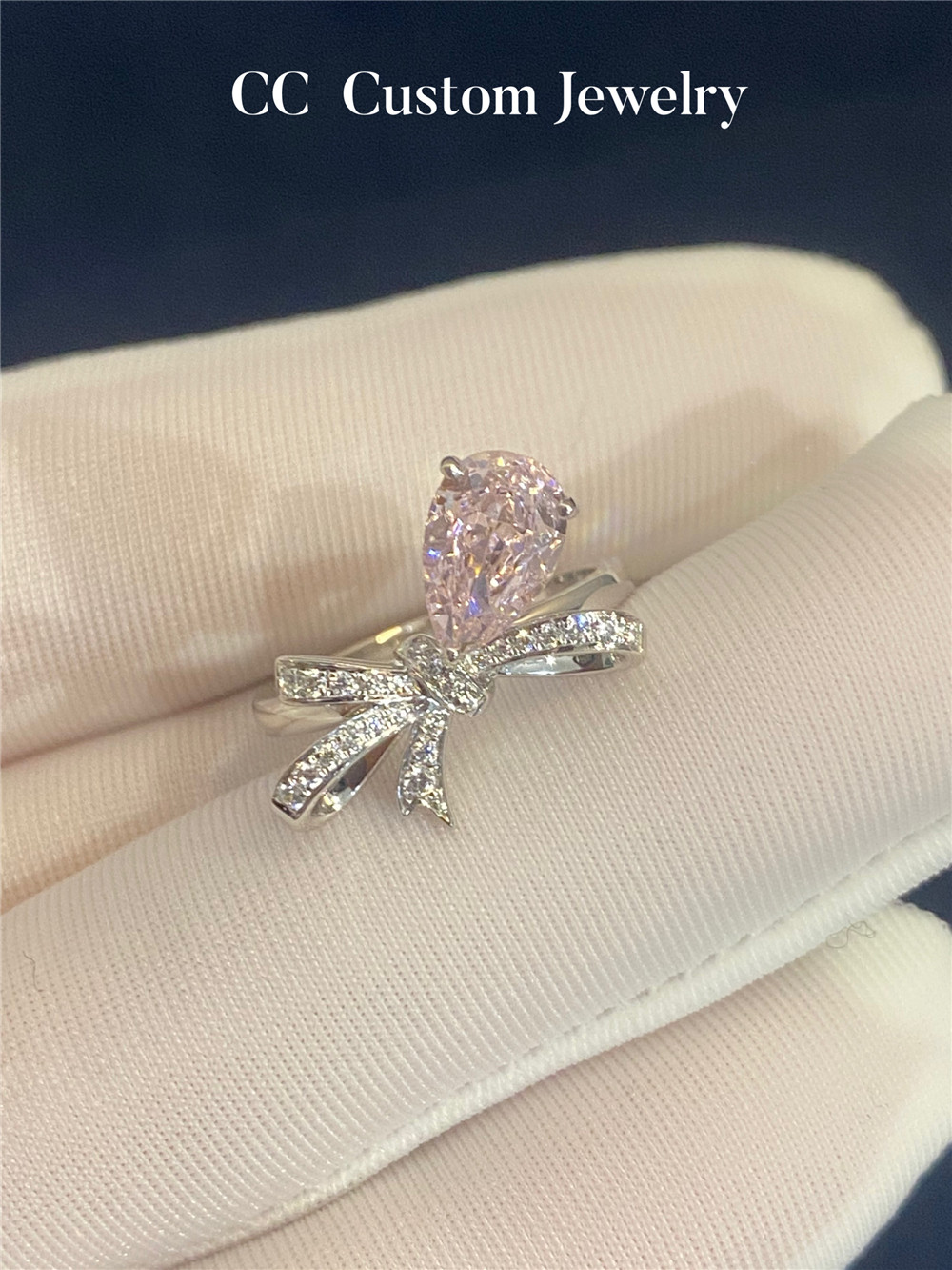 Custom Artificial Technology Diamond 1 Carat Bow Pink Diamond Ring Romantic Sweet Style K Gold Exquisite 18K Gold