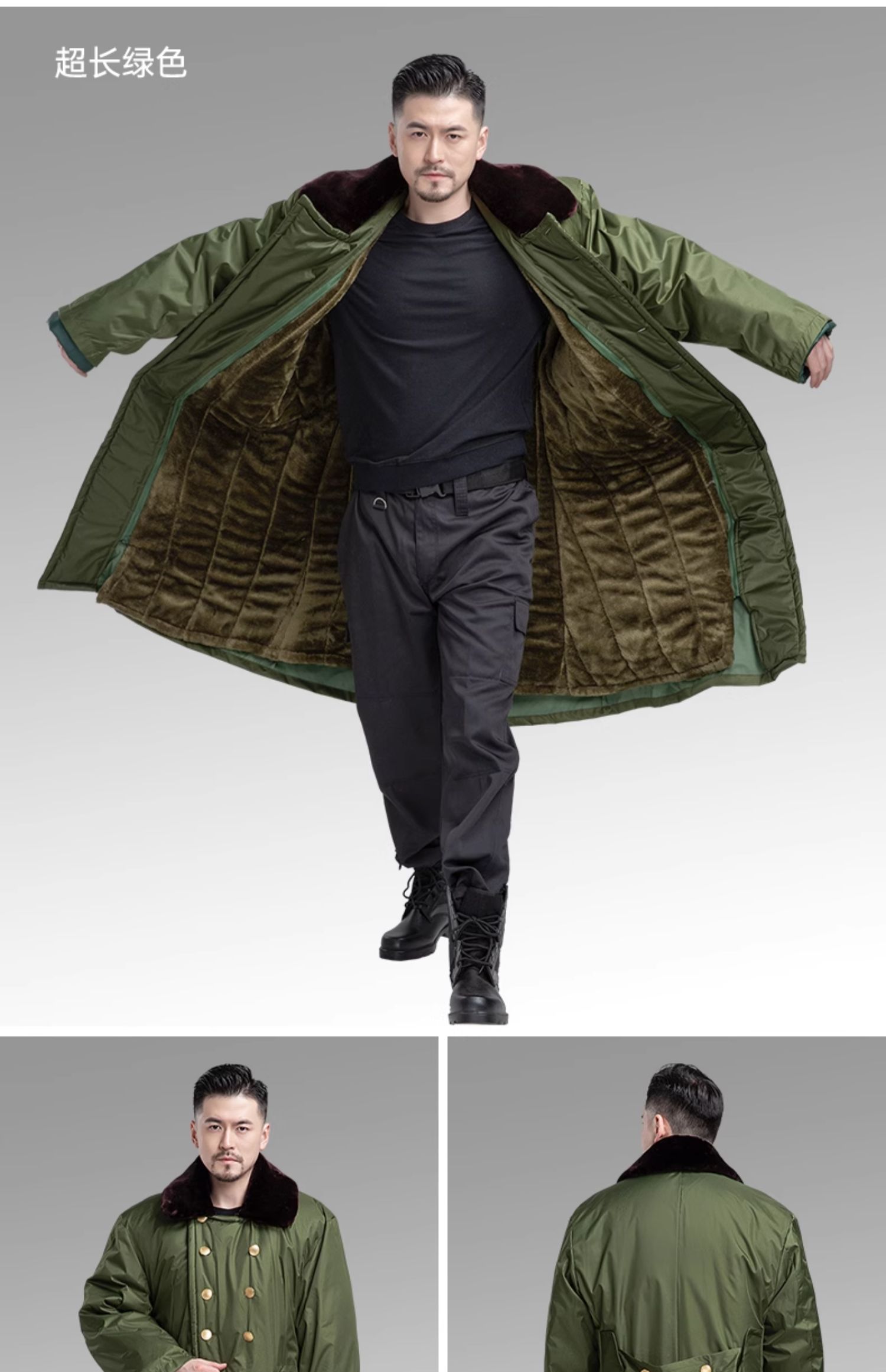 Men's Military Coat, Winter Fleece-Lined and Thickened, Cold-Proof Clothing, Genuine Warm Cotton Coat, Green Northeast-Style Large Cotton Jacket