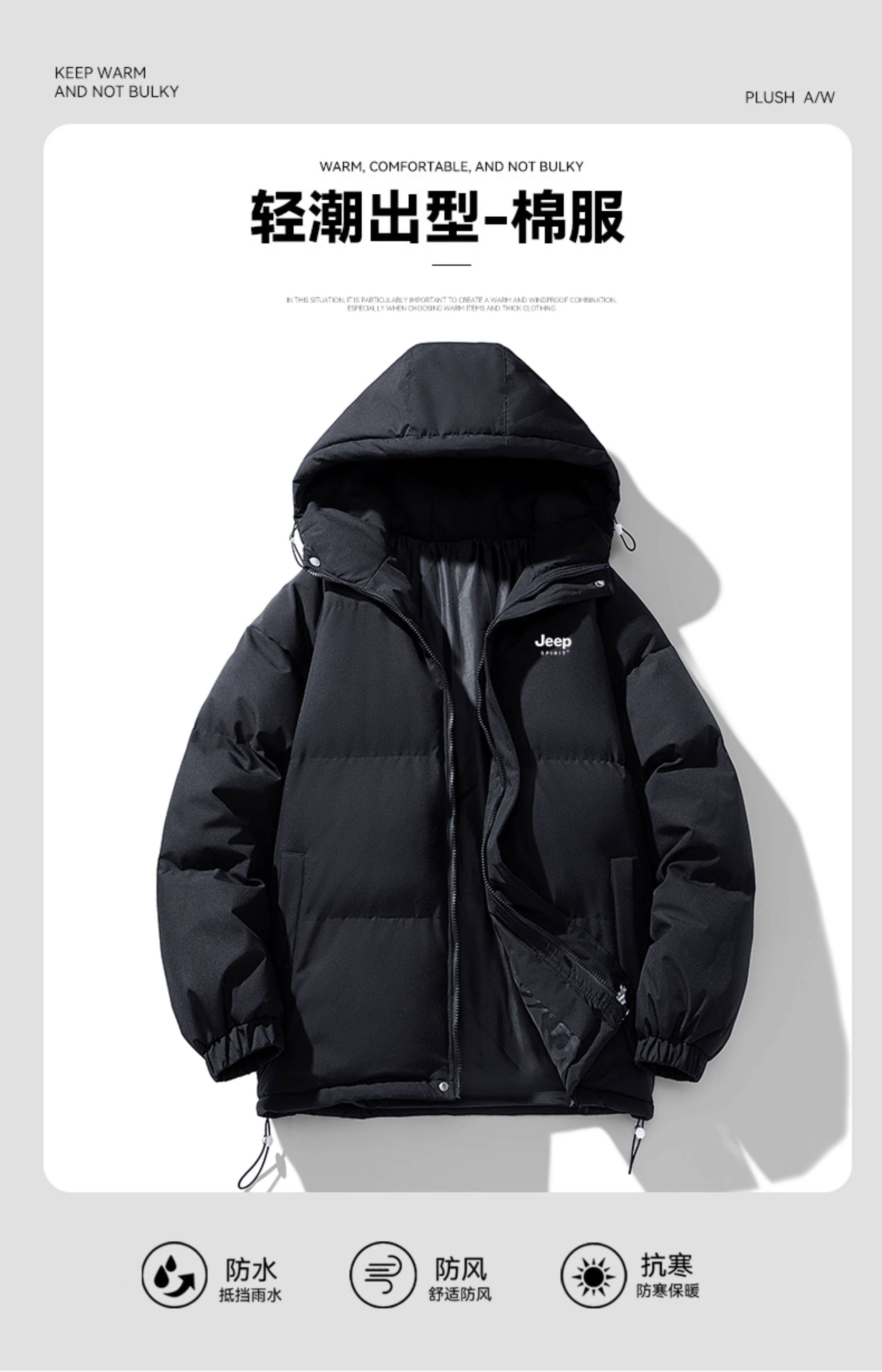 Jeep down Cotton Jacket Men's Winter 2025 New Hooded Thickened Cotton Coat Men's Cotton Clothing Men's Jacket